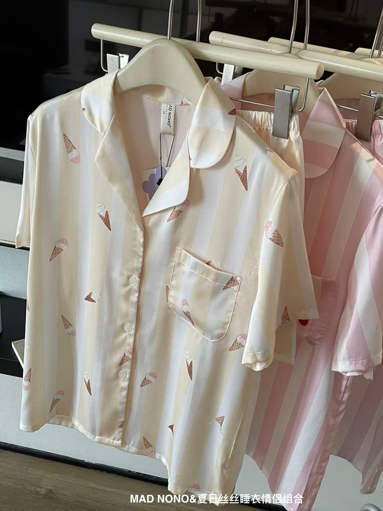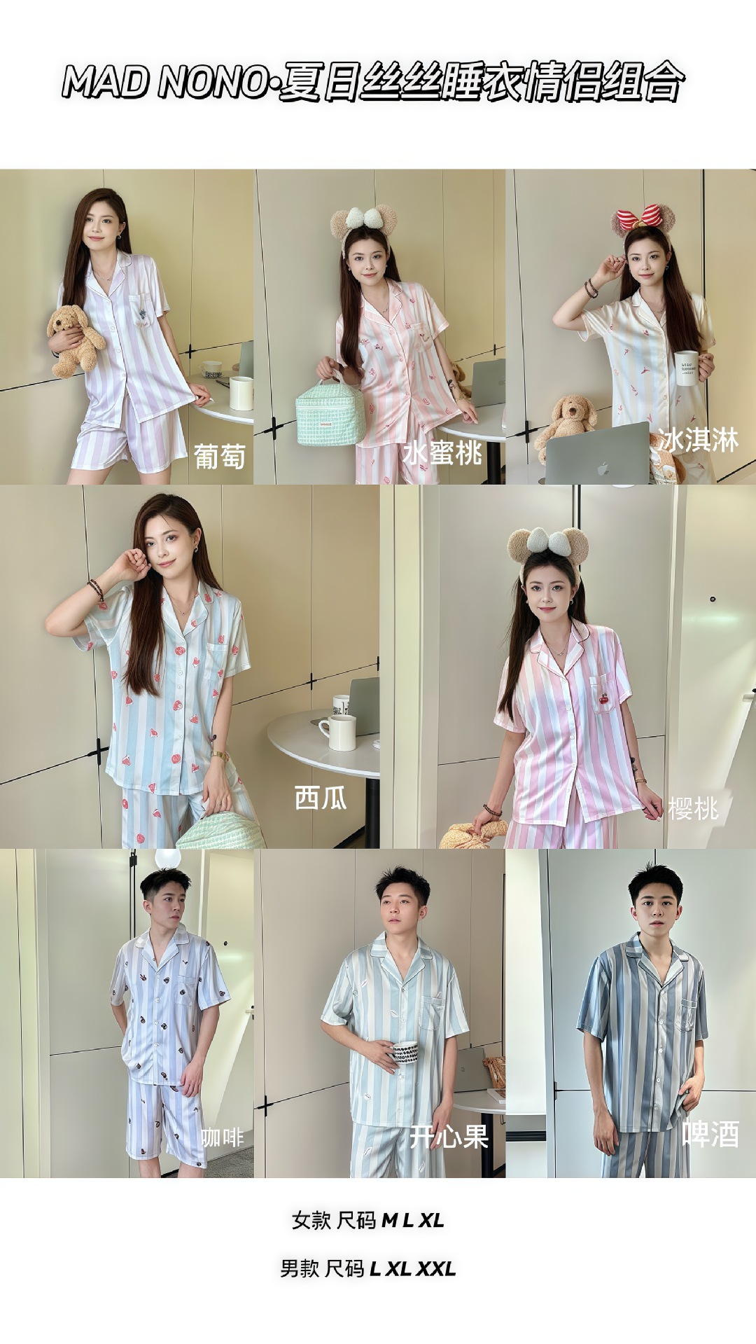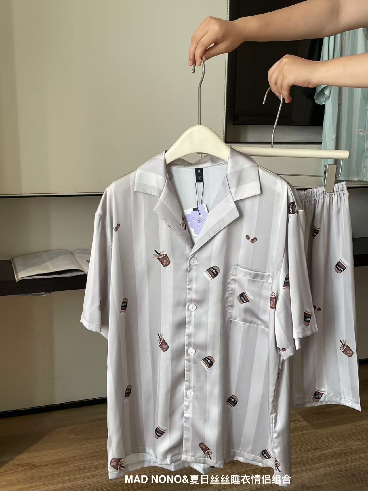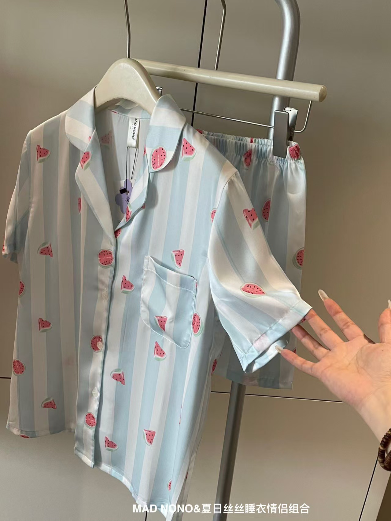 여성용 잠옷, 여름용 아이스 실크 커플 잠옷, 여성용 여름 반바지, 반팔, 얇은 스타일, 홈웨어, 편안한 가정복 세트
