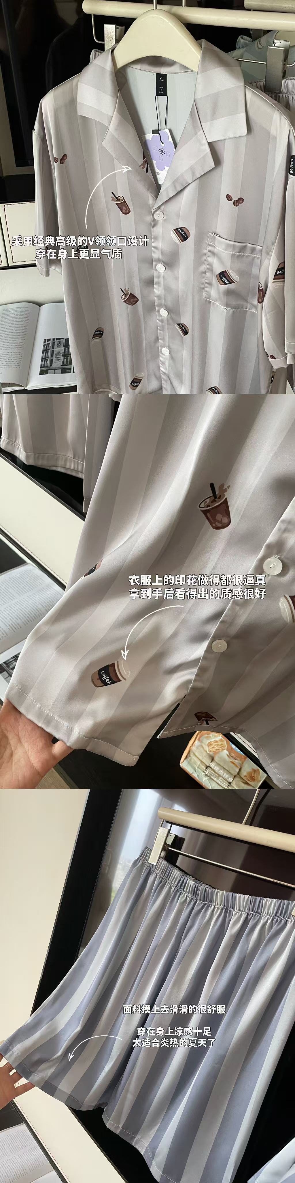 여성용 잠옷, 여름용 아이스 실크 커플 잠옷, 여성용 여름 반바지, 반팔, 얇은 스타일, 홈웨어, 편안한 가정복 세트스토어 가기