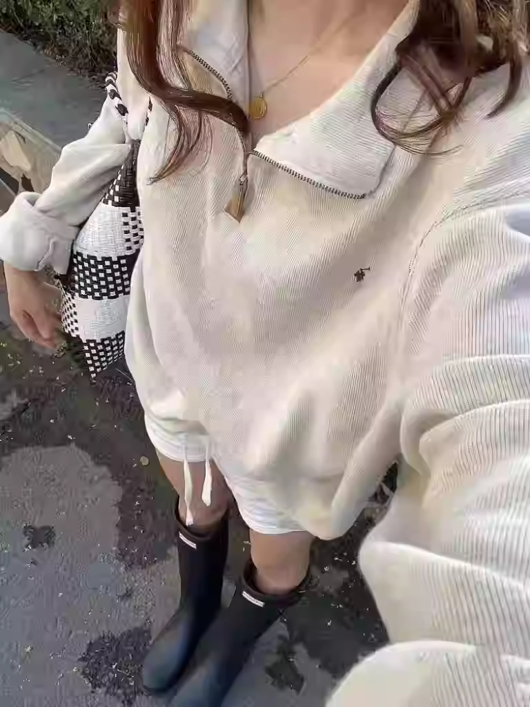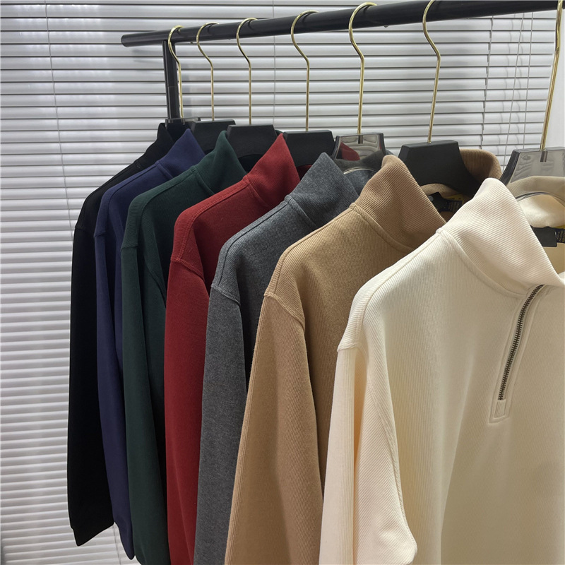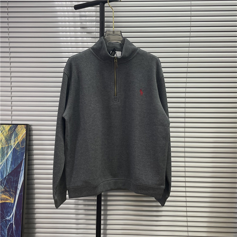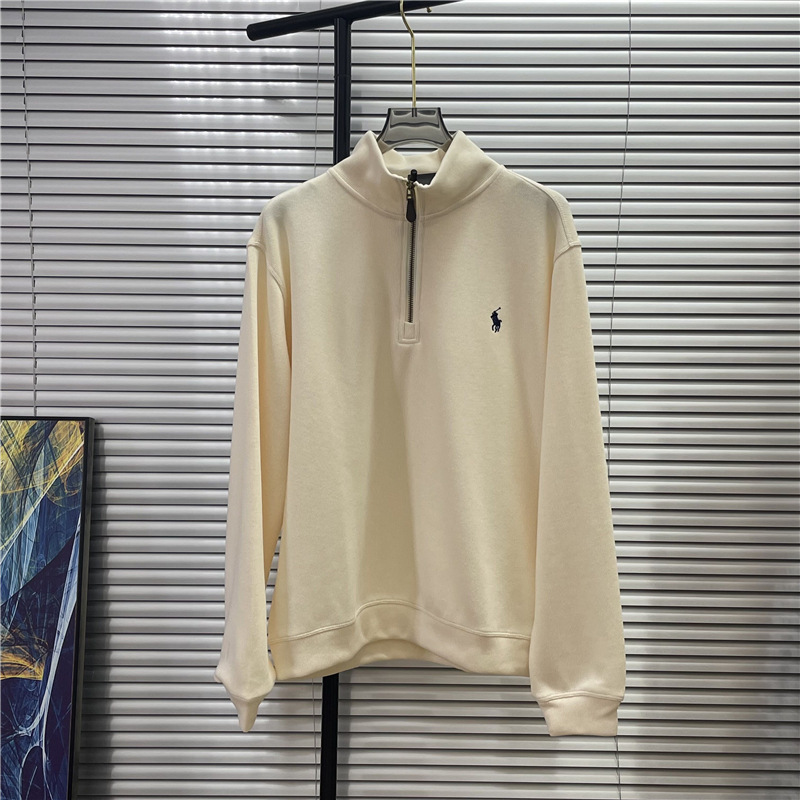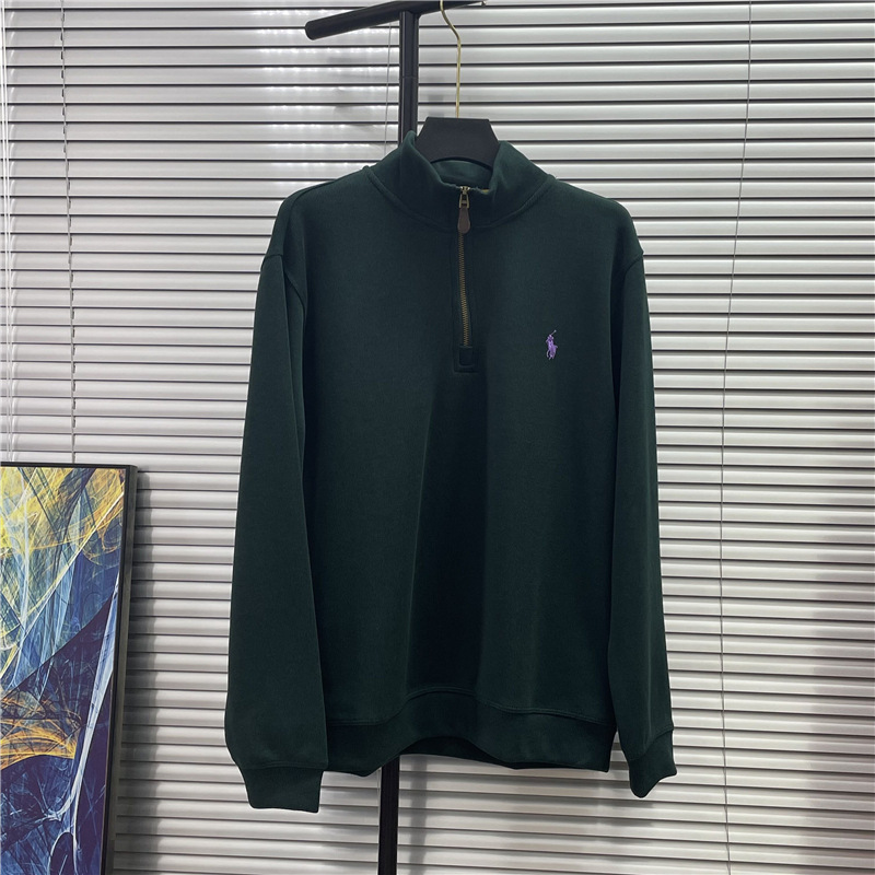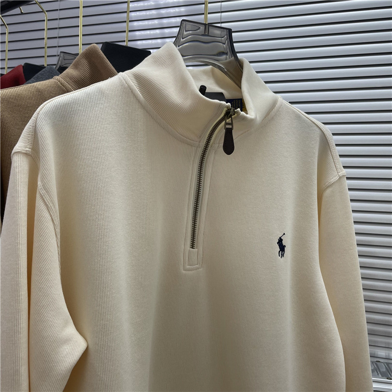 스윕 사이즈 RL 크로스 보더 랄프 포니 수 놓은 하프 Zip 스웨터 남성 및 여성 비드 퓨어 코튼 긴소매 탑