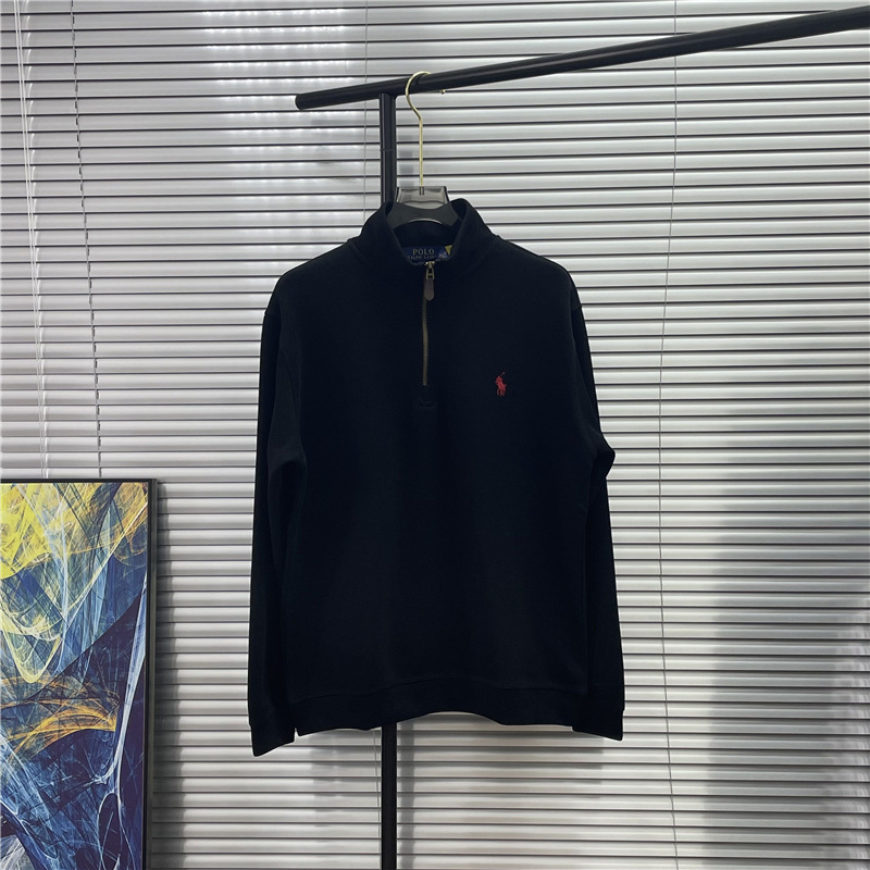 스윕 사이즈 RL 크로스 보더 랄프 포니 수 놓은 하프 Zip 스웨터 남성 및 여성 비드 퓨어 코튼 긴소매 탑스토어 가기