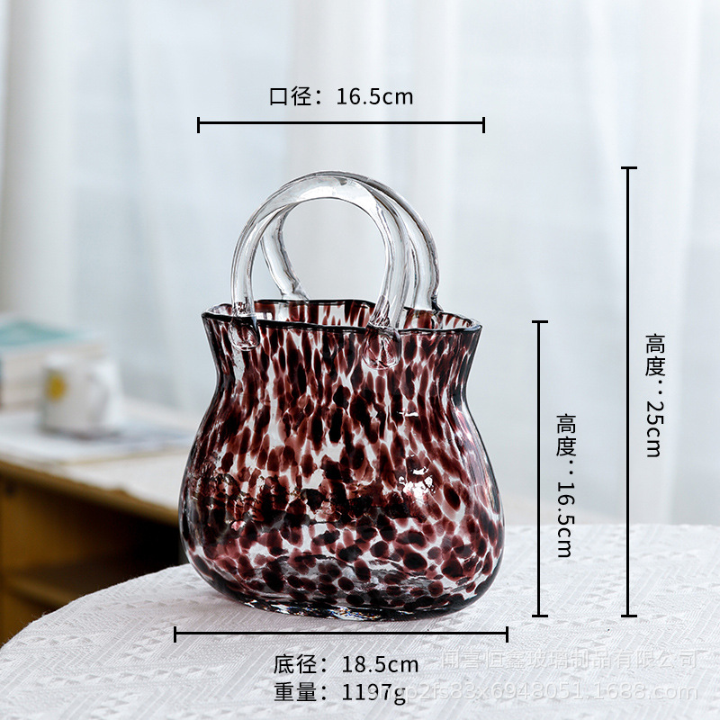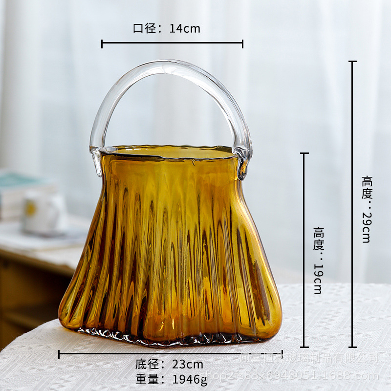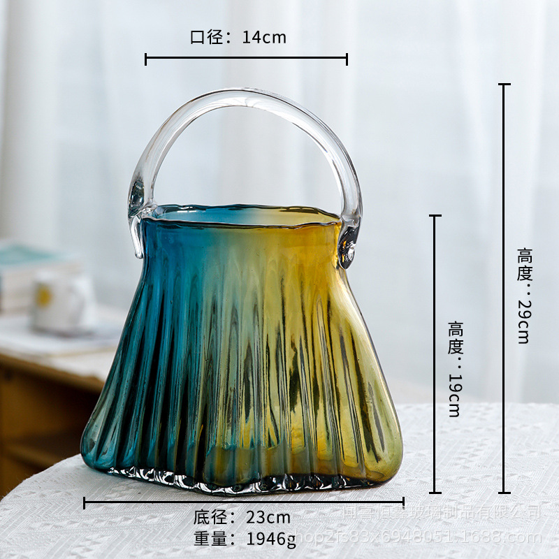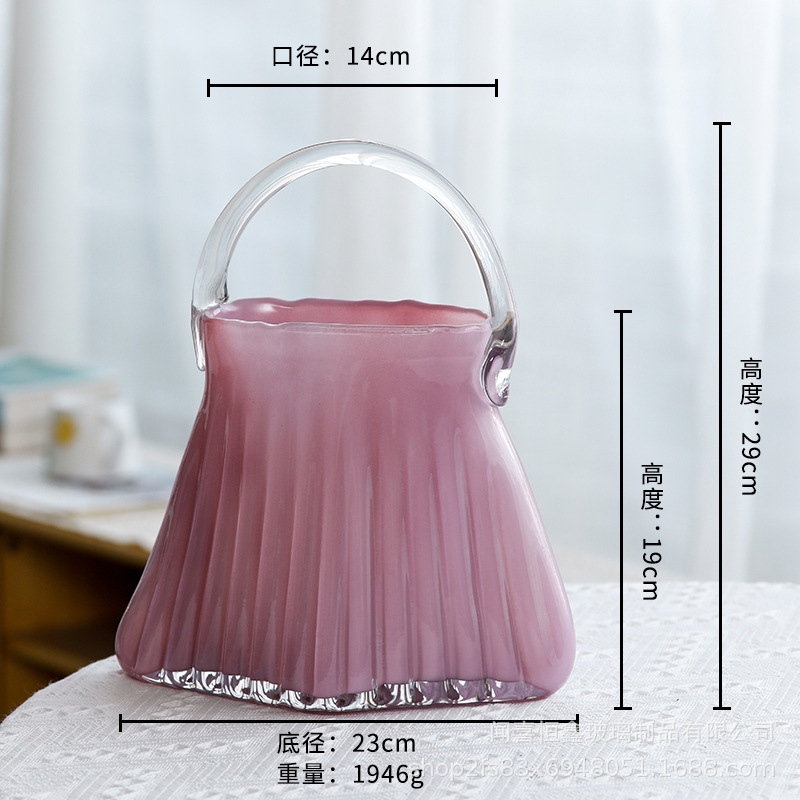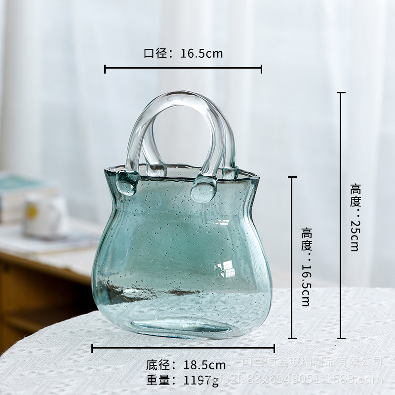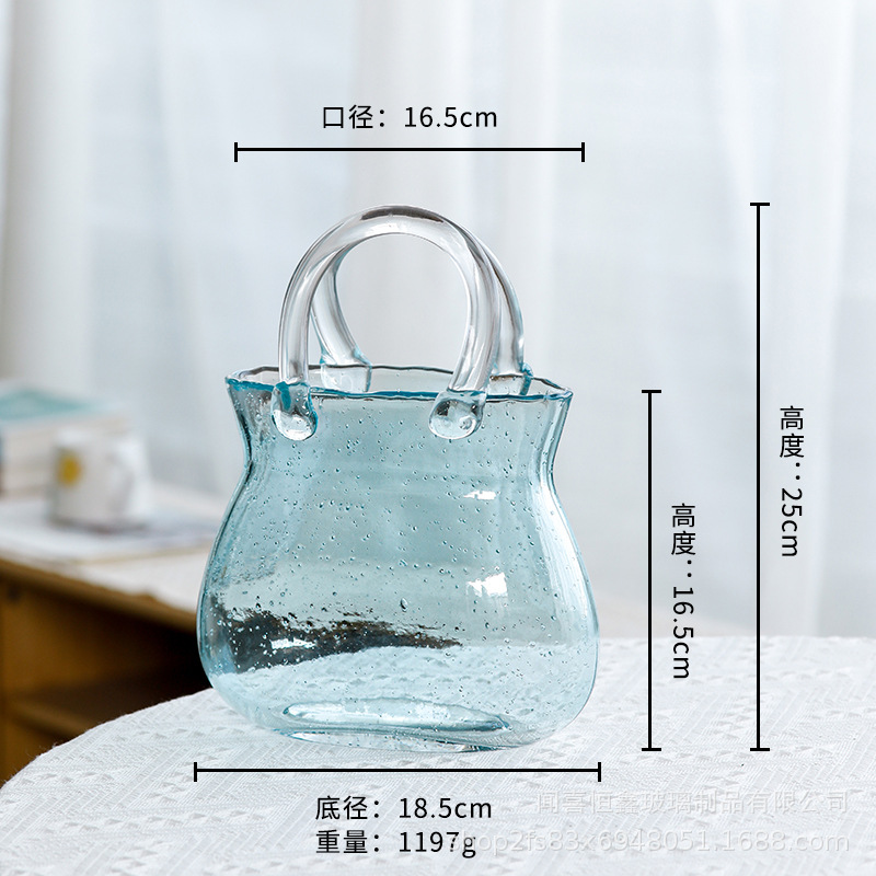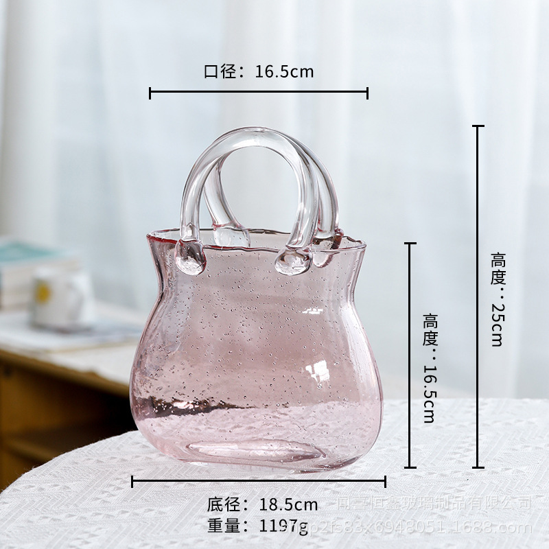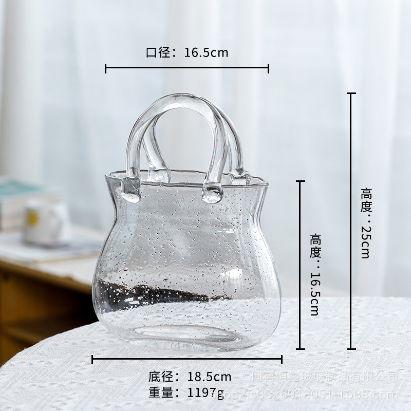 고급스러운 휴대용 유리 가방 꽃병, 투명 유리 꽃병, 거실 꽃꽂이 장식품, 꽃병