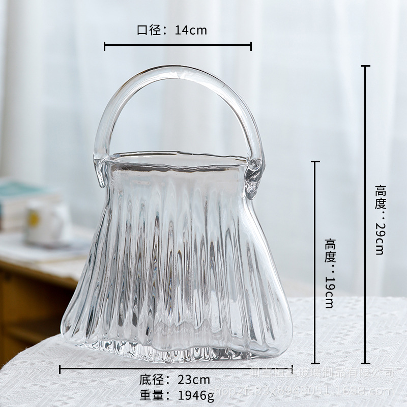 고급스러운 휴대용 유리 가방 꽃병, 투명 유리 꽃병, 거실 꽃꽂이 장식품, 꽃병스토어 가기