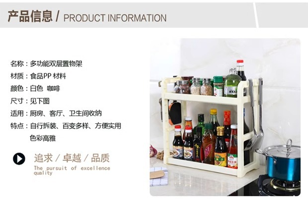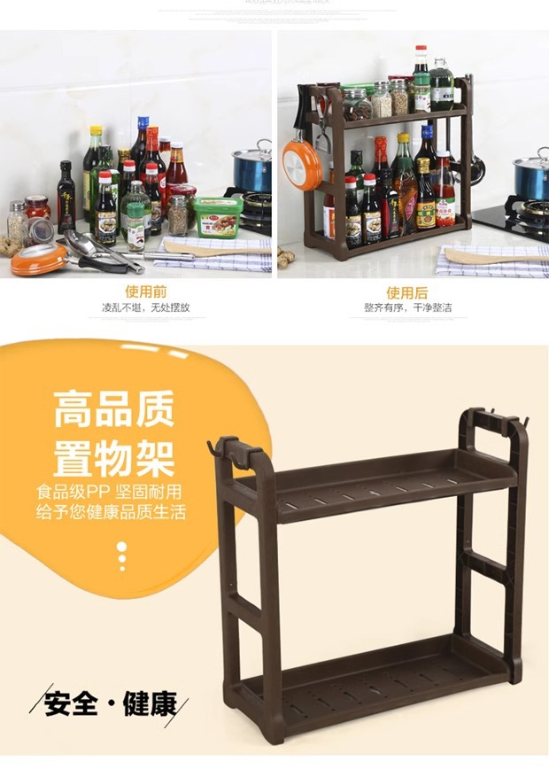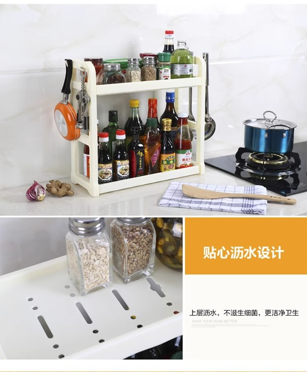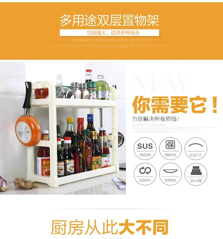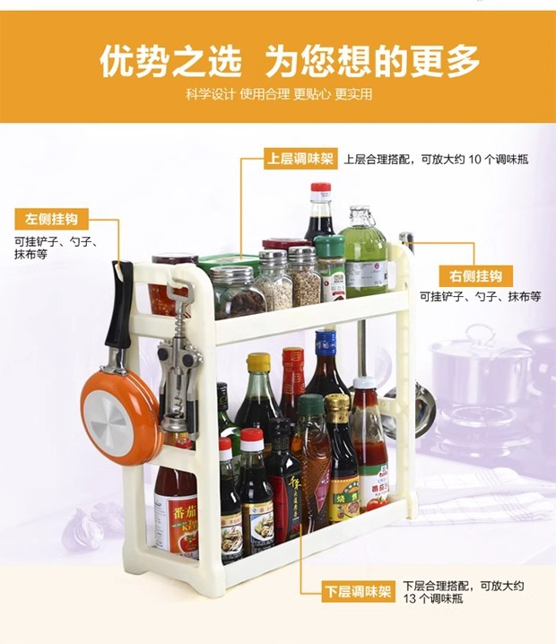 더블 레이어 주방 보관 랙 펀치 프리 조미료 랙 오일, 소금, 소스 및 식초 저장 랙 바닥 스탠딩 젓가락 나이프 보관