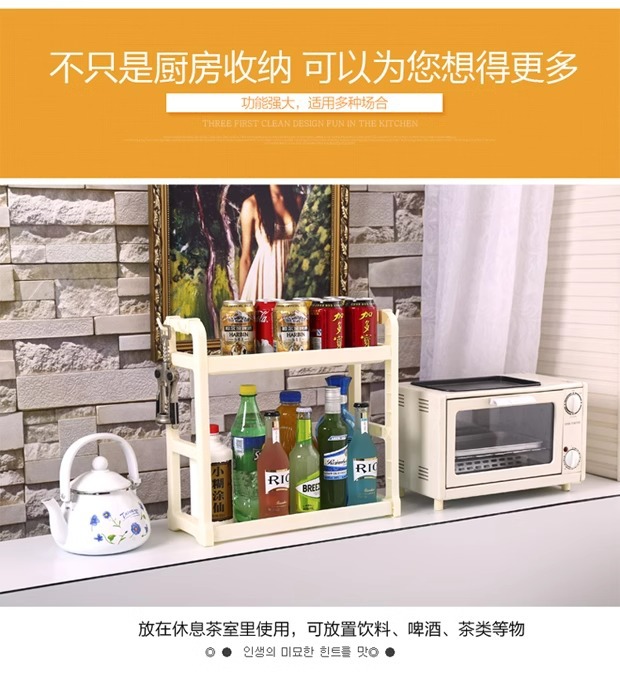 더블 레이어 주방 보관 랙 펀치 프리 조미료 랙 오일, 소금, 소스 및 식초 저장 랙 바닥 스탠딩 젓가락 나이프 보관스토어 가기