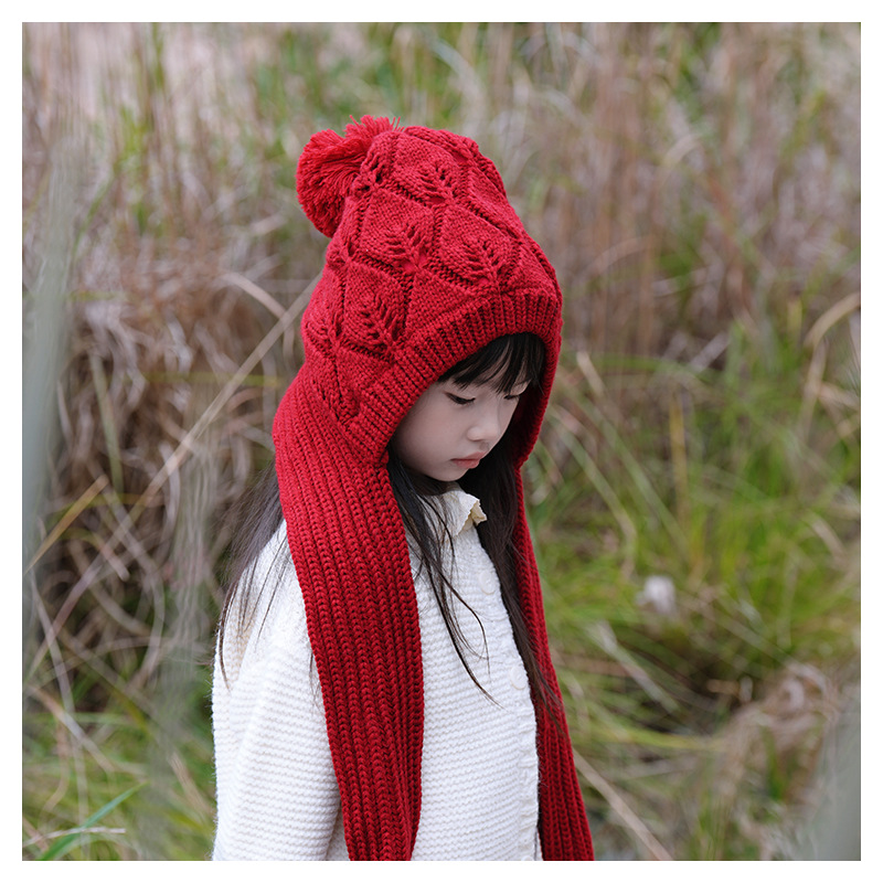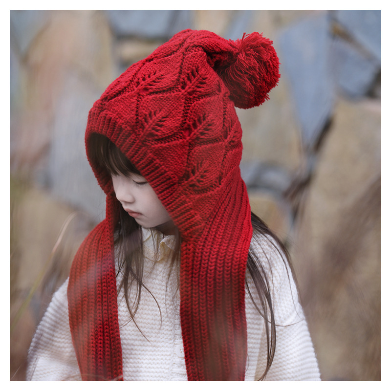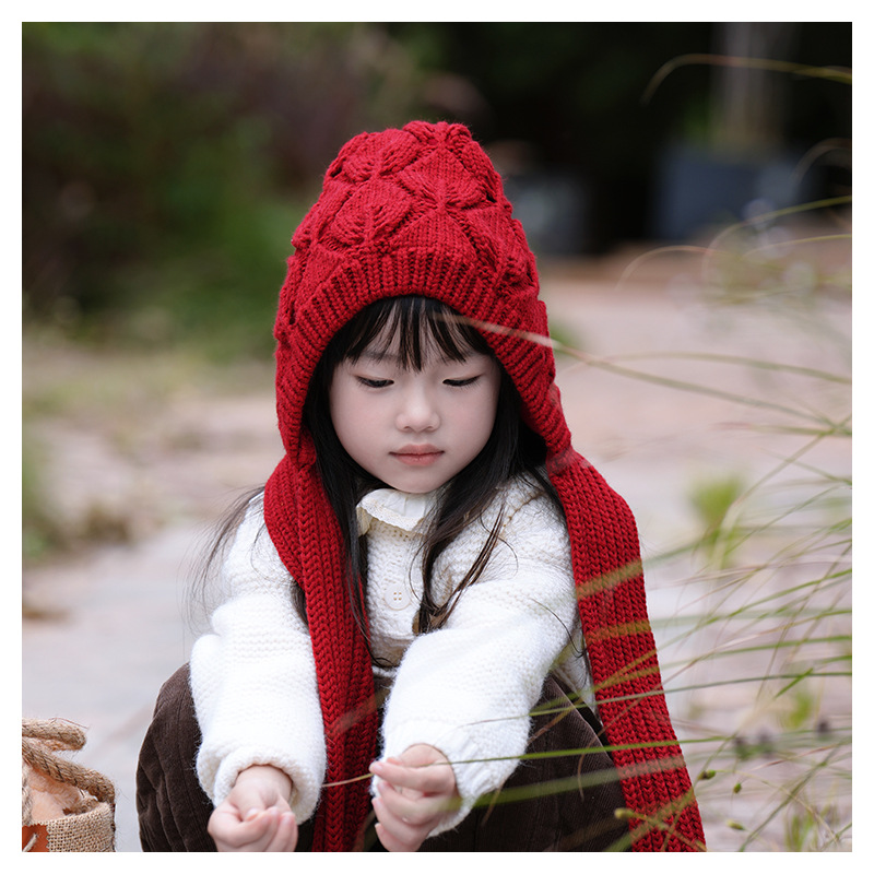 소녀 아기 Guofeng 새해 빨간 어린이 모자 겨울 따뜻한 아기의 풀오버 모자 귀여운 스카프 통합 귀 보호 모자