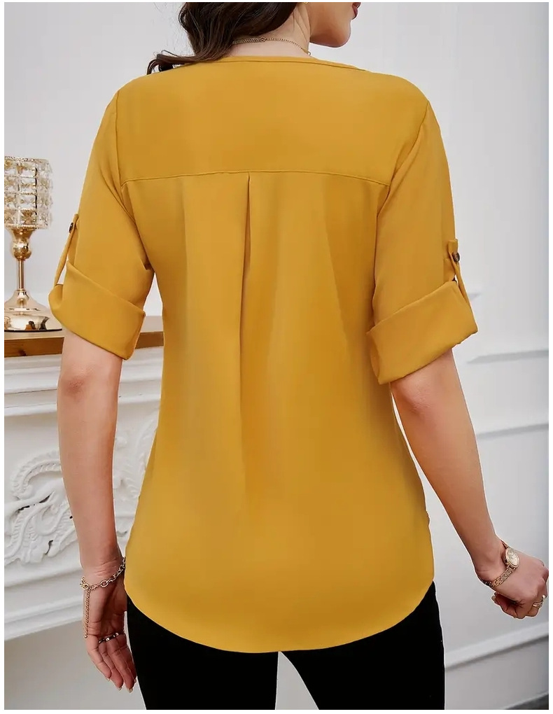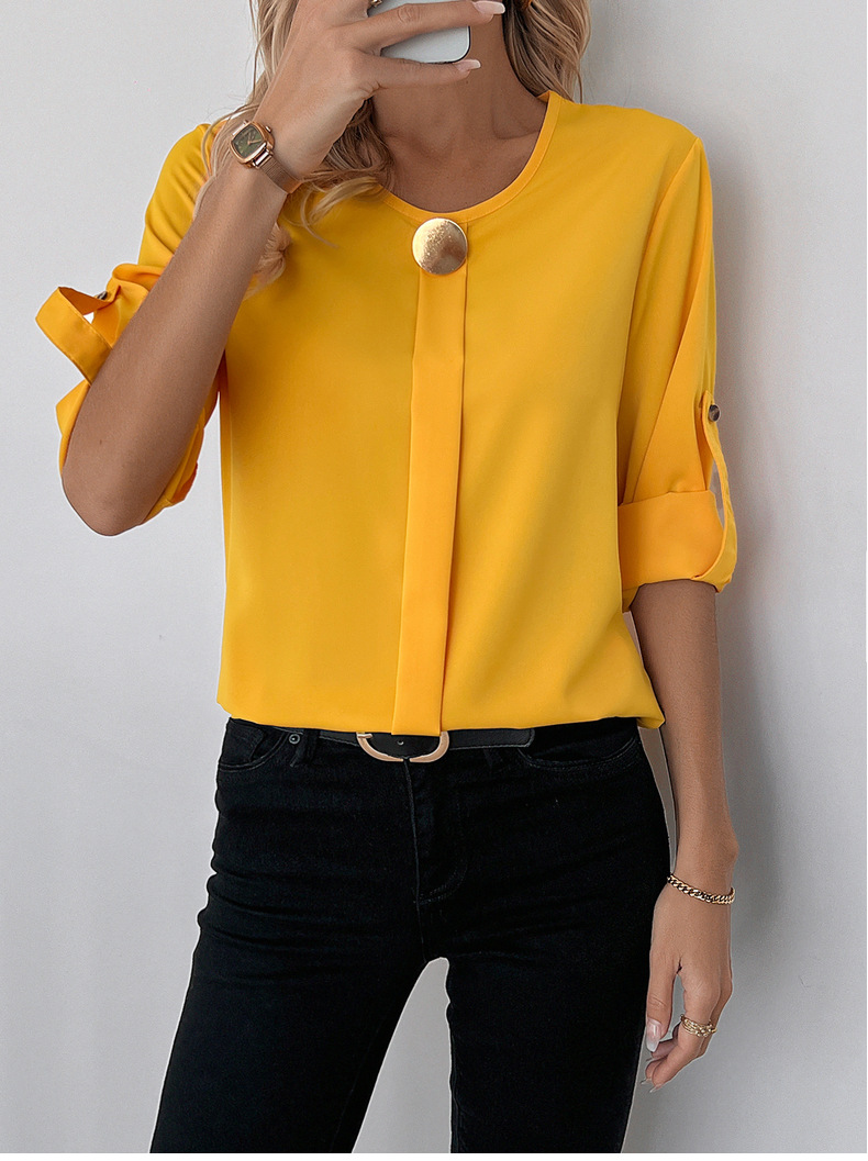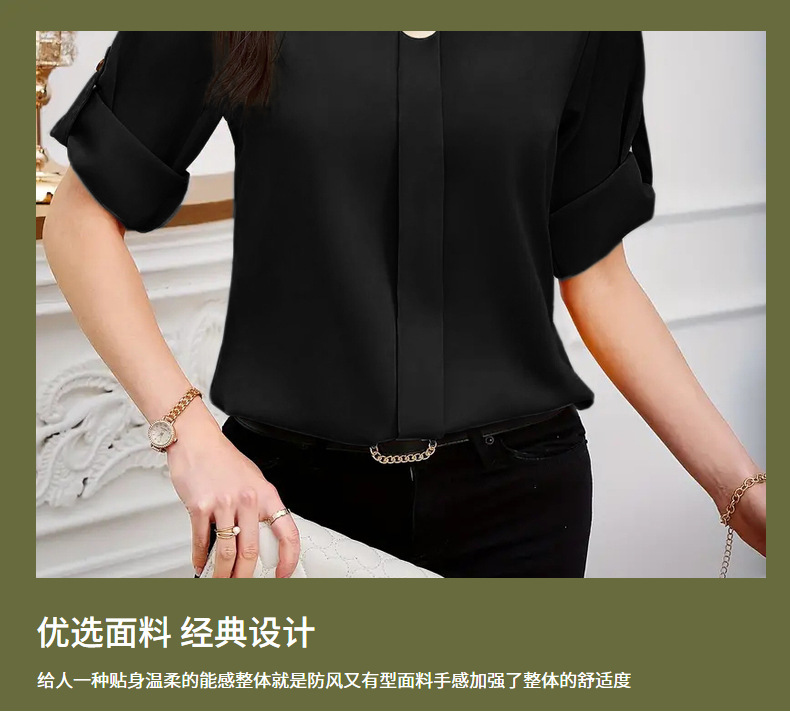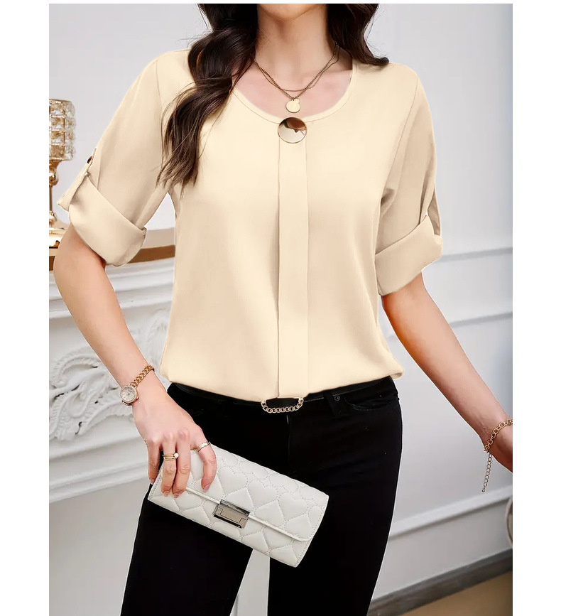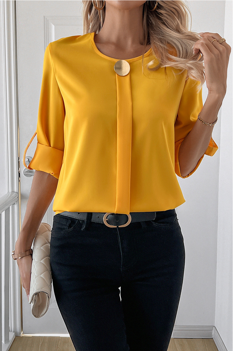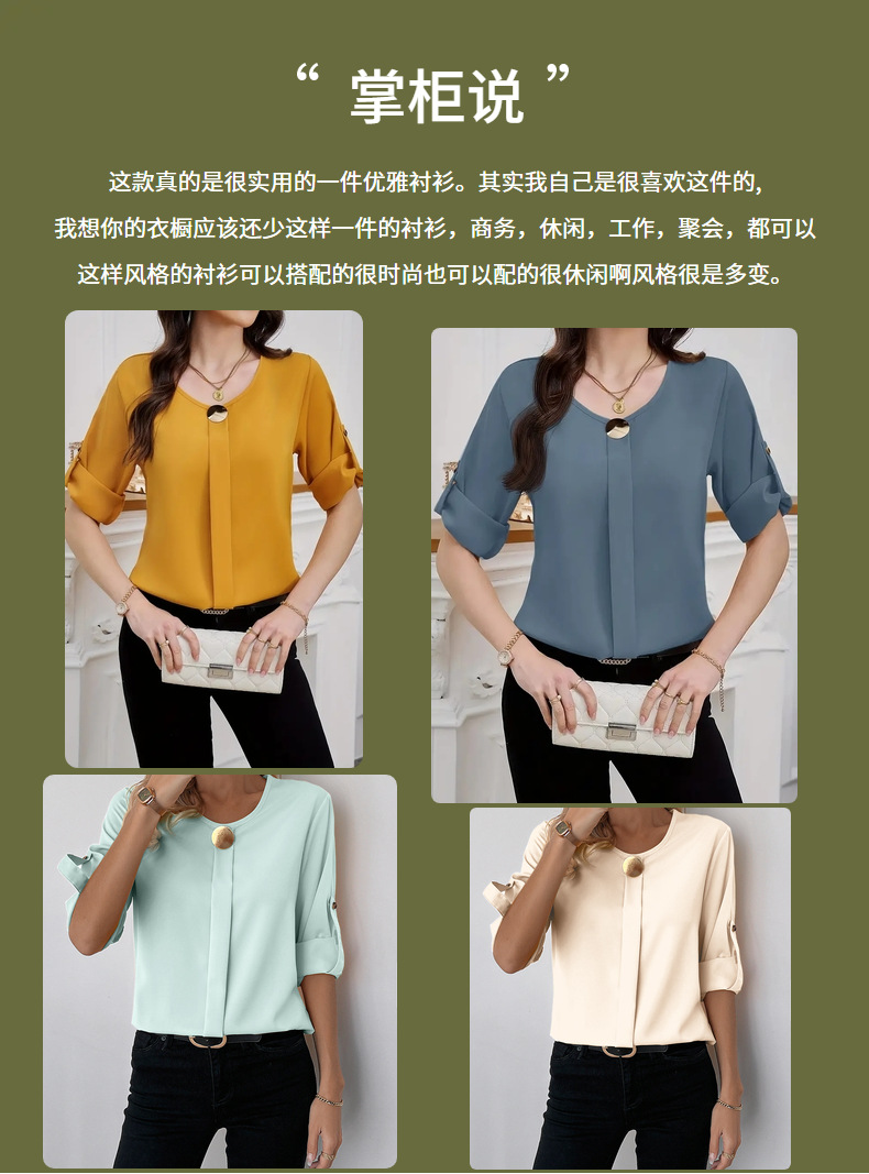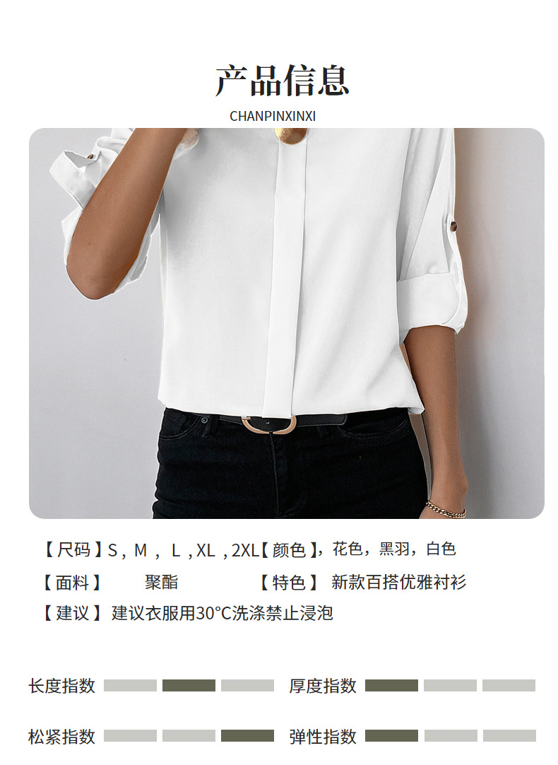 새로운 비즈니스 올 매치 작업 옷 라운드 넥 롤 소매 간단한 우아한 디자인 패션 캐주얼 여성 셔츠 우아한 세트스토어 가기
