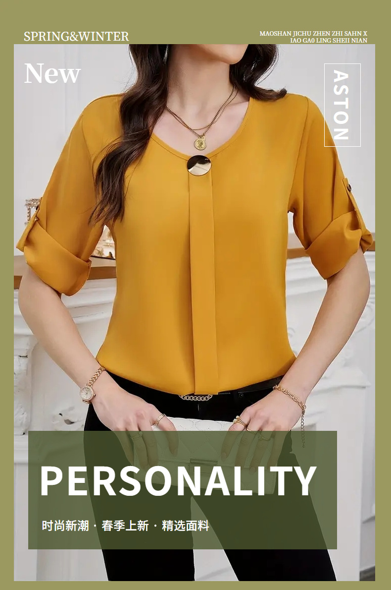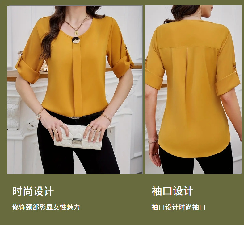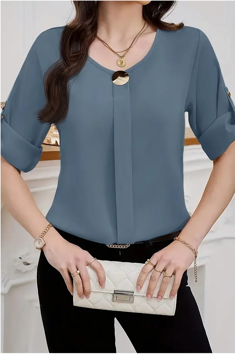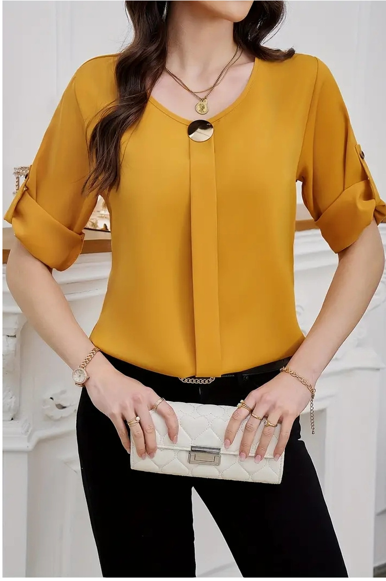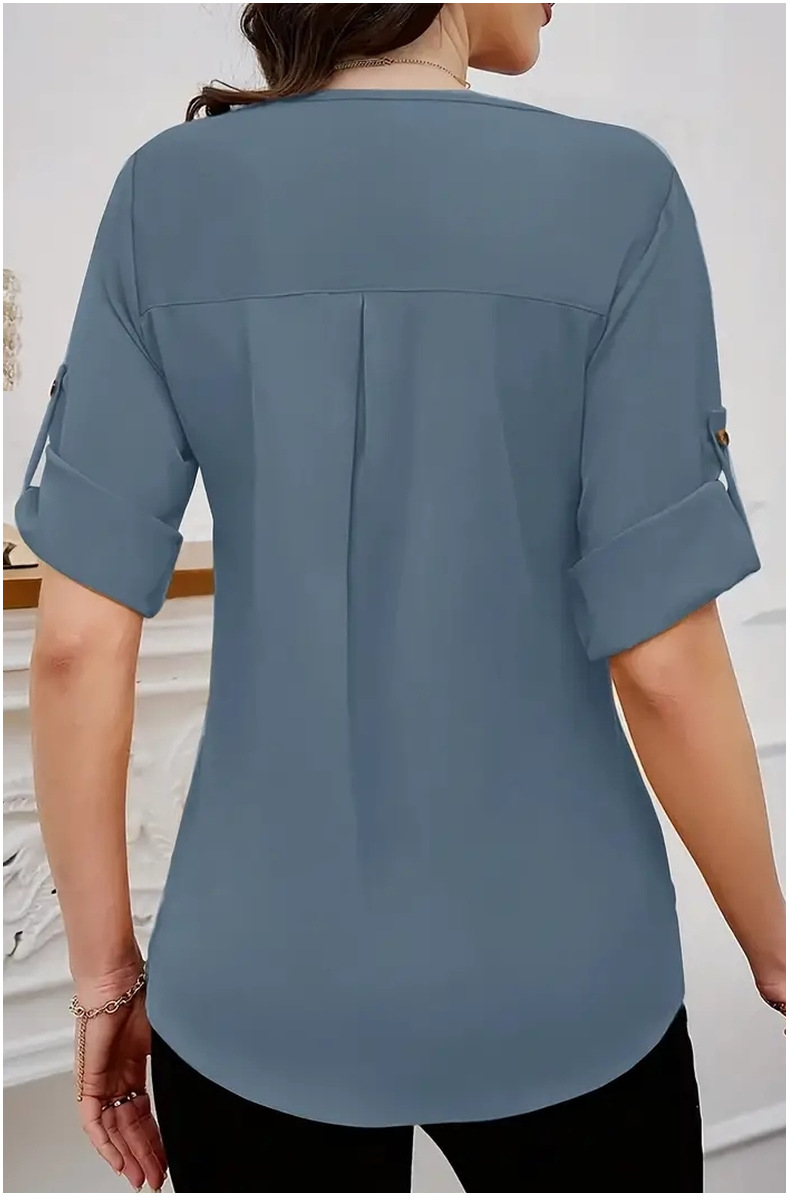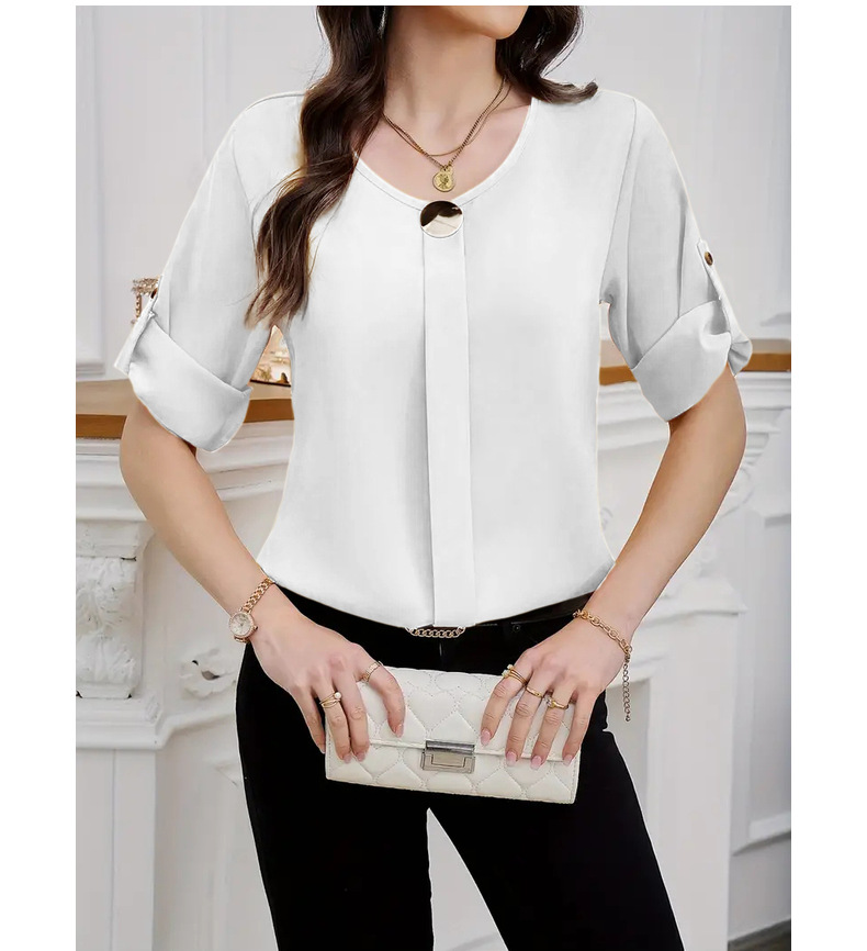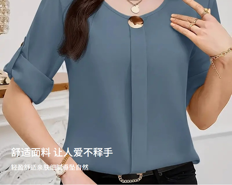 새로운 비즈니스 올 매치 작업 옷 라운드 넥 롤 소매 간단한 우아한 디자인 패션 캐주얼 여성 셔츠 우아한 세트스토어 가기