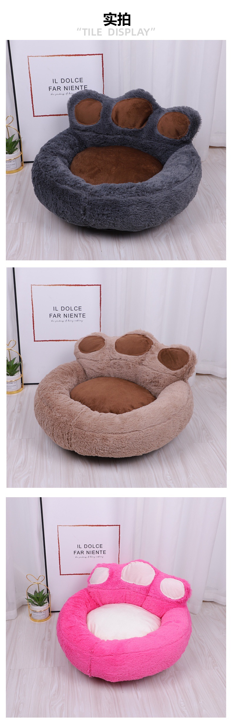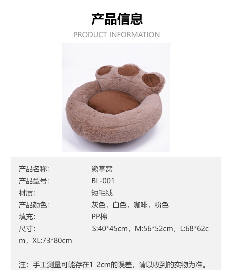 애완 동물 용품 소스 공장 도매 겨울 따뜻한 애완 동물 둥지 이동식 및 빨 수있는 곰 발 고양이 사육장 개 개집 애완 동물 침대