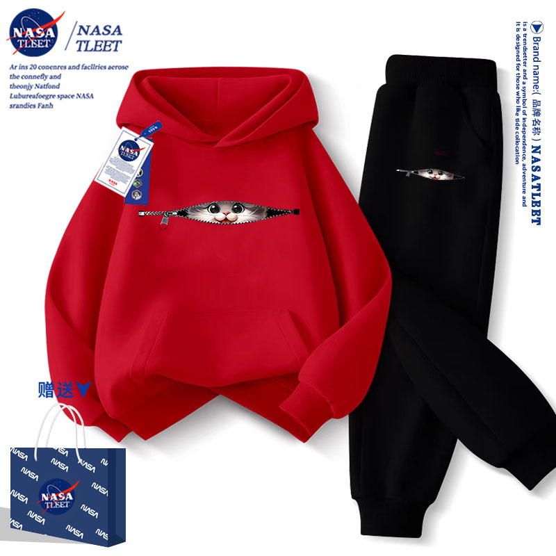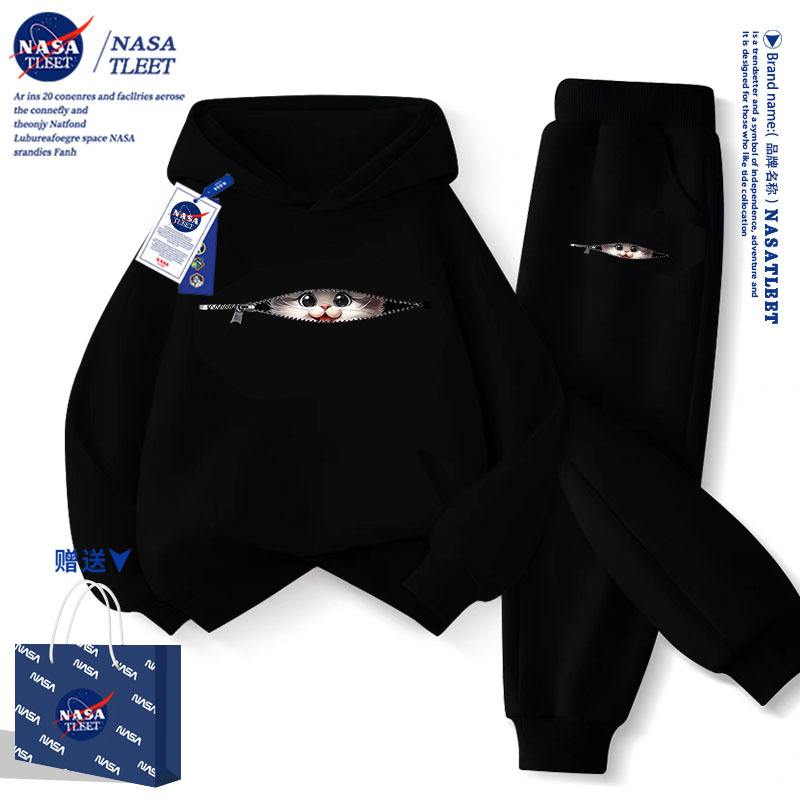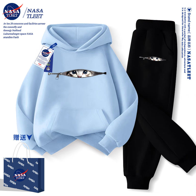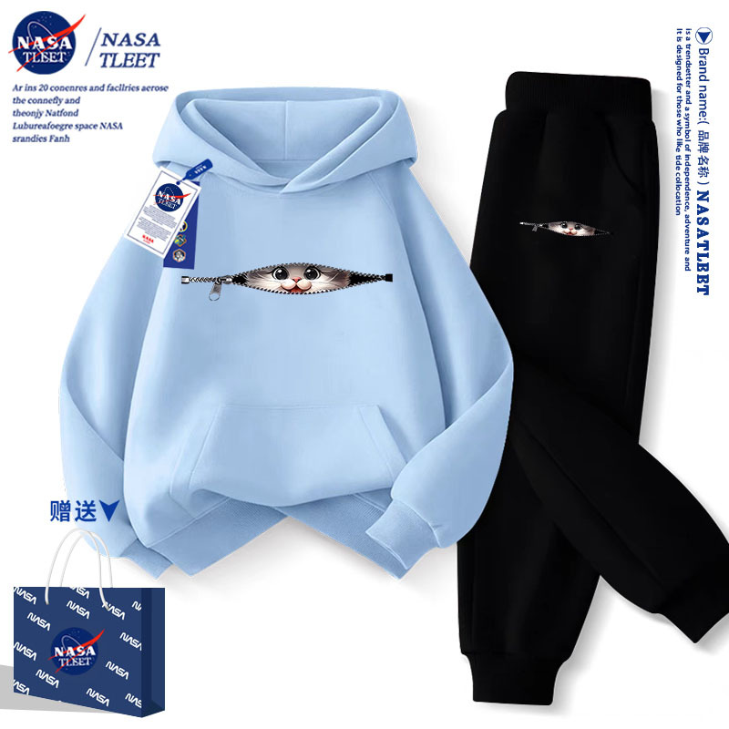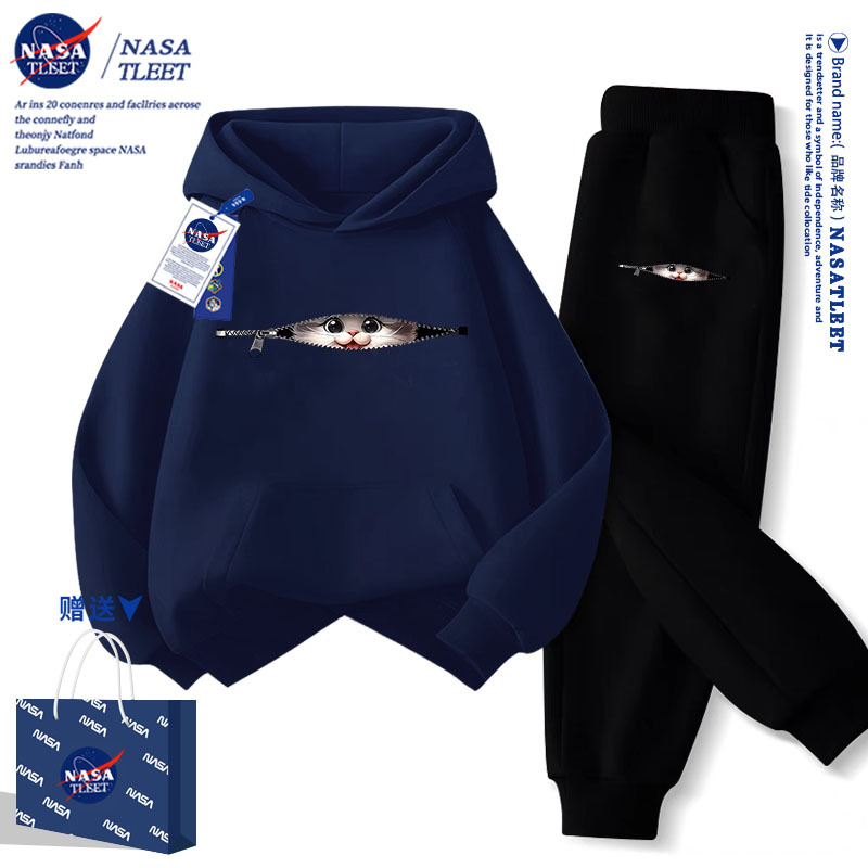 NASA 합동 소년과 소녀의 운동복 가을과 겨울 고양이 스타일 어린이 두꺼운 어린 소녀의 겨울 긴 소매 자켓