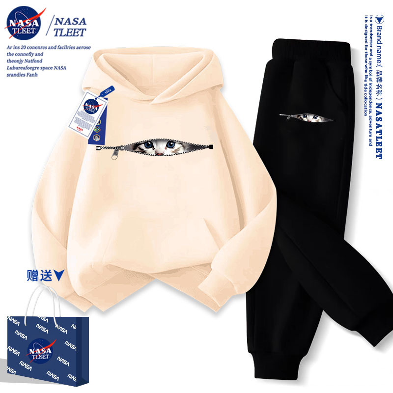 NASA 합동 소년과 소녀의 운동복 가을과 겨울 고양이 스타일 어린이 두꺼운 어린 소녀의 겨울 긴 소매 자켓스토어 가기