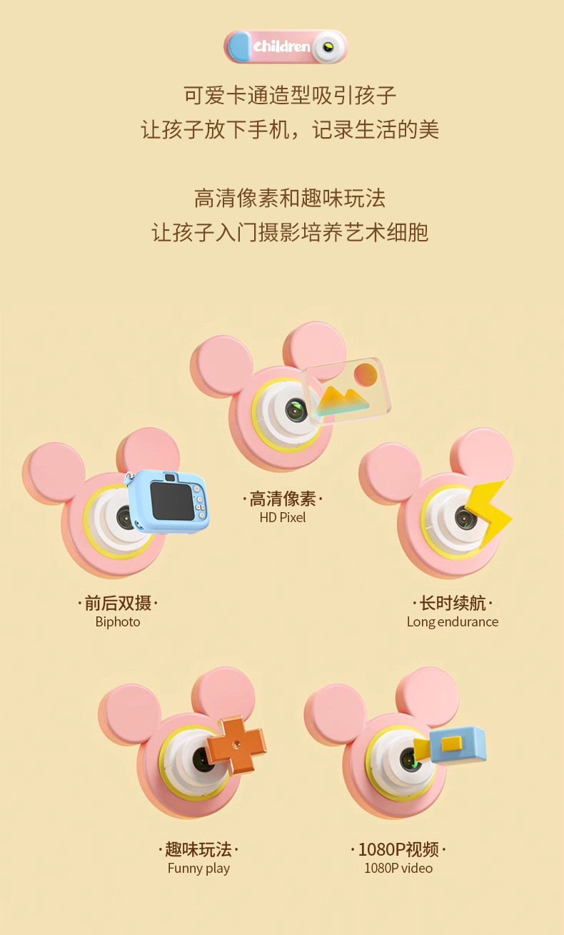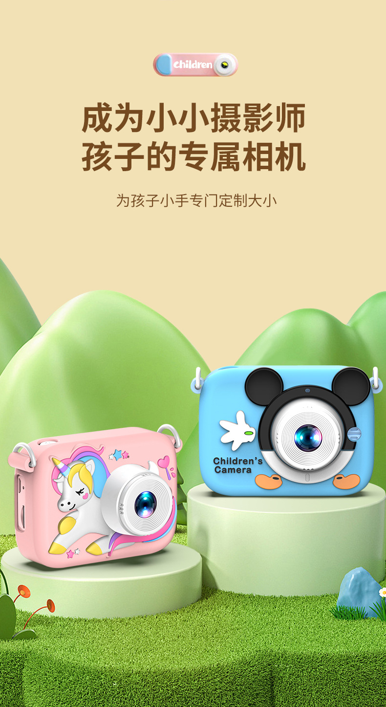 국경 HD 듀얼 렌즈 어린이 카메라 미키 유니콘 미니 만화 장난감 작은 DSLR 디지털 카메라스토어 가기