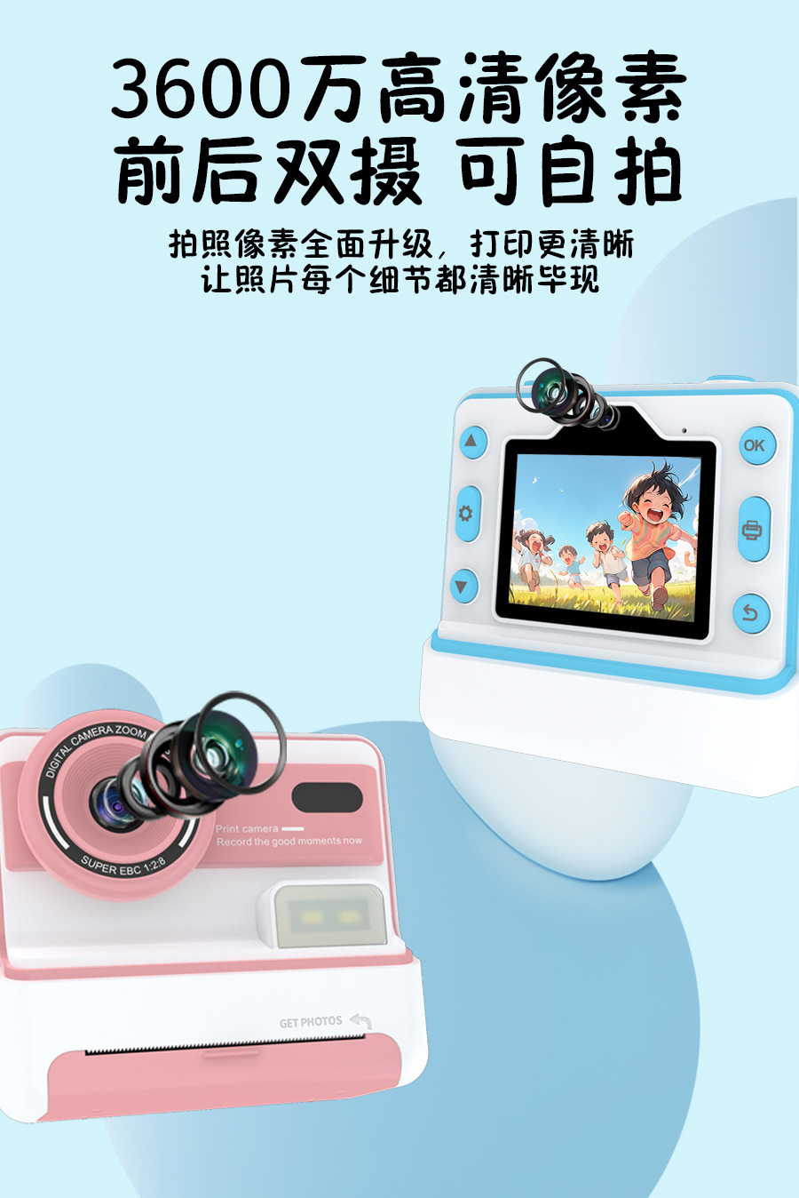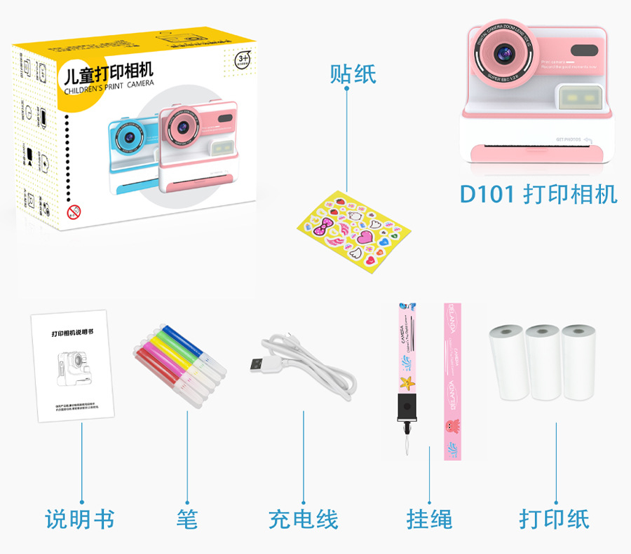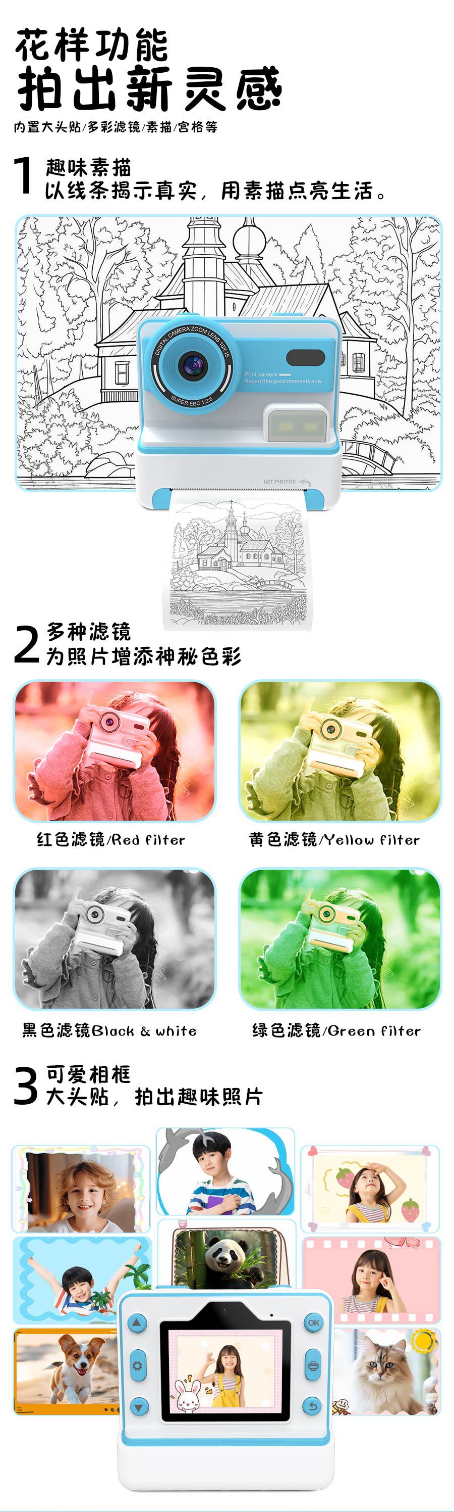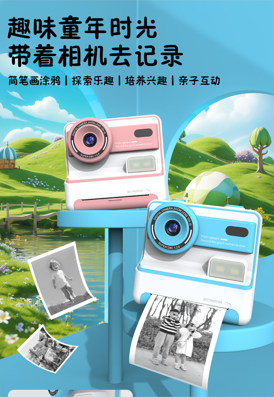 국경 간 어린이 비트 인쇄 카메라 촬영 및 2.4 인치 HD 스크린 열 프린터 재생스토어 가기