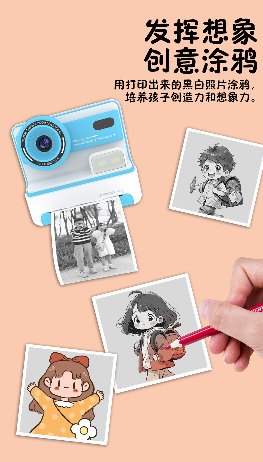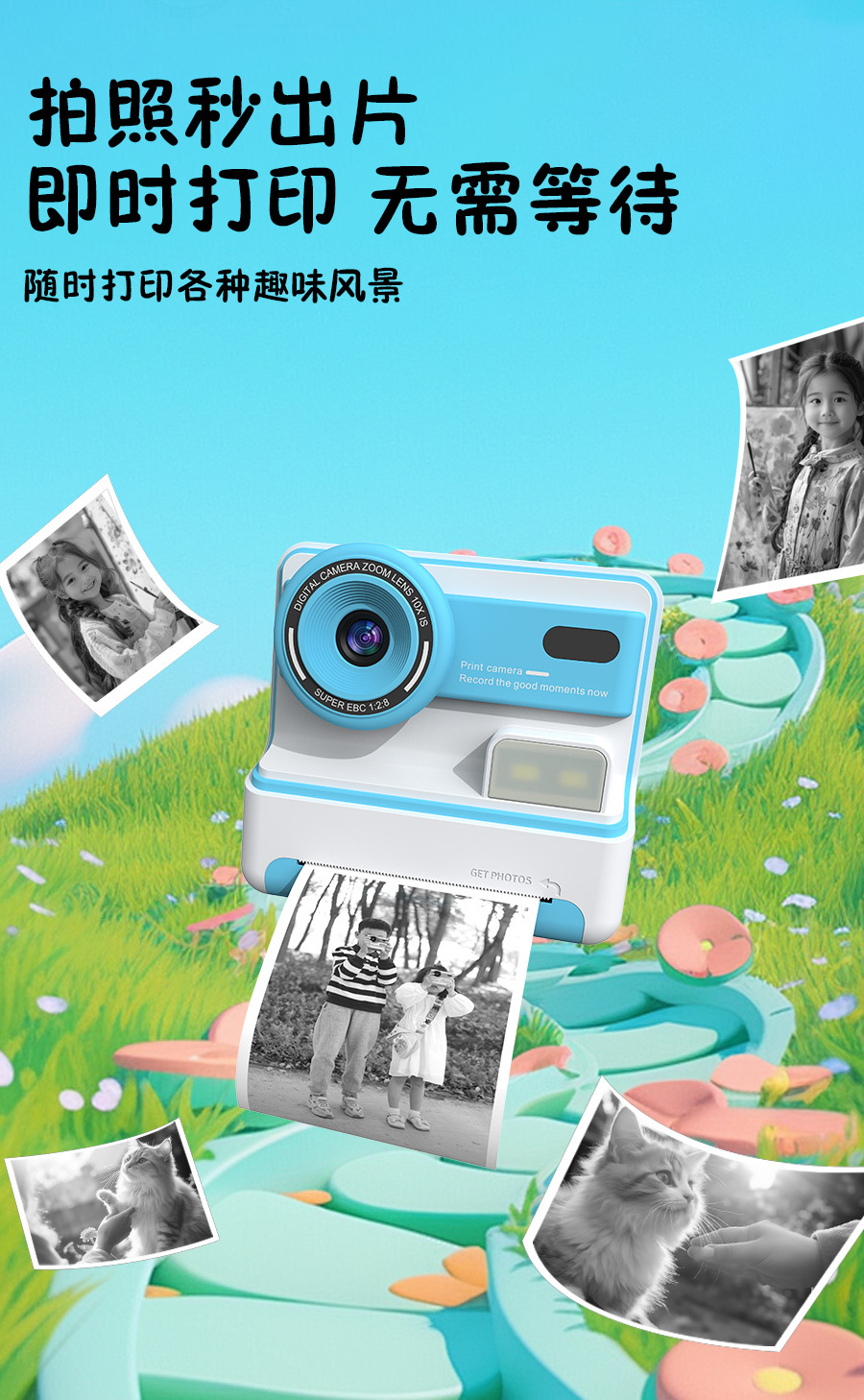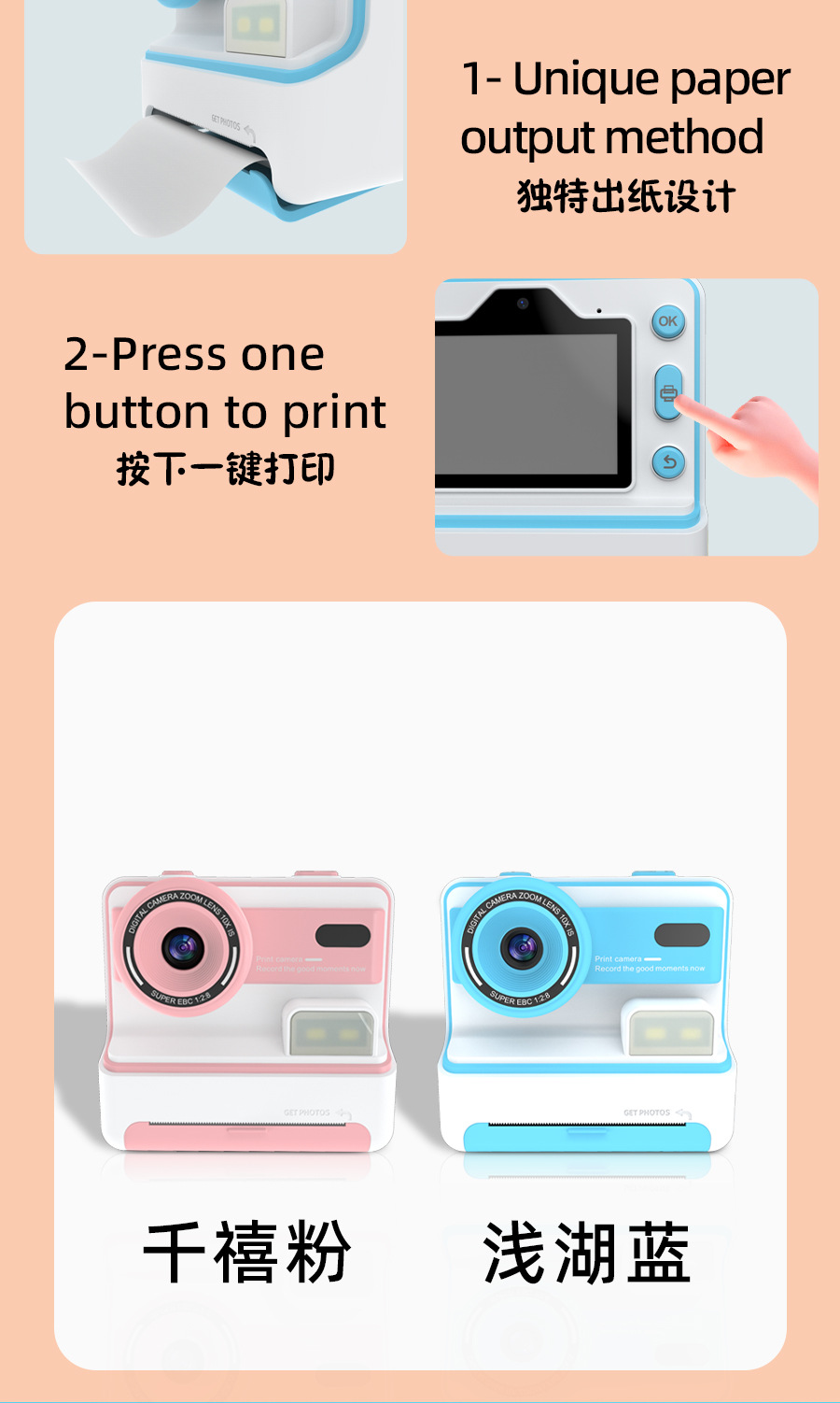 국경 간 어린이 비트 인쇄 카메라 촬영 및 2.4 인치 HD 스크린 열 프린터 재생스토어 가기