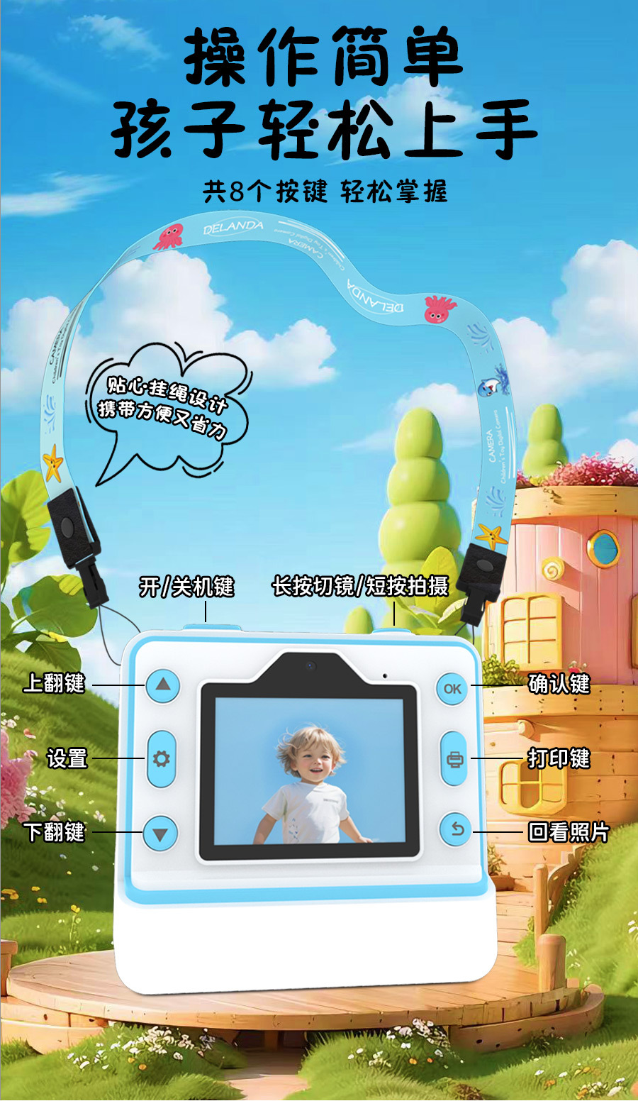 국경 간 어린이 비트 인쇄 카메라 촬영 및 2.4 인치 HD 스크린 열 프린터 재생