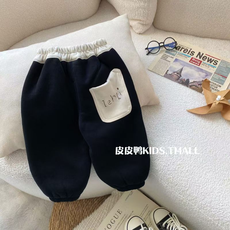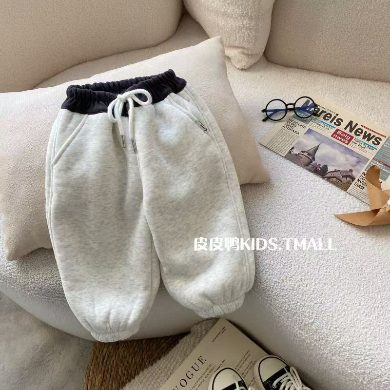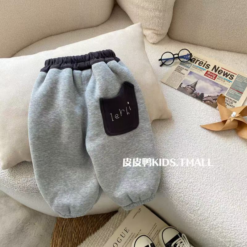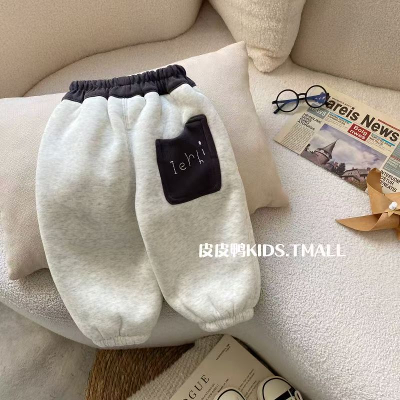 2024 어린이 겨울 기모 캐주얼 바지 소년의 따뜻한 두꺼운 벨벳 바지 아기 한국식 땀 바지 겨울옷 바지스토어 가기
