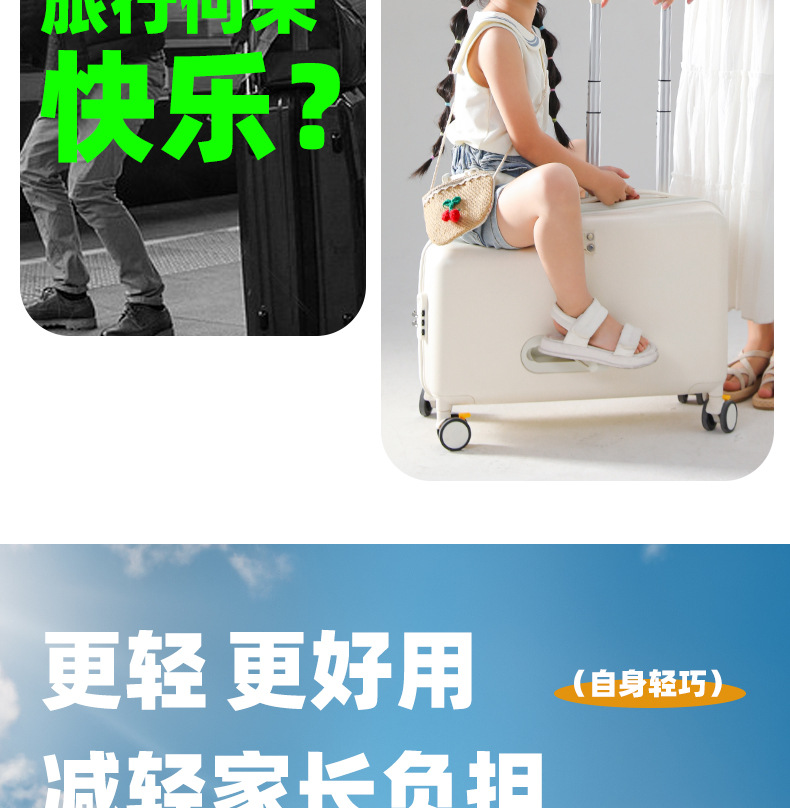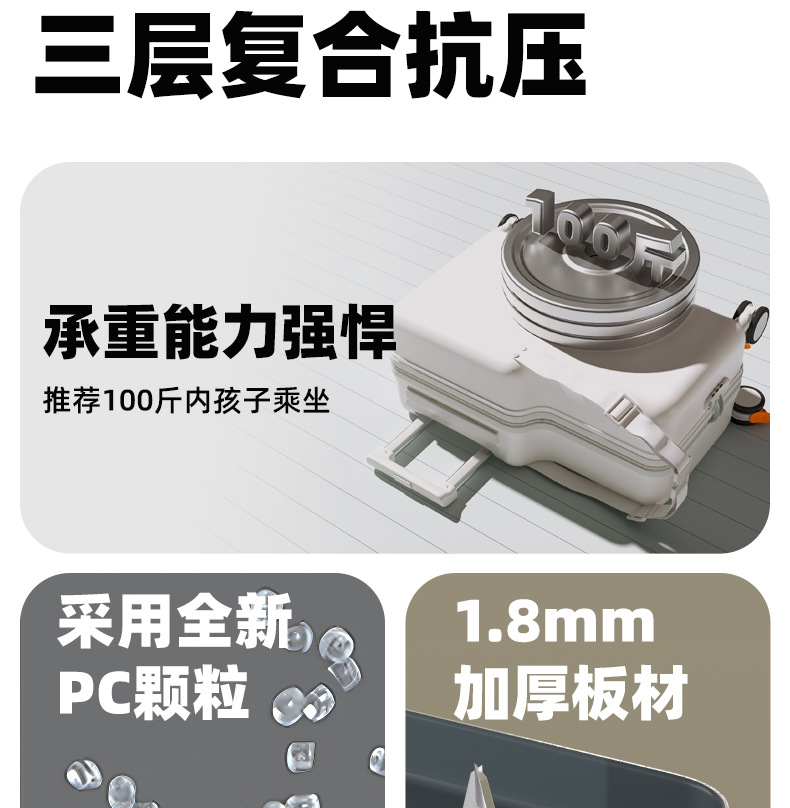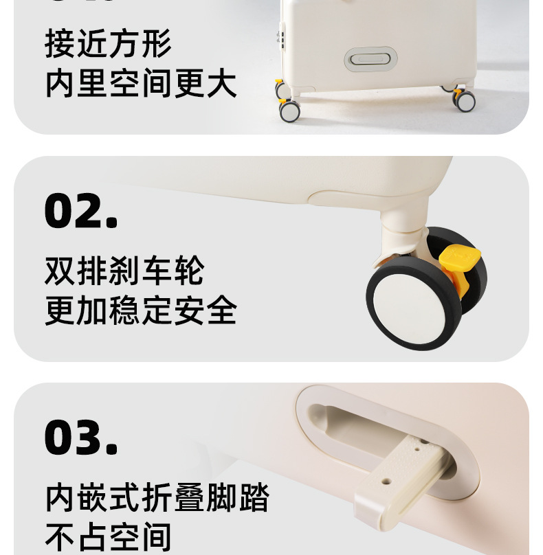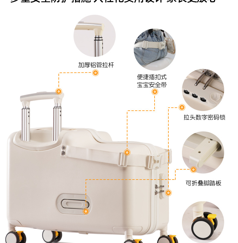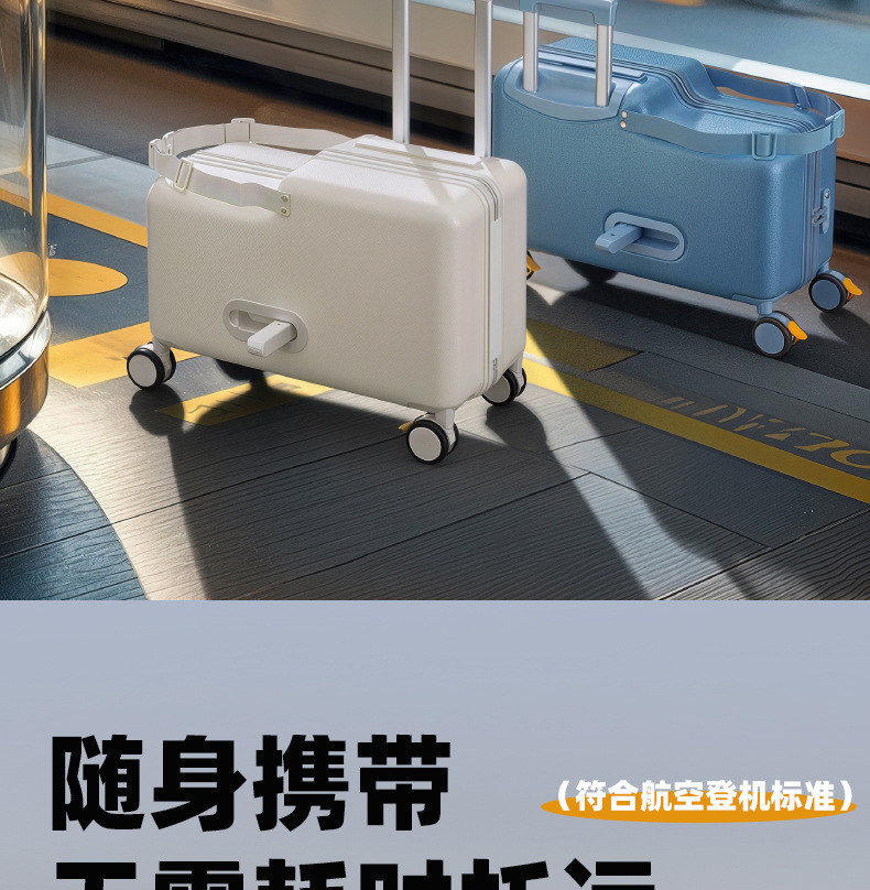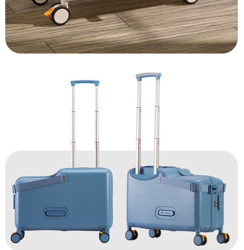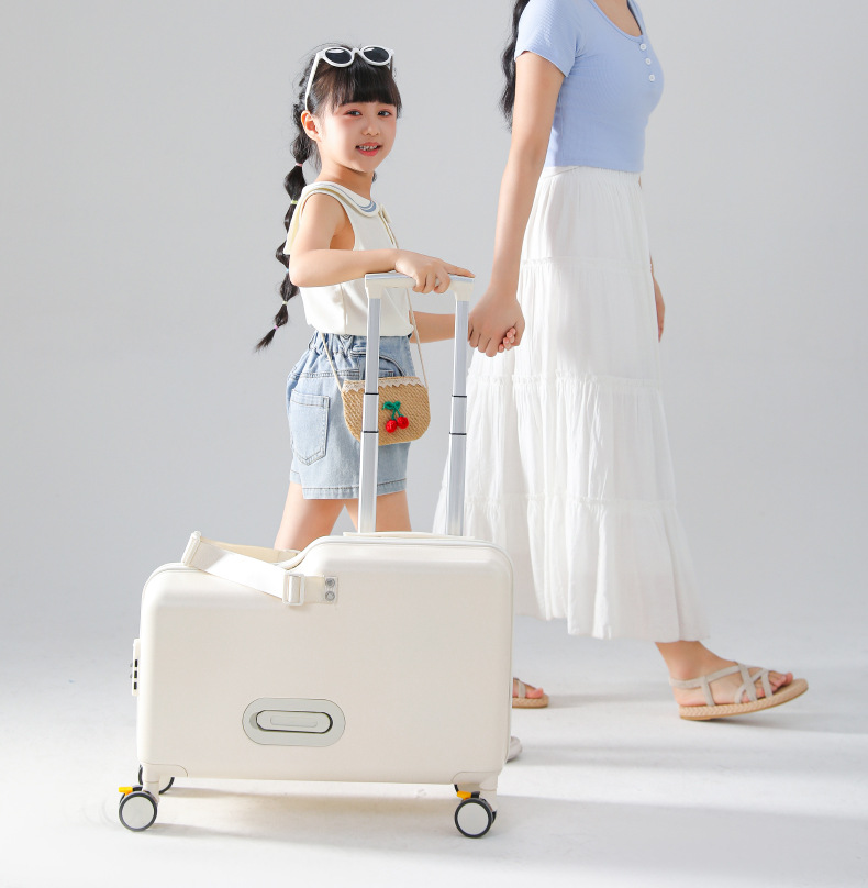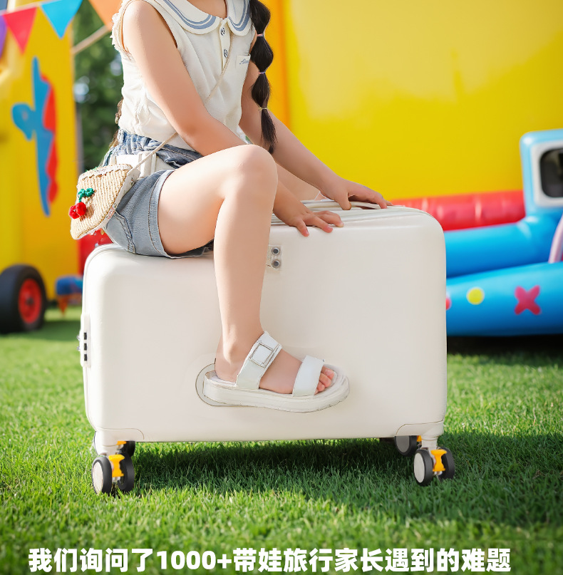 공장 재고 어린이 수하물 케이스 시트테이블 및 승차 가능한 케이스 남성 트롤리 케이스 유니버설 브레이크 아기 가방