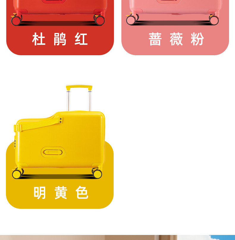 공장 재고 어린이 수하물 케이스 시트테이블 및 승차 가능한 케이스 남성 트롤리 케이스 유니버설 브레이크 아기 가방스토어 가기