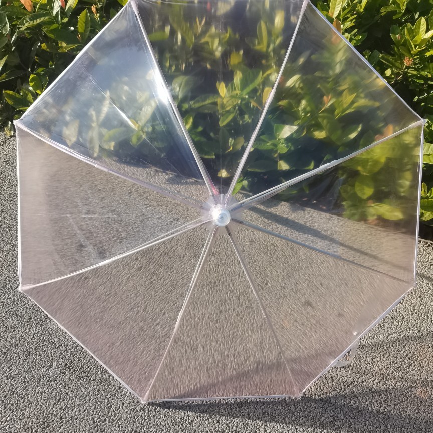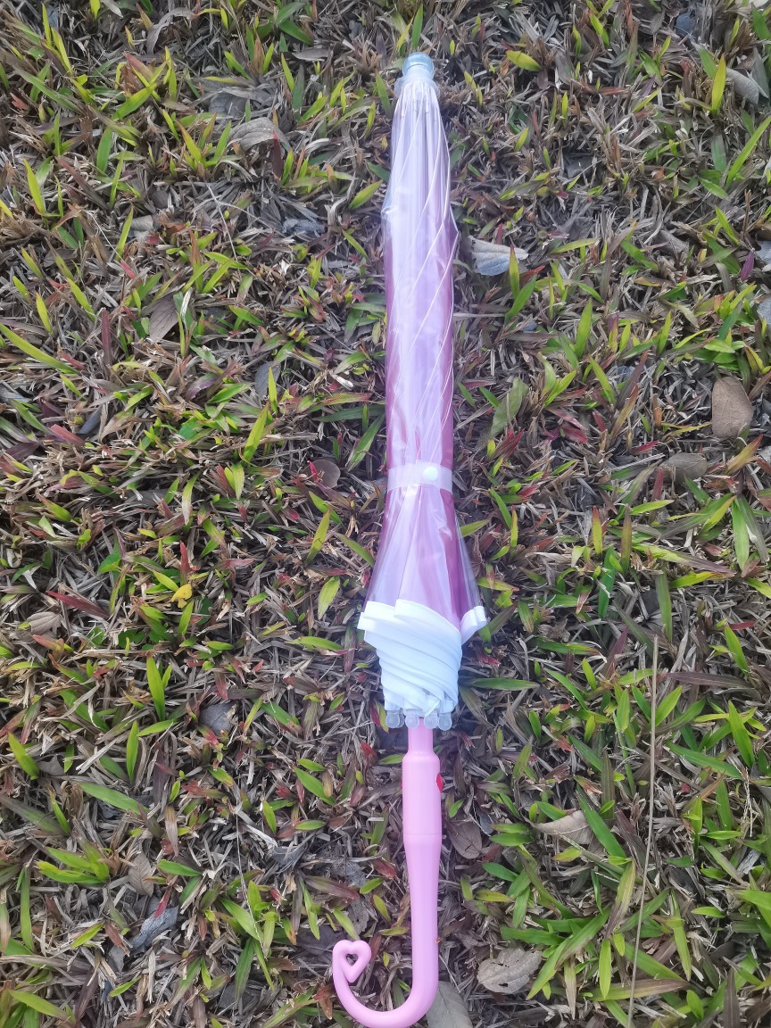 새로운 스타일의 작은 곡선형 손잡이 투명 어린이용 라이트 엄브렐라, 빛에 닿으면 색깔이 변하는 POE 우산면, 화려한 접이식 마법 차양 우산