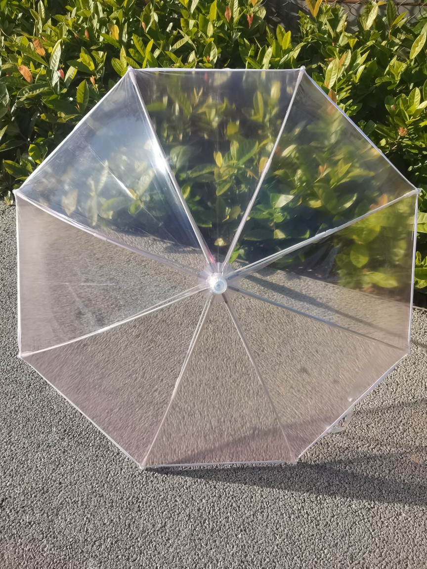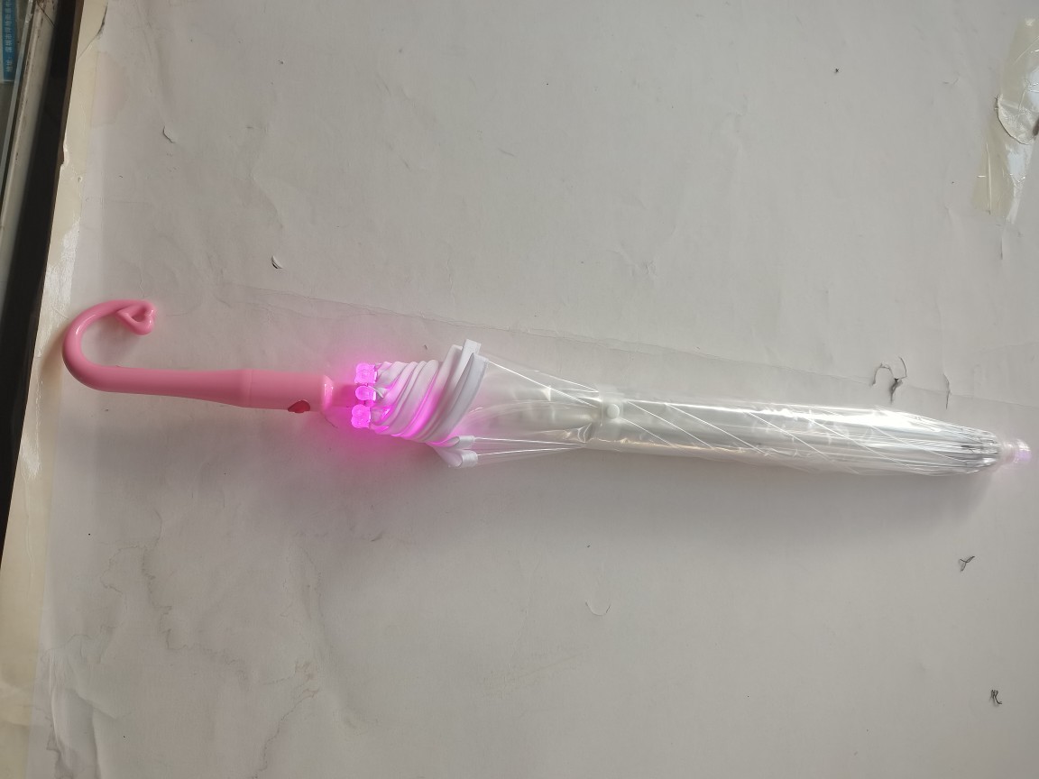 새로운 스타일의 작은 곡선형 손잡이 투명 어린이용 라이트 엄브렐라, 빛에 닿으면 색깔이 변하는 POE 우산면, 화려한 접이식 마법 차양 우산스토어 가기