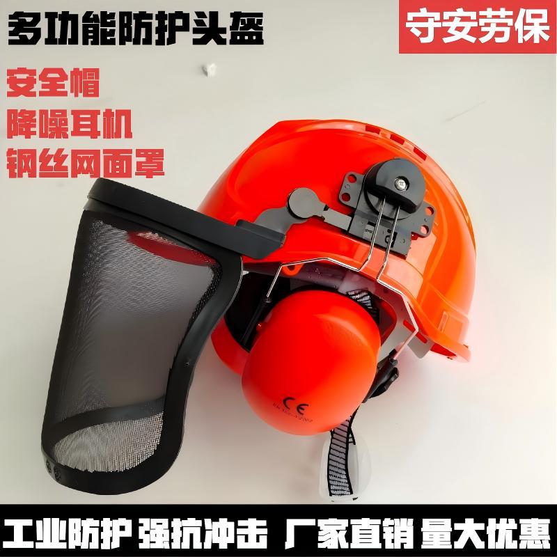 정원 잔디 깎기 보호용 3-in-1 헬멧 안전모, 방진 마스크, 소음 감소 귀마개, 고강도 보호 장비