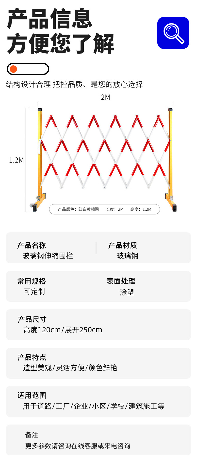 유리 섬유 강화 플라스틱 텔레스코픽 울타리 가드 레일 3m 전력 안전 건설 울타리 절연 모바일 전원 건설 텔레스코픽 가드 레일