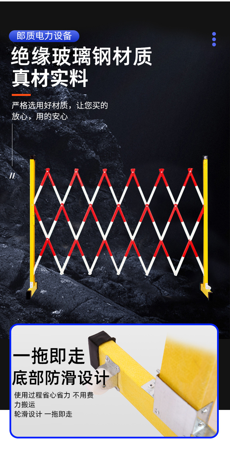 유리 섬유 강화 플라스틱 텔레스코픽 울타리 가드 레일 3m 전력 안전 건설 울타리 절연 모바일 전원 건설 텔레스코픽 가드 레일스토어 가기