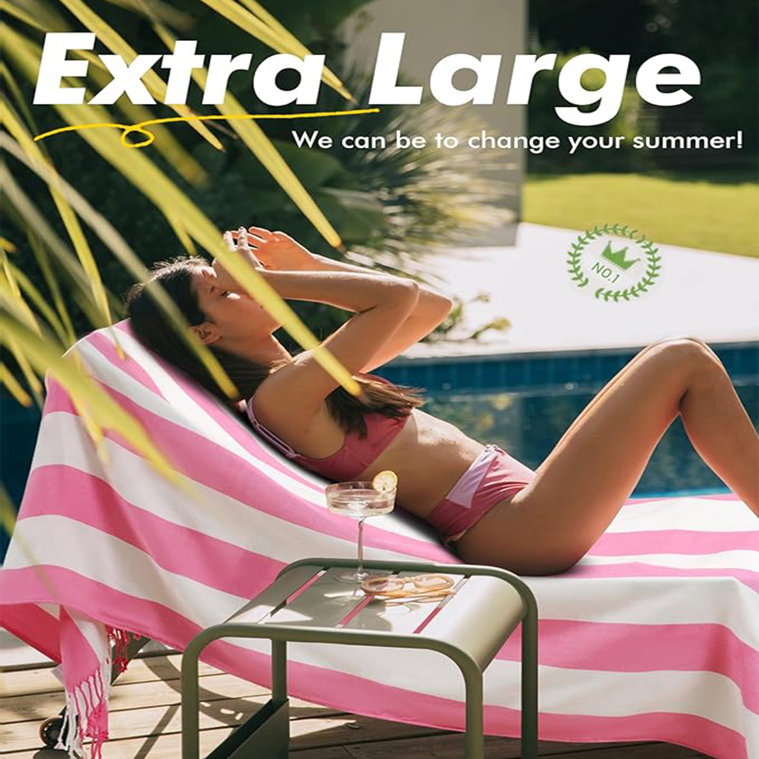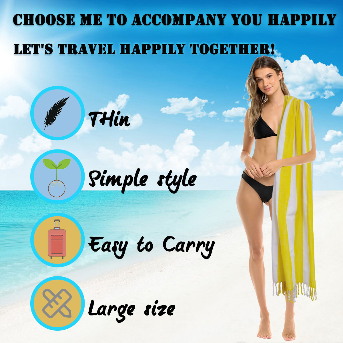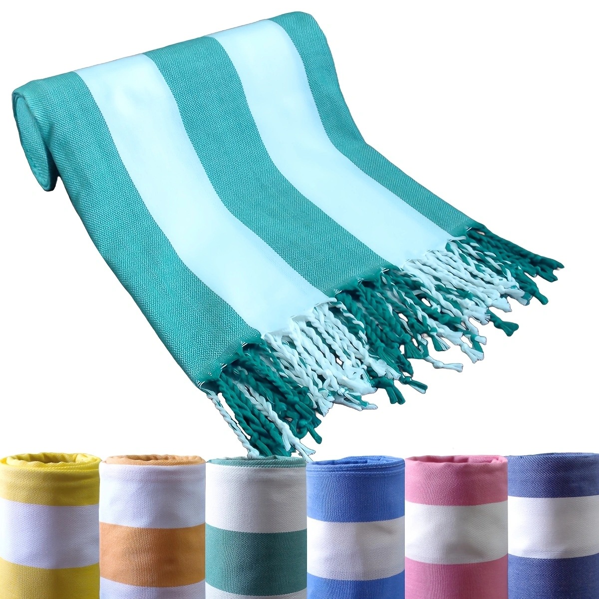 아마존 temu 국경 간 뜨거운 판매 세로 줄무늬 터키면 모래 방지 비치 타월 초대형 목욕 타월 200x90cm