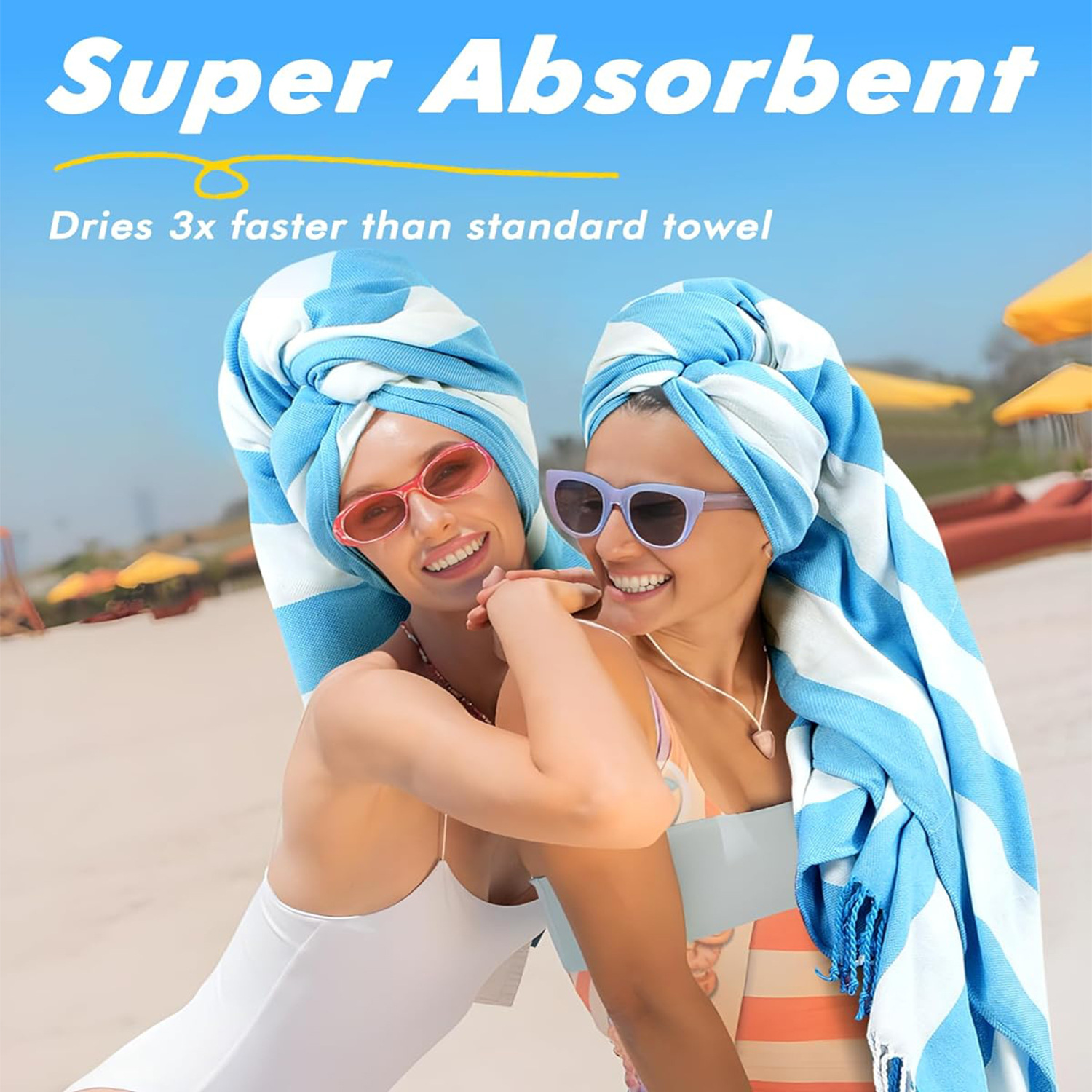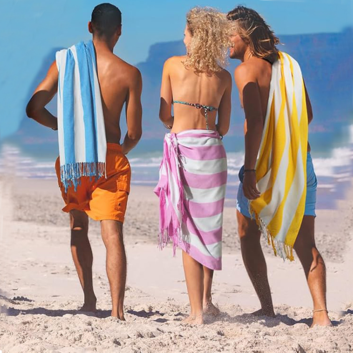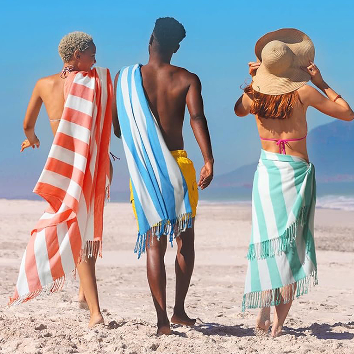 아마존 temu 국경 간 뜨거운 판매 세로 줄무늬 터키면 모래 방지 비치 타월 초대형 목욕 타월 200x90cm