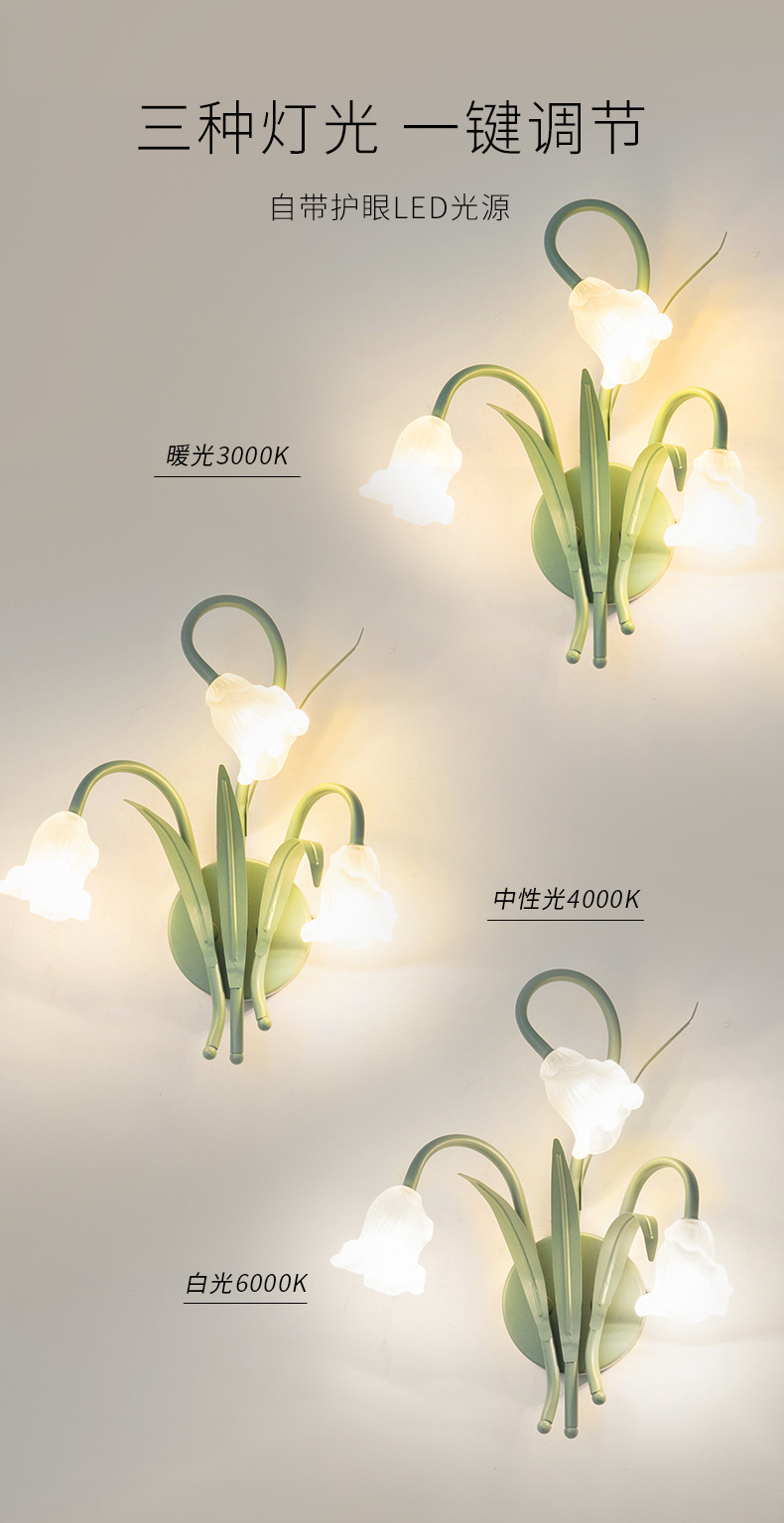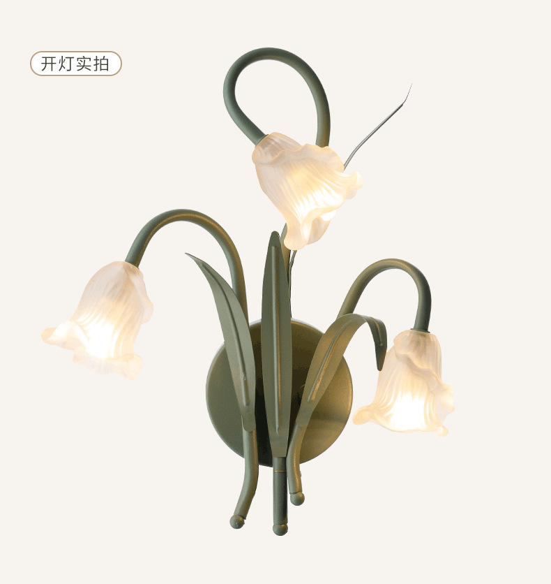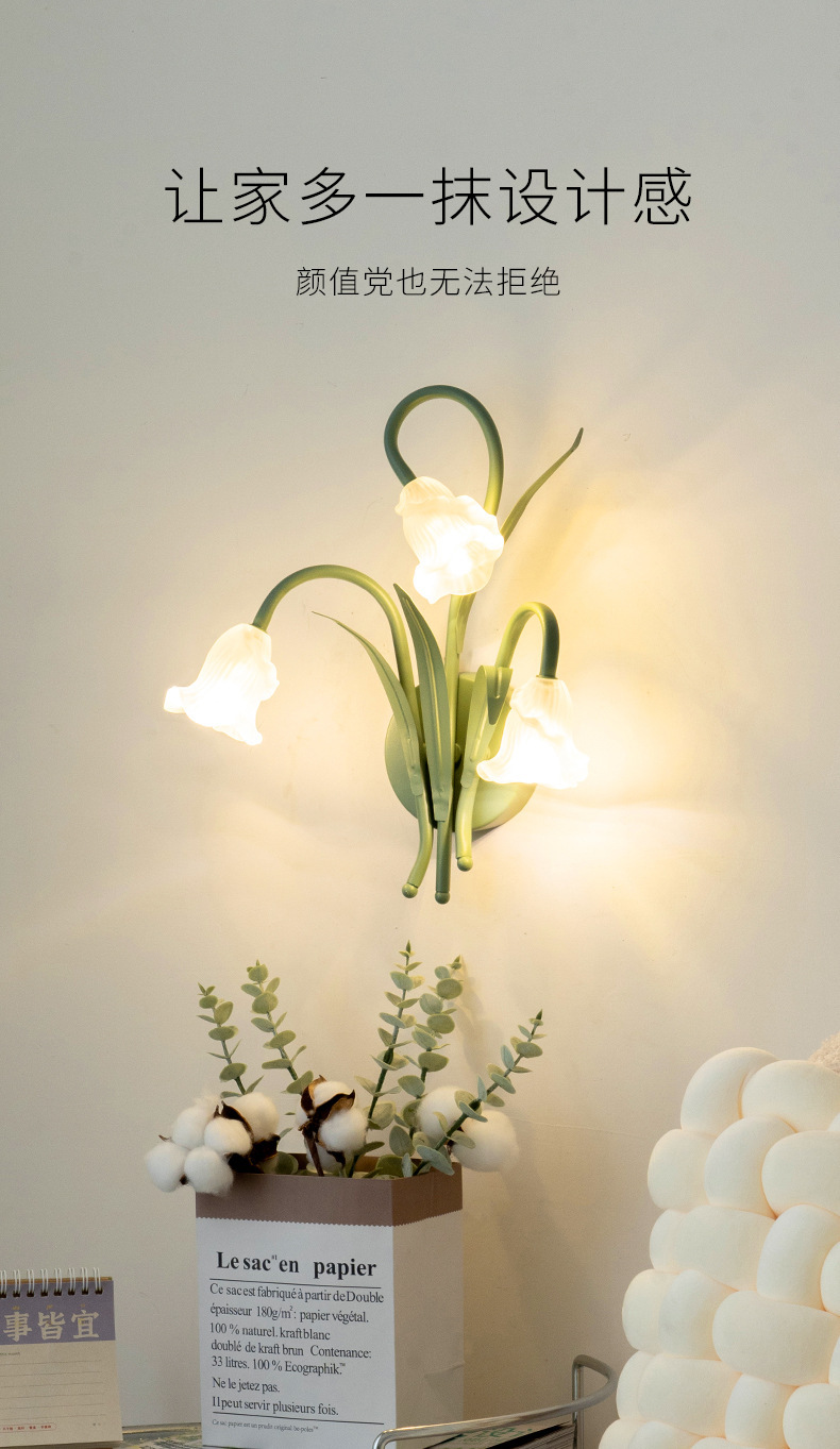 목가적 인 크림 스타일 침실 침실 램프 창조적 인 꽃 배경 벽 미국 스타일 레트로 그린 LED 신선한 벽 램프스토어 가기