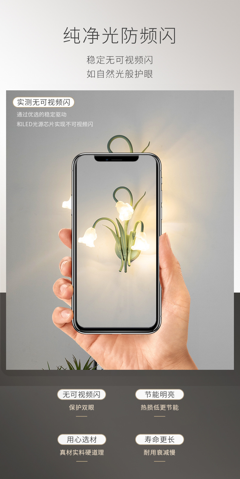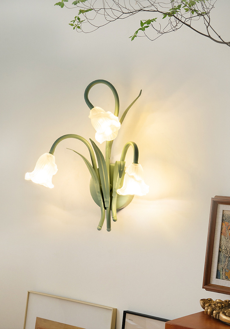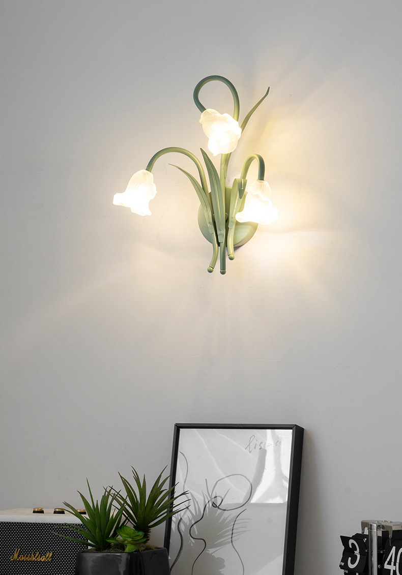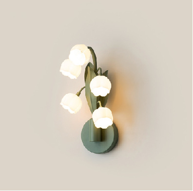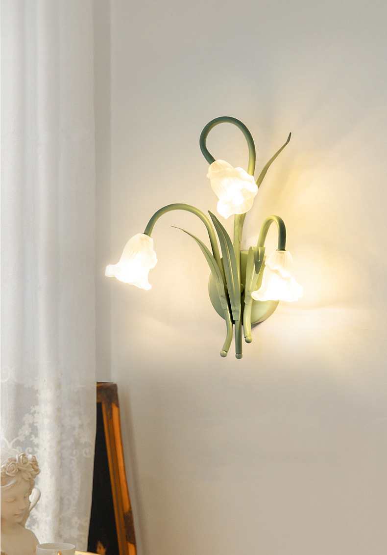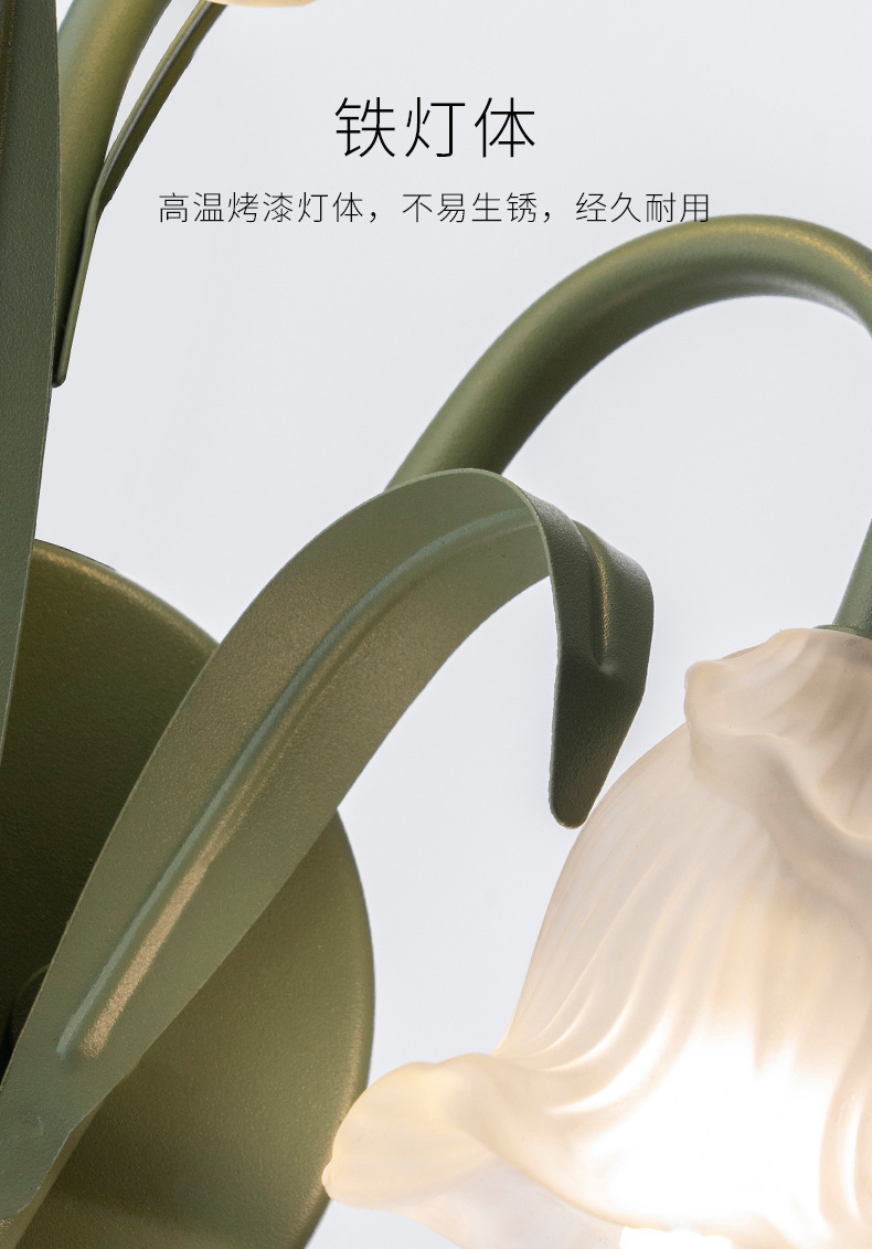 목가적 인 크림 스타일 침실 침실 램프 창조적 인 꽃 배경 벽 미국 스타일 레트로 그린 LED 신선한 벽 램프