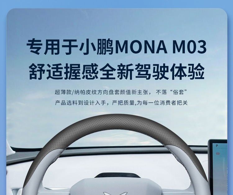 2024 Xiaopeng MONA M03 특수 스티어링 휠 커버 초박형 사계절 손으로 꿰매는 장식 인테리어 액세서리 용품스토어 가기
