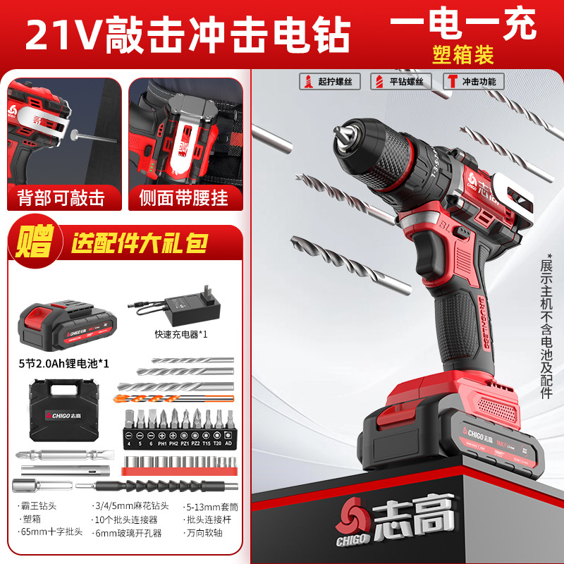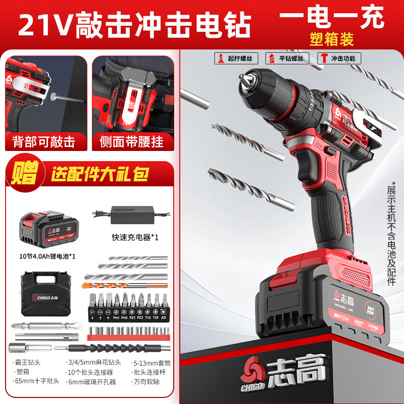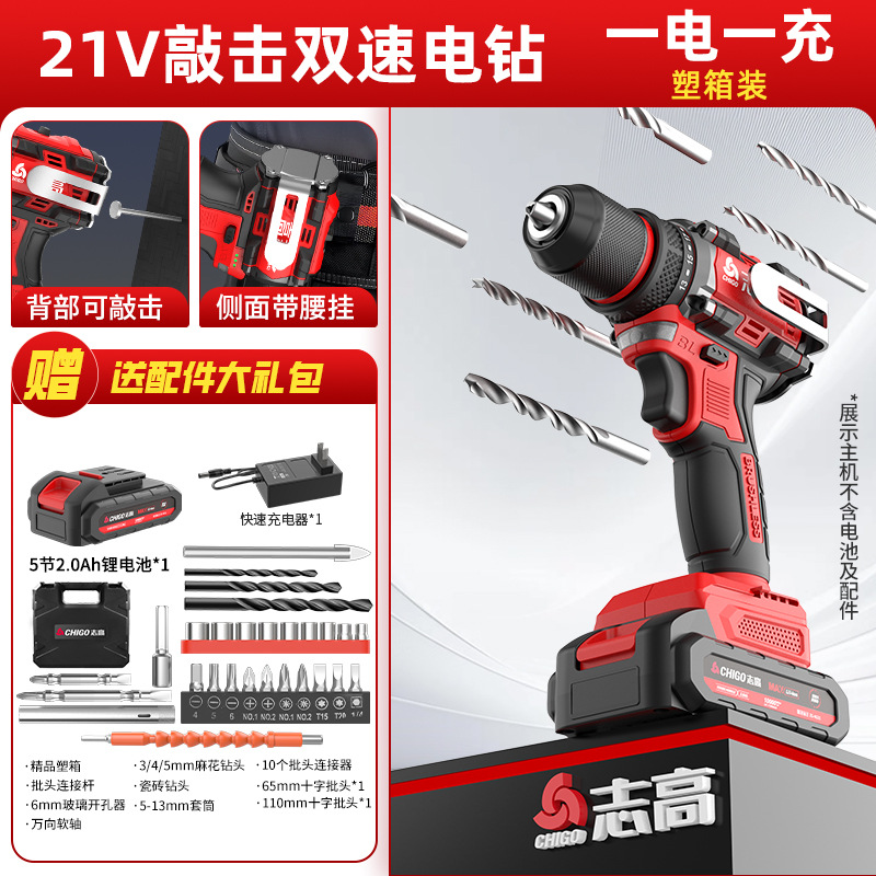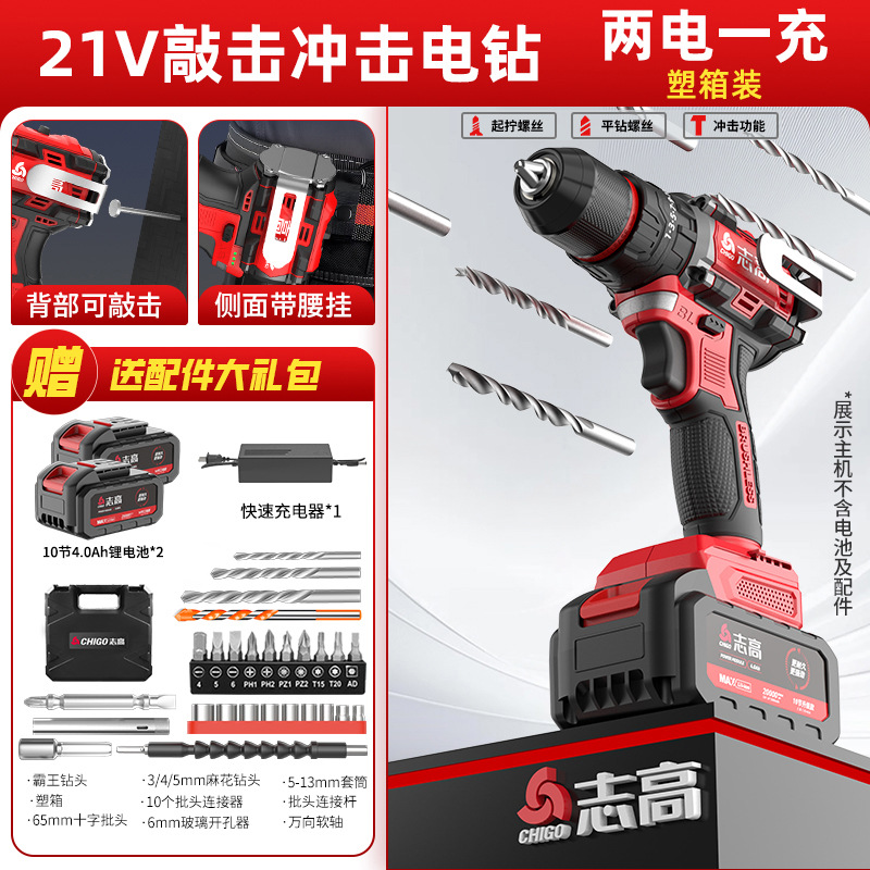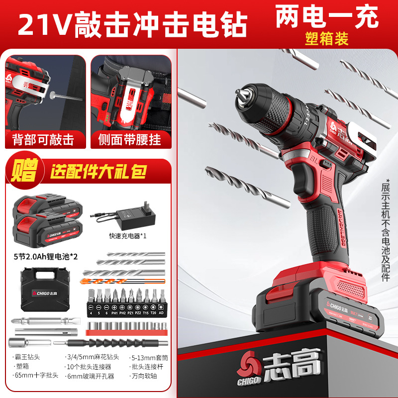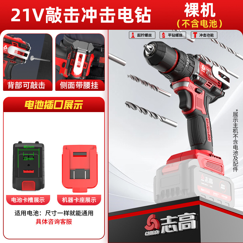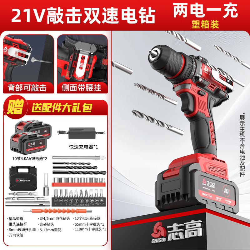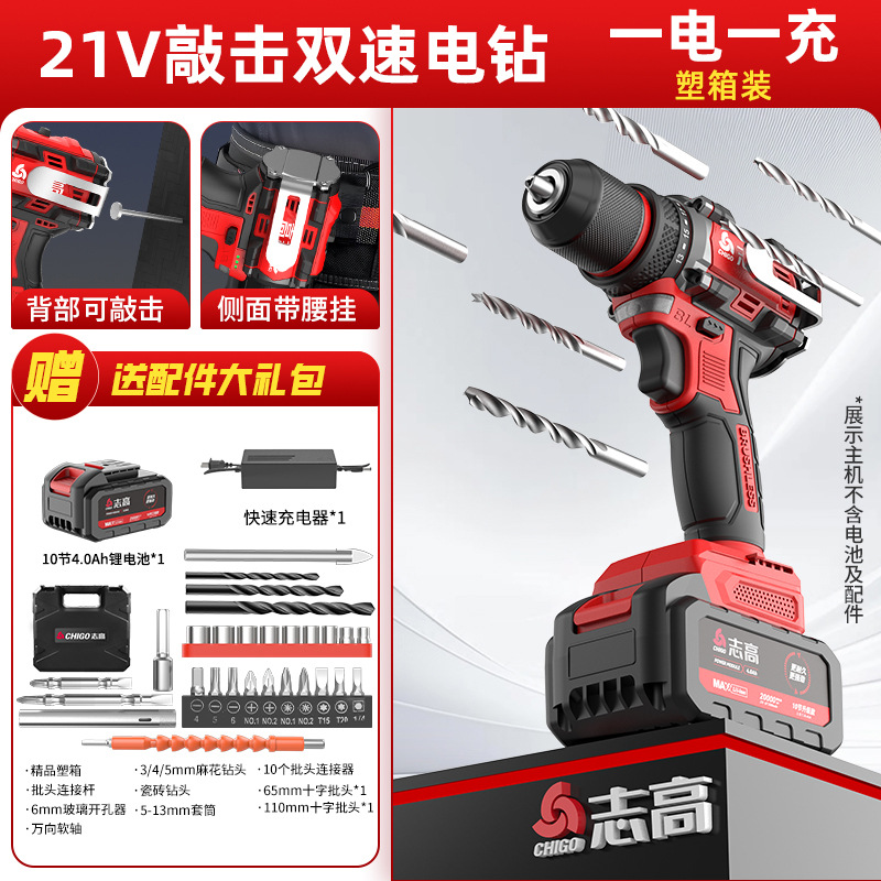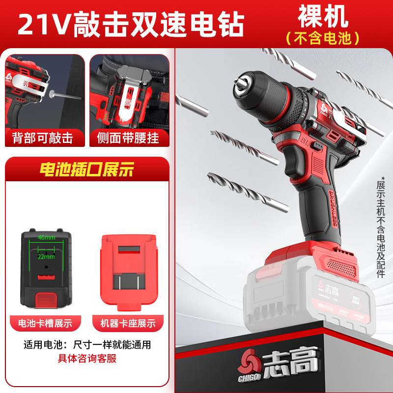 다용도 가정용 전동 드릴, 리튬 배터리 충격 드릴, 브러시리스 소형 강력 전동 공구