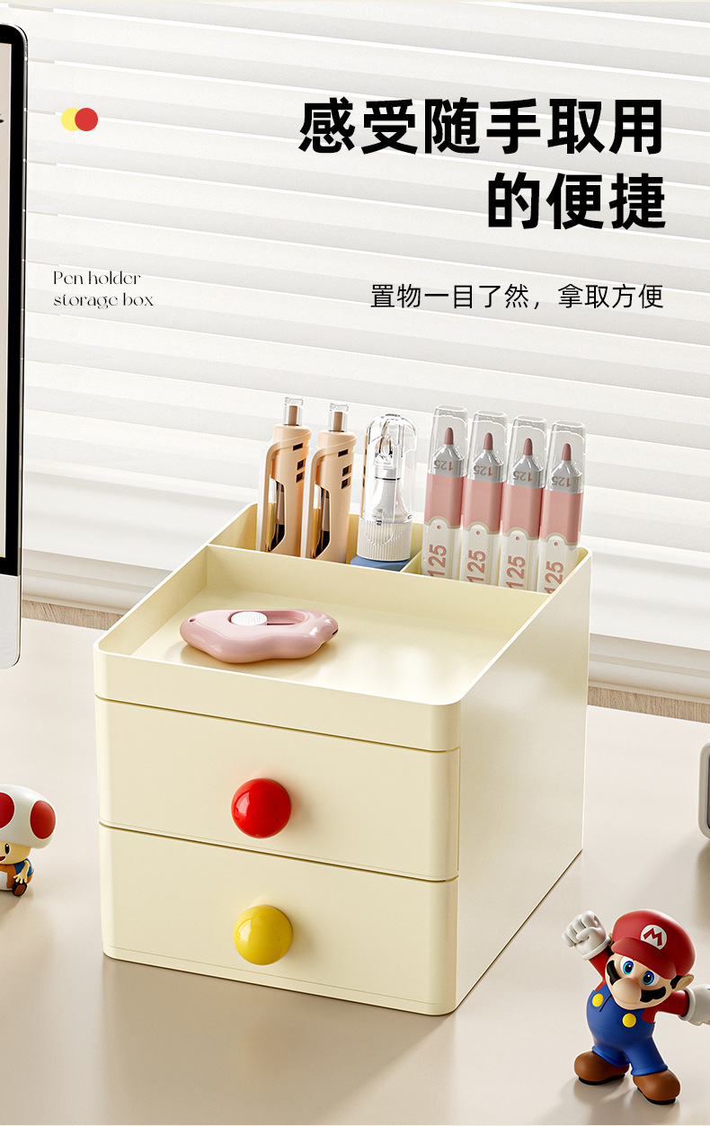 더블 레이어 도파민 저장 상자 학생 책상 문구 마무리 서랍 사무실 데스크탑 저장 상자스토어 가기