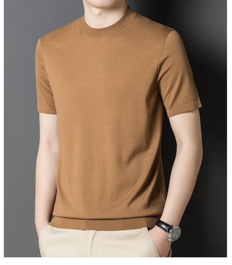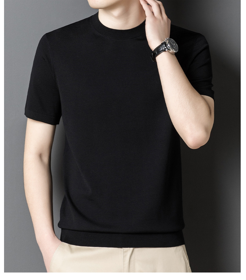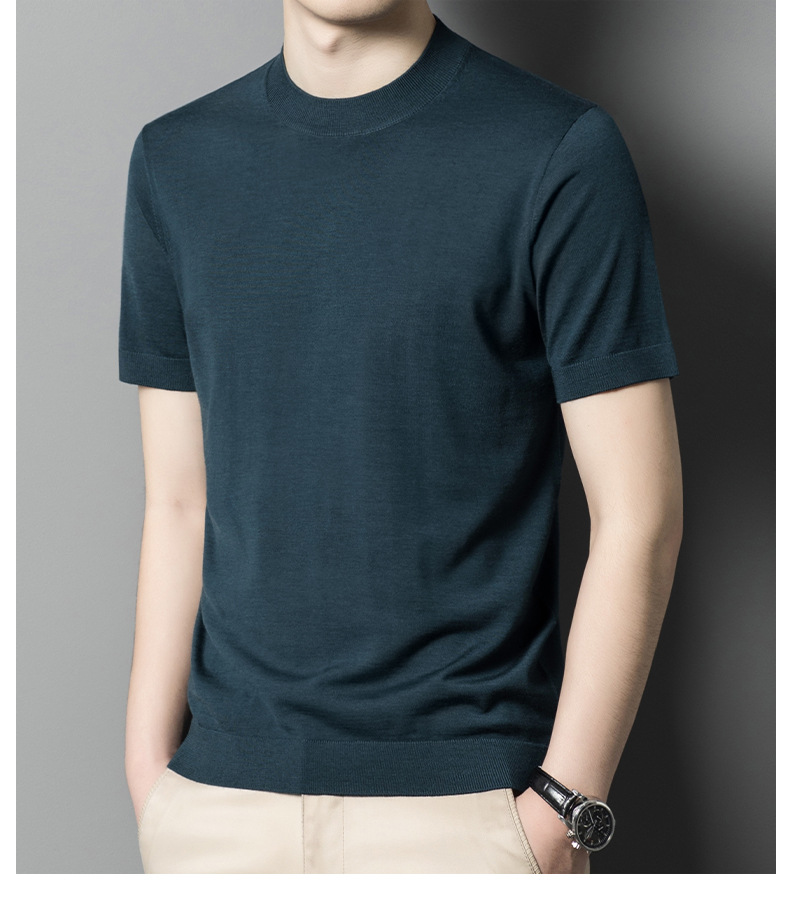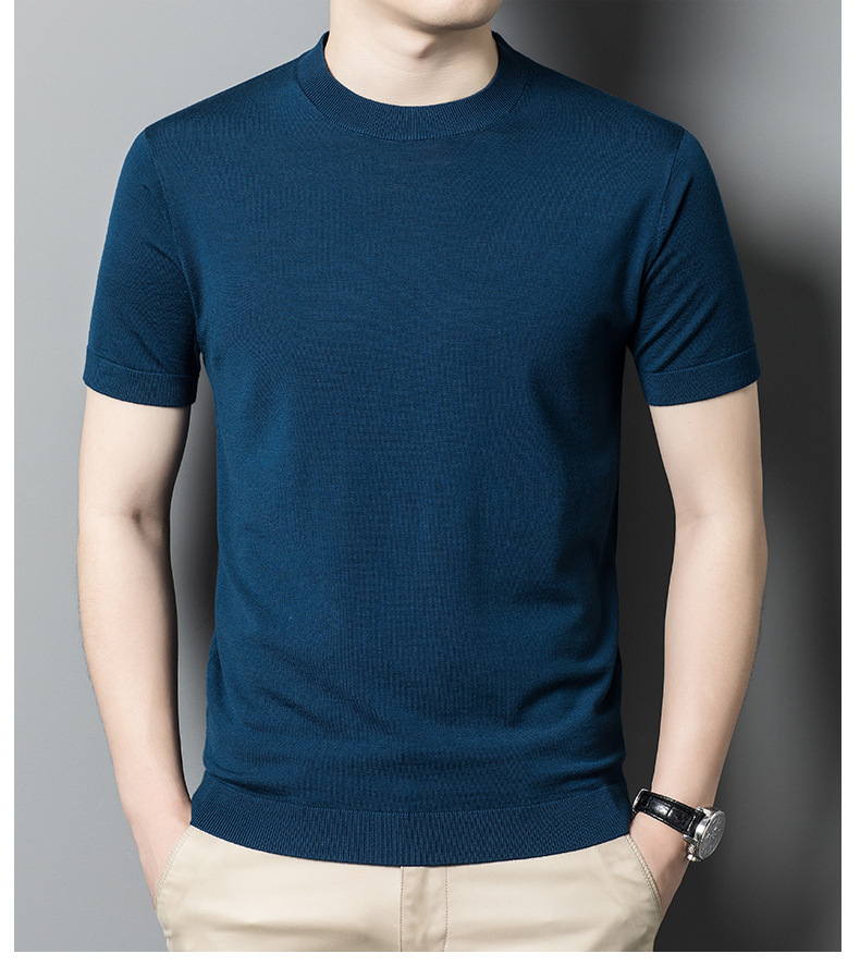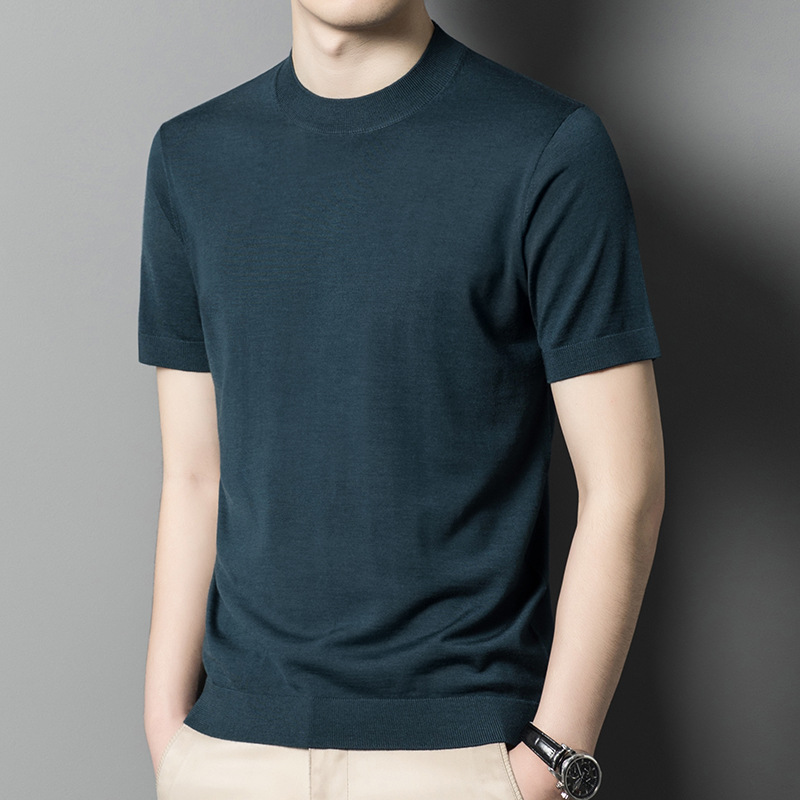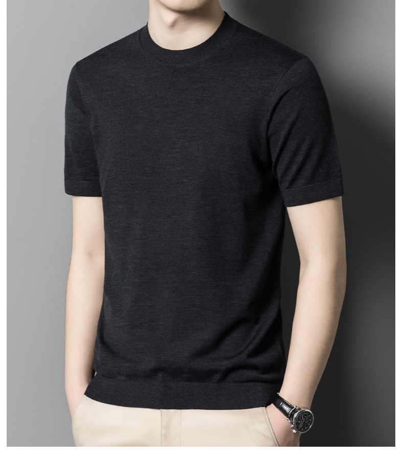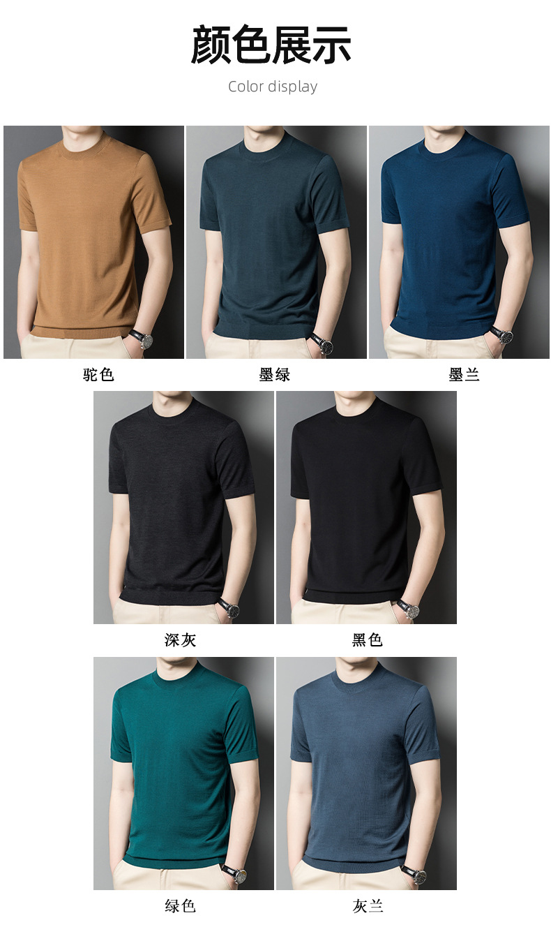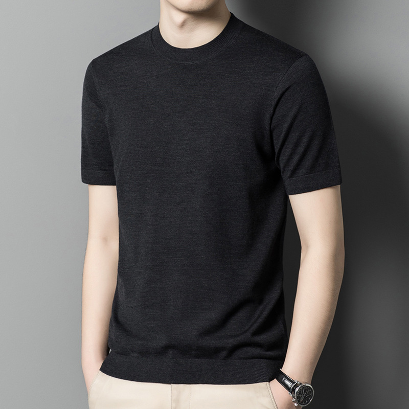 기계 빨 수있는 Merino Worsted 양모 남성용 반팔 스웨터 중년 및 젊은 단색 근접 반소매 스웨터 도매스토어 가기