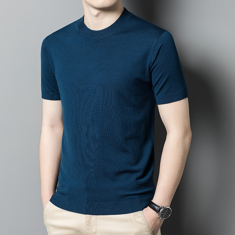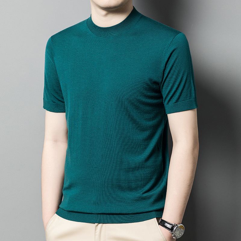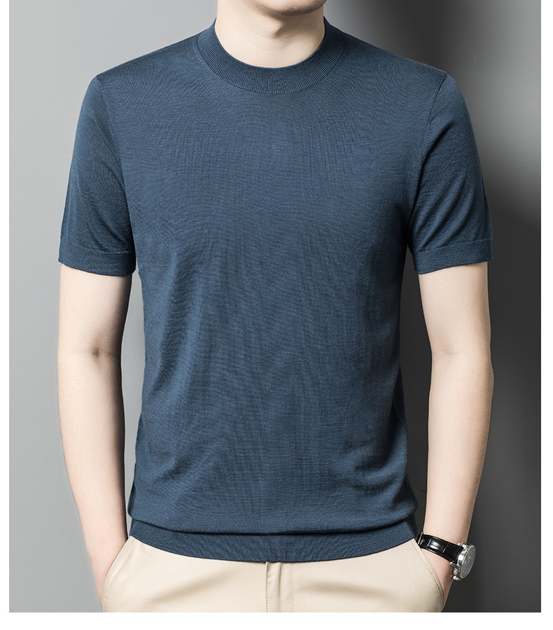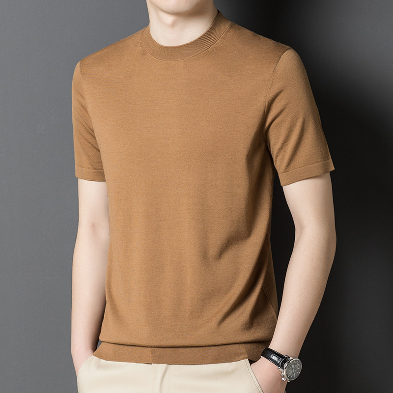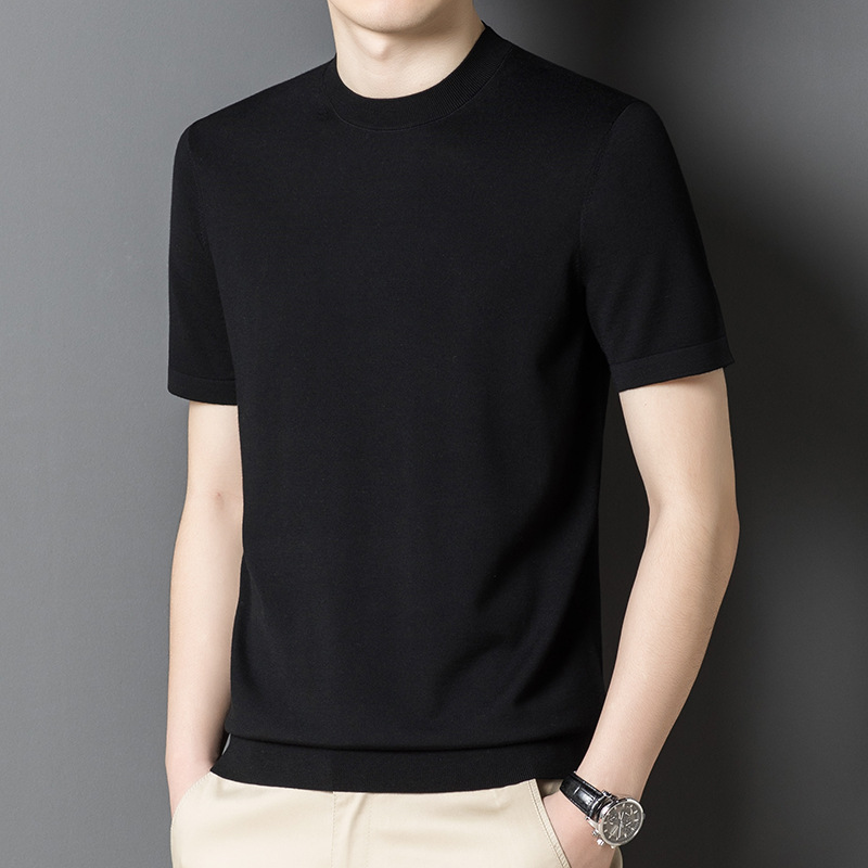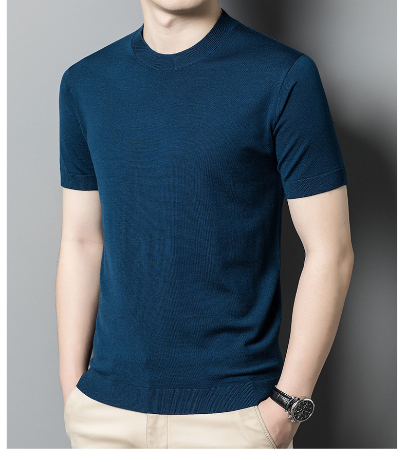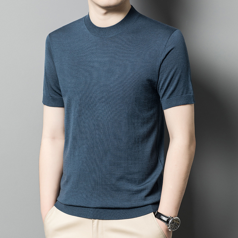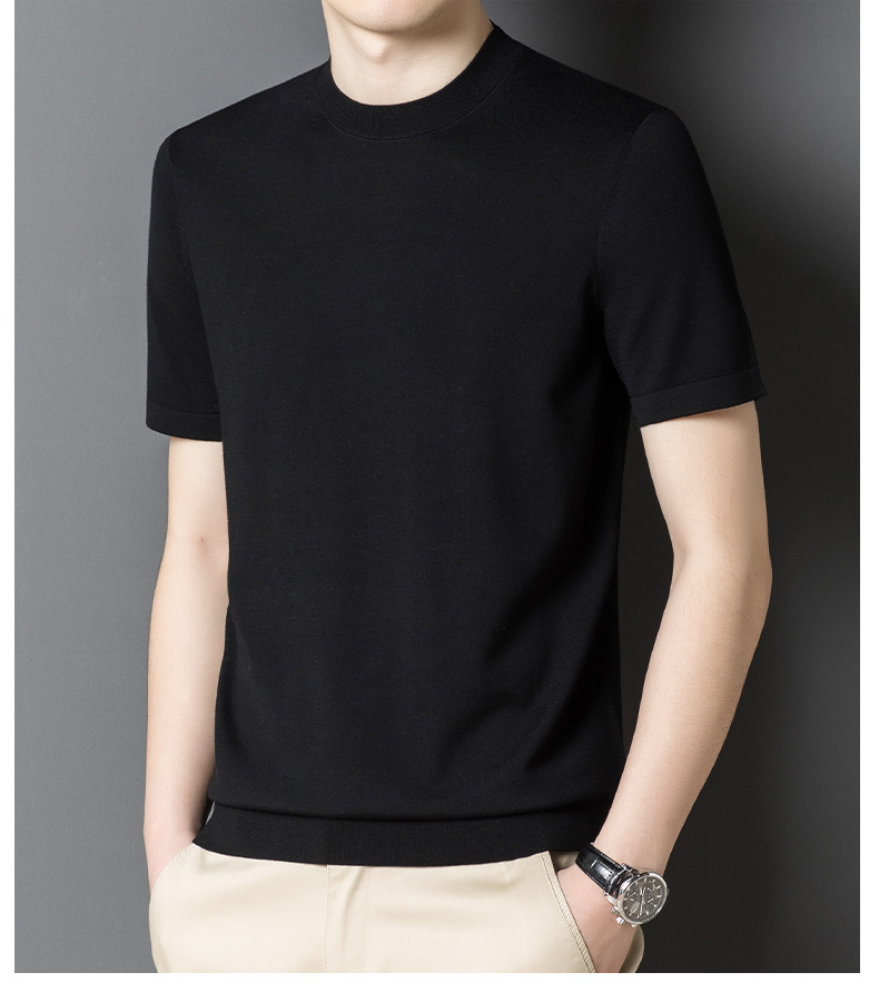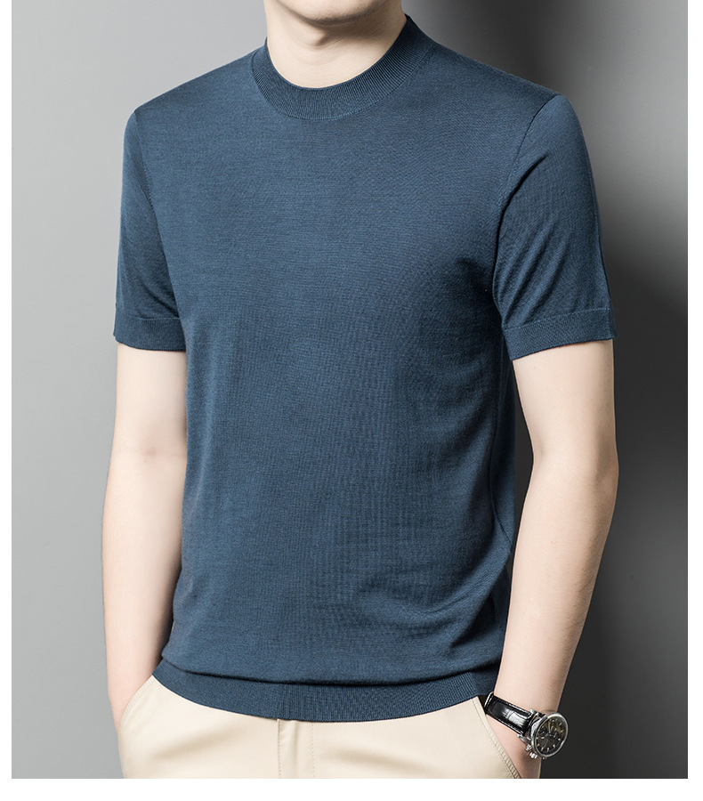 기계 빨 수있는 Merino Worsted 양모 남성용 반팔 스웨터 중년 및 젊은 단색 근접 반소매 스웨터 도매스토어 가기