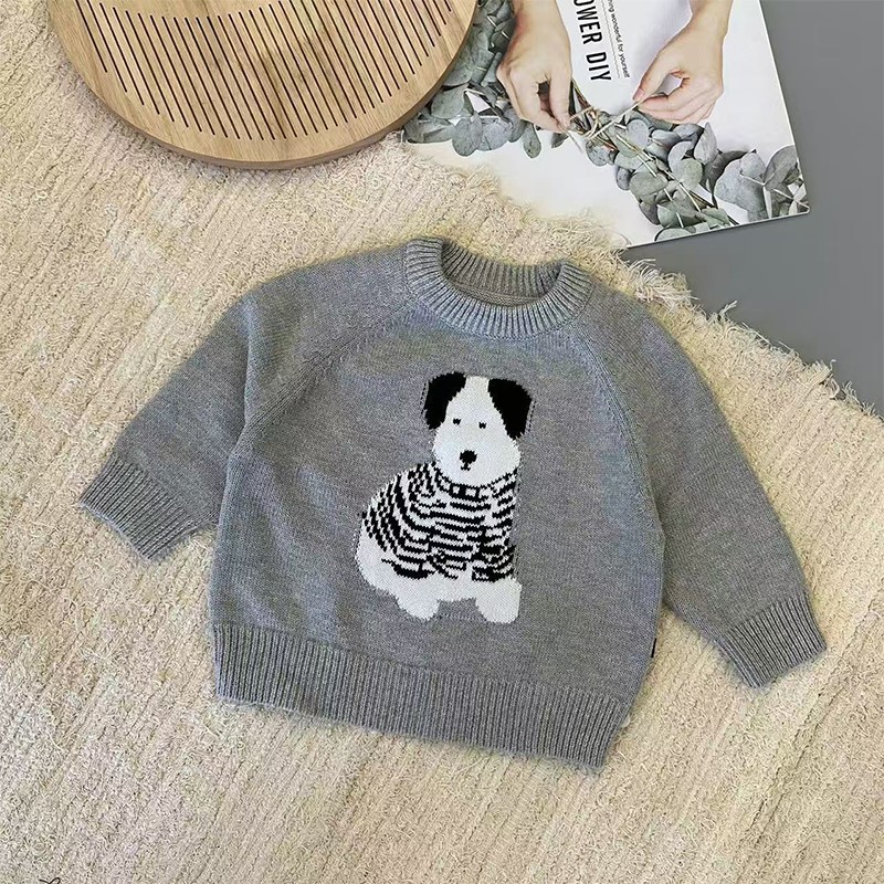 아기 만화 강아지 니트웨어 남성과 여성의 어린이 캐주얼 라운드 넥 양모 풀오버 베이스 셔츠 탑 옷 패션스토어 가기
