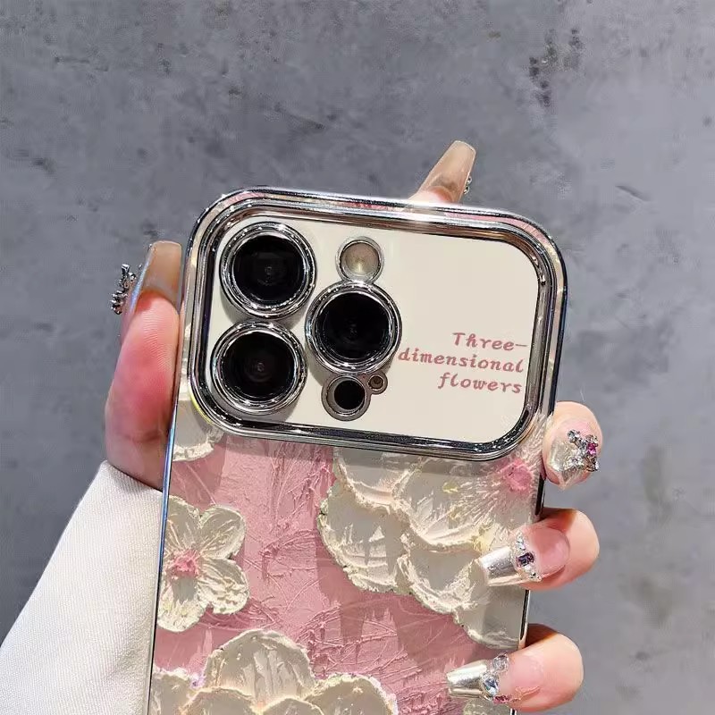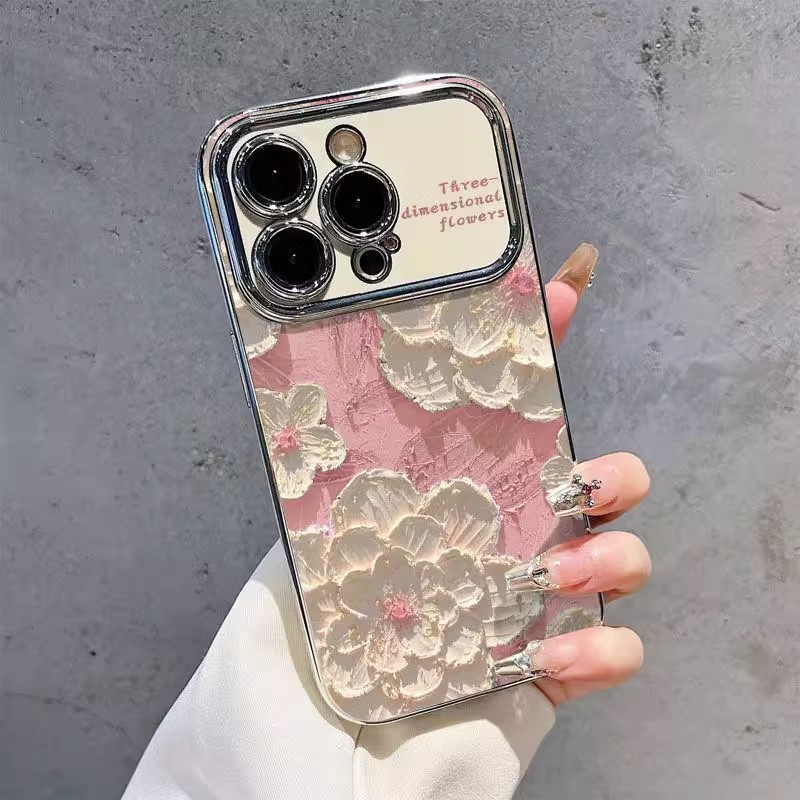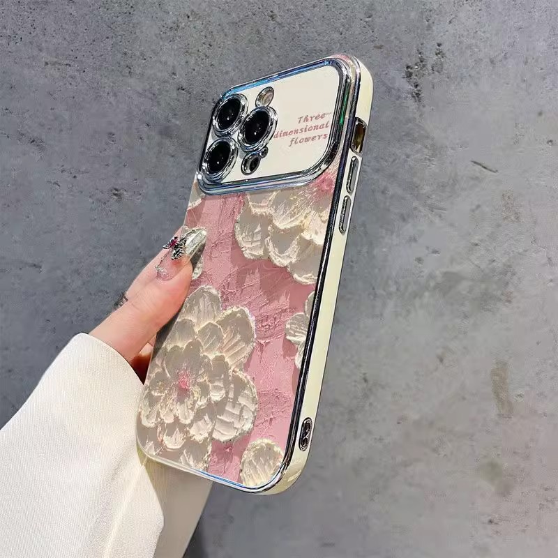 핑크 유화 꽃 애플 iphone16 전화 케이스 화웨이 메이트 70 개성 모든 것을 포함하는 낙하 방지 보호 케이스에 적합