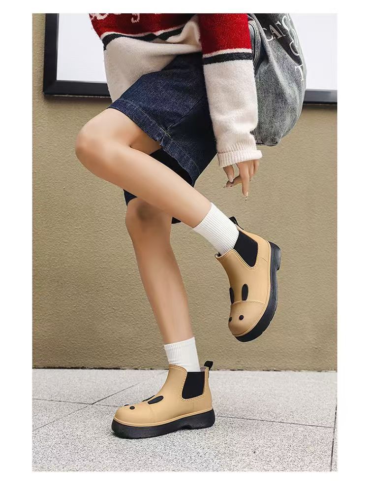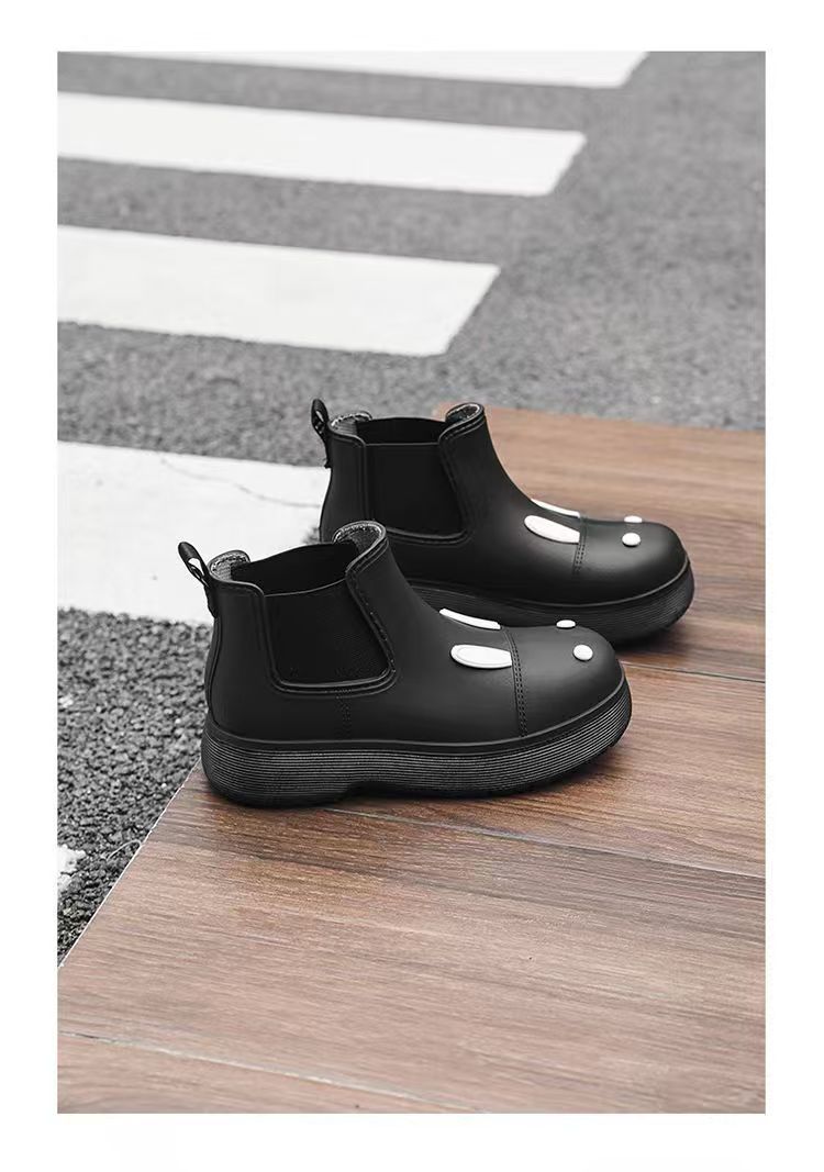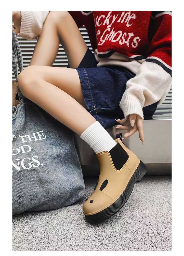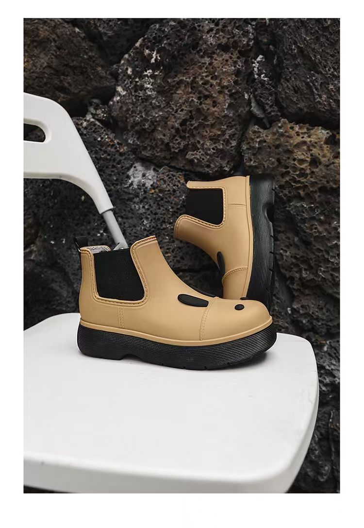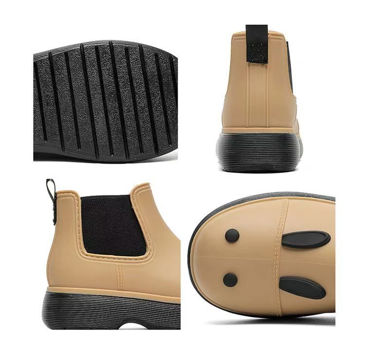 비오는 날 여성을위한 비-미끄럼 방지 두꺼운 밑창 낮은 배럴 워터 슈즈 여성을위한 국경 간 첼시 패션 장화