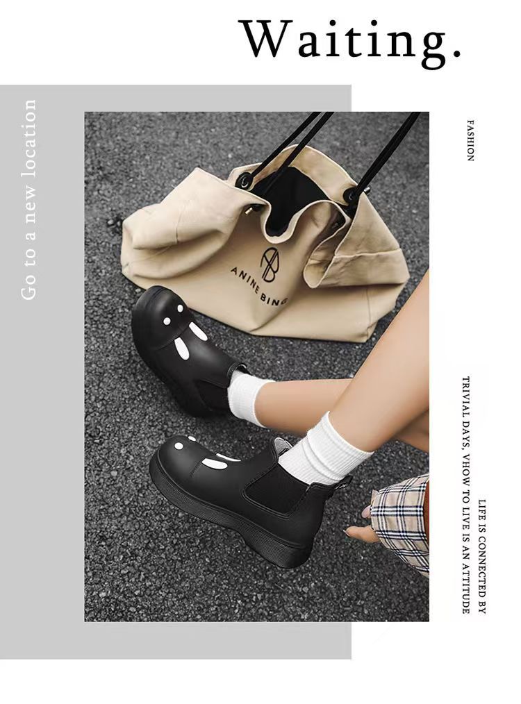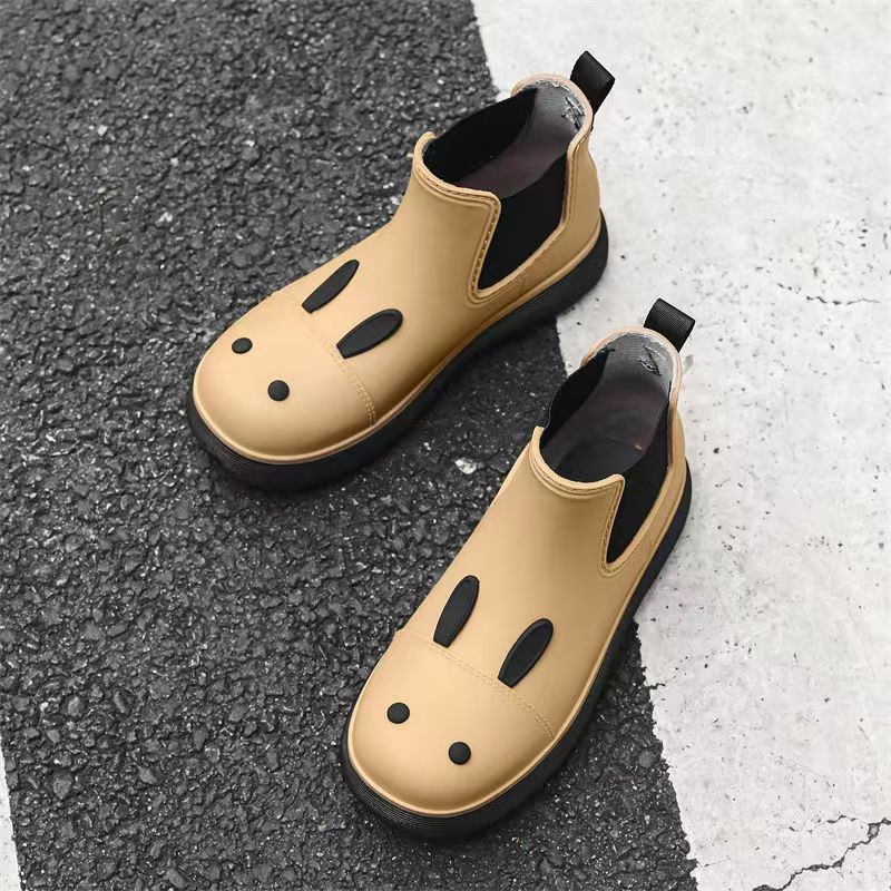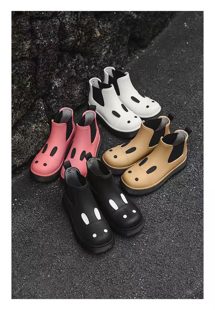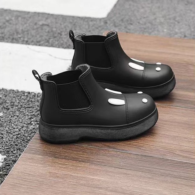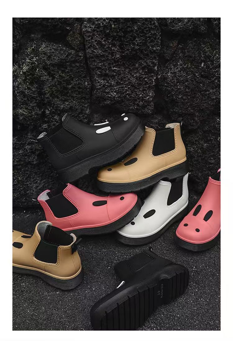 비오는 날 여성을위한 비-미끄럼 방지 두꺼운 밑창 낮은 배럴 워터 슈즈 여성을위한 국경 간 첼시 패션 장화