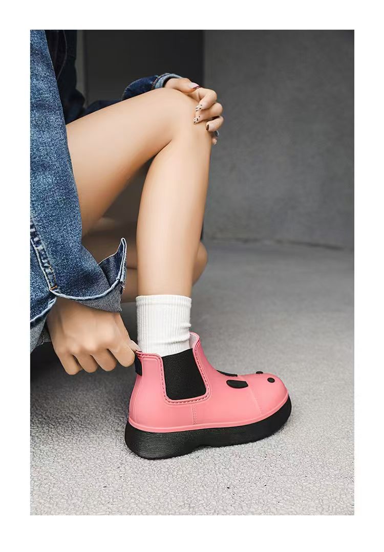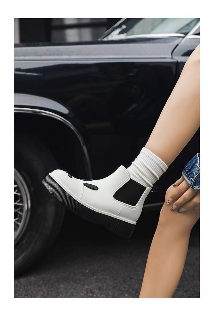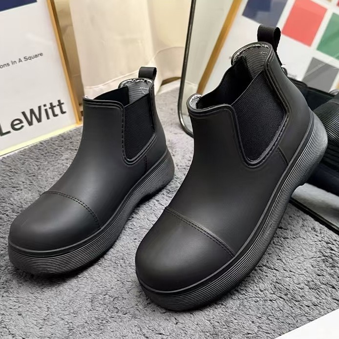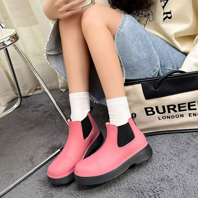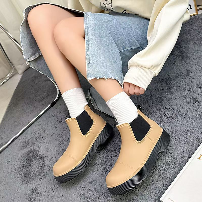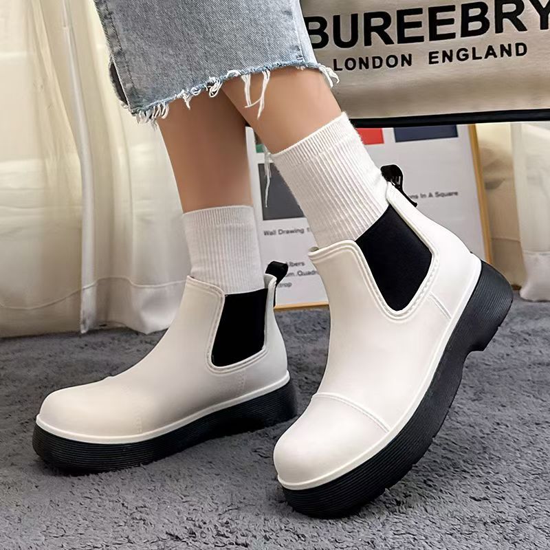 비오는 날 여성을위한 비-미끄럼 방지 두꺼운 밑창 낮은 배럴 워터 슈즈 여성을위한 국경 간 첼시 패션 장화스토어 가기