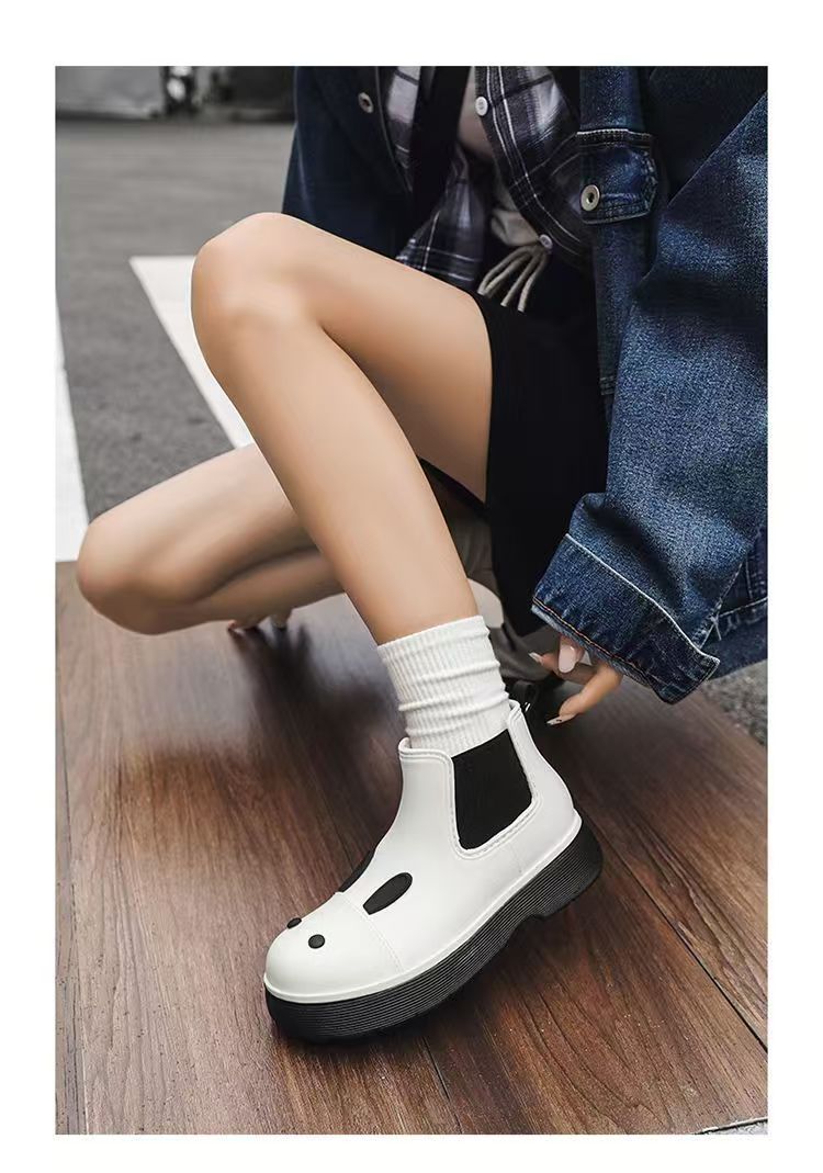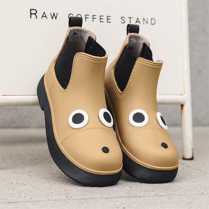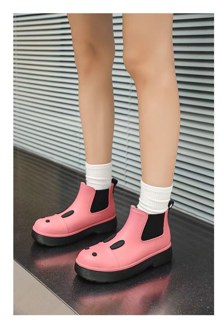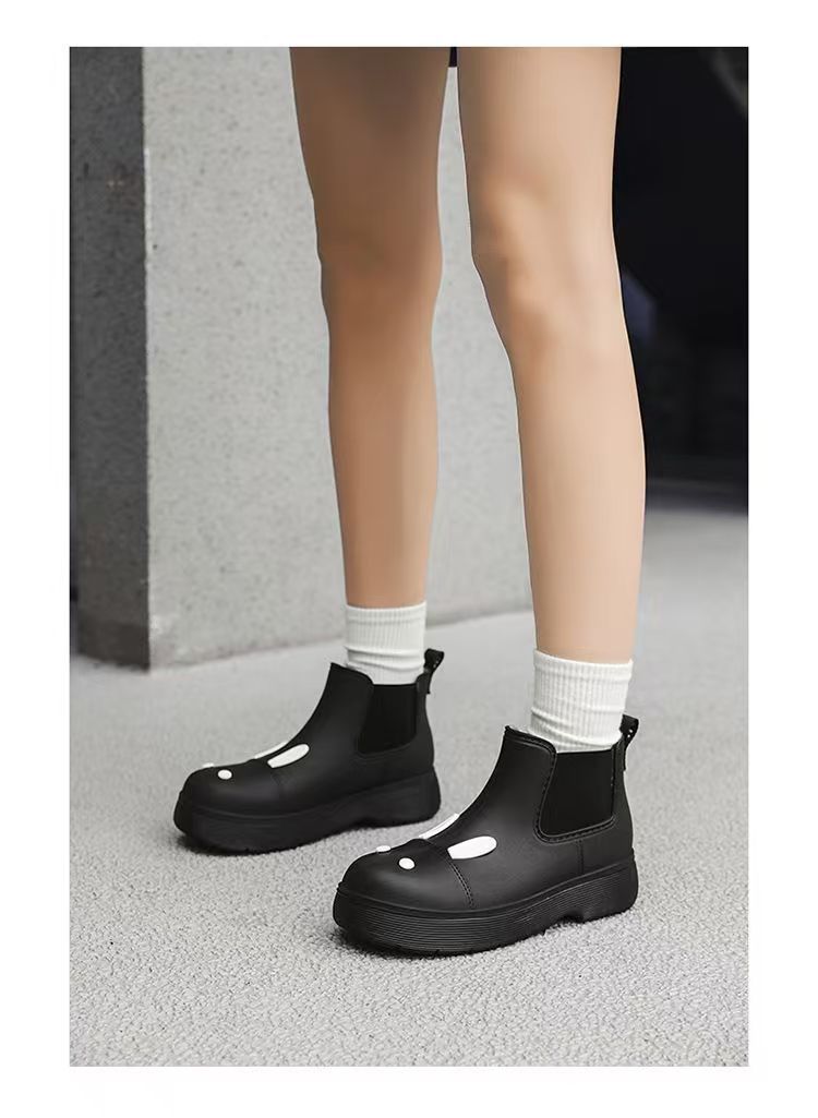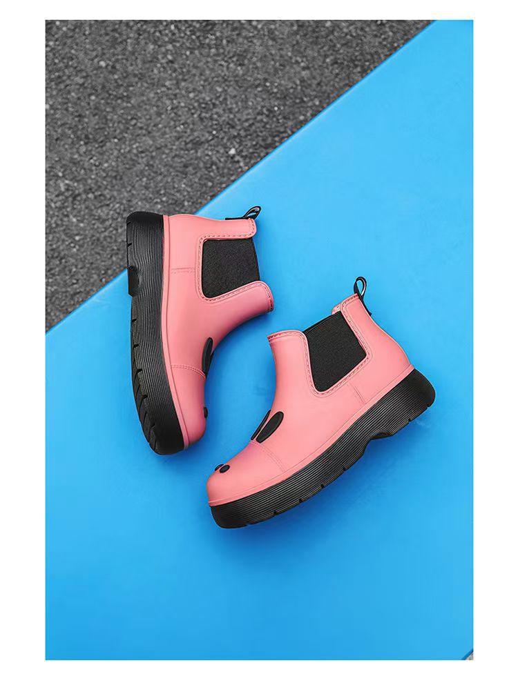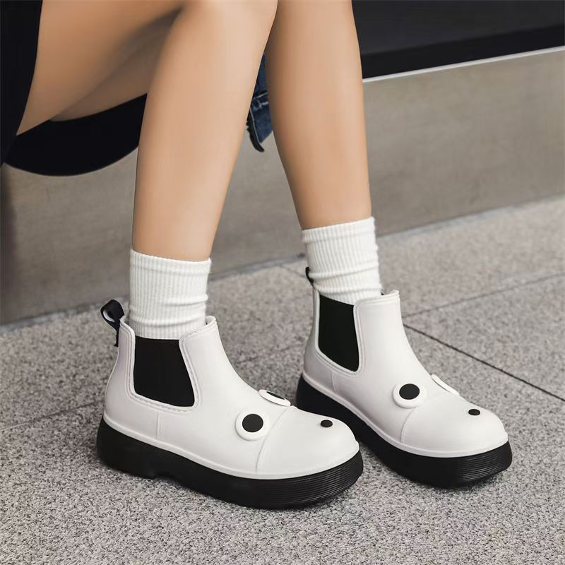 비오는 날 여성을위한 비-미끄럼 방지 두꺼운 밑창 낮은 배럴 워터 슈즈 여성을위한 국경 간 첼시 패션 장화스토어 가기