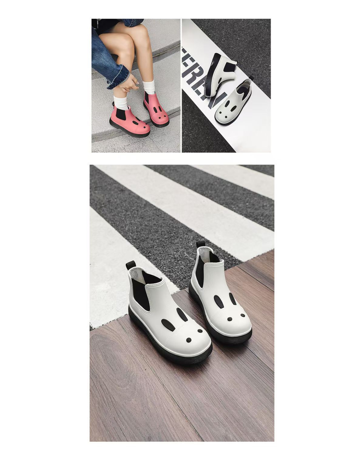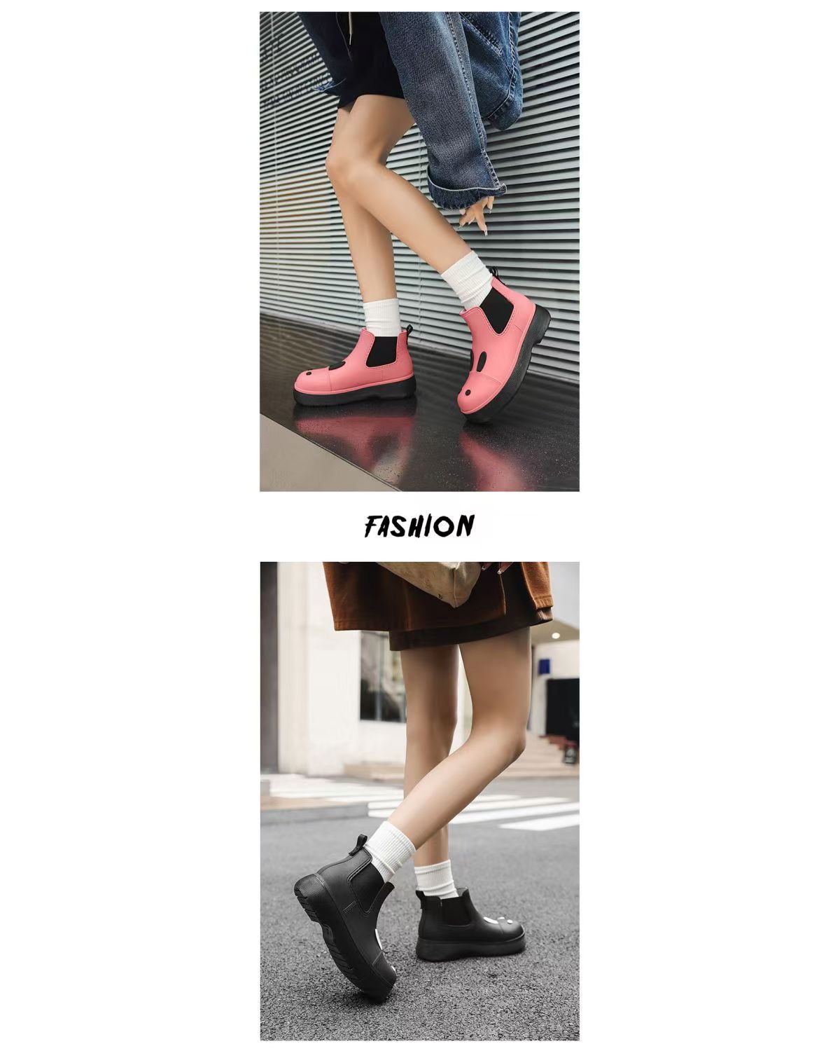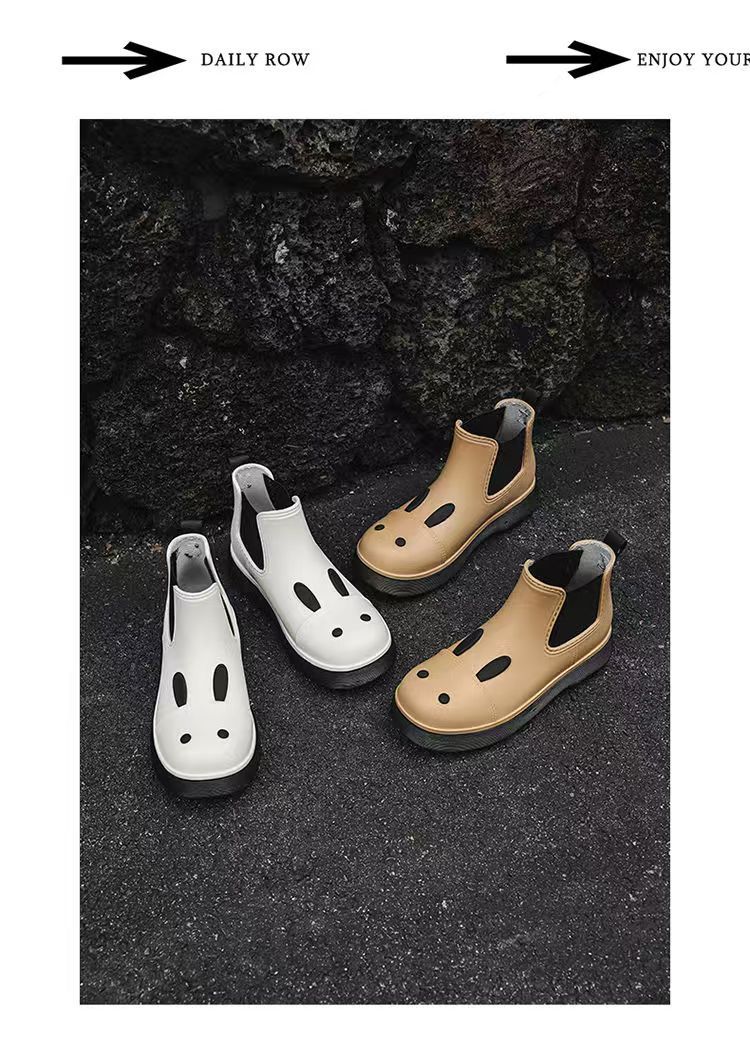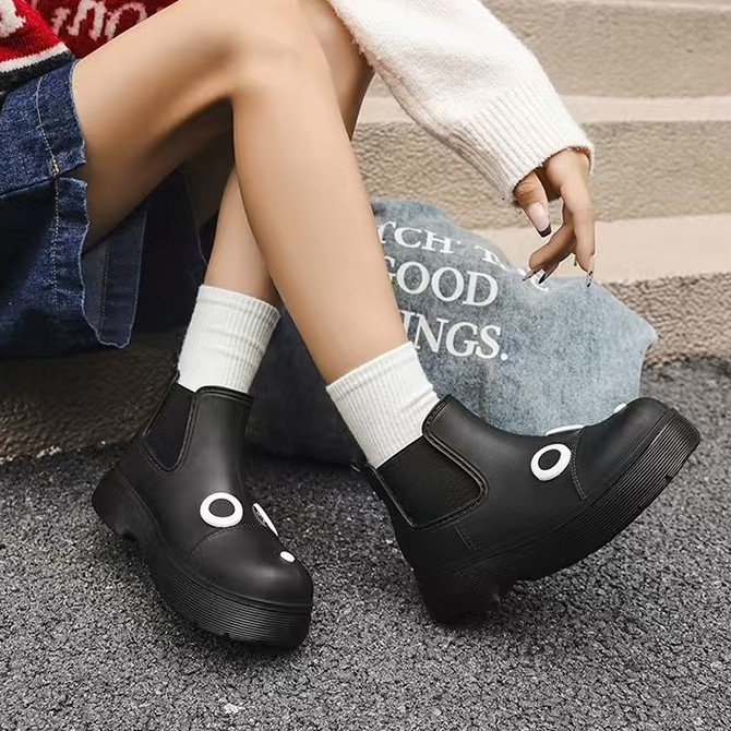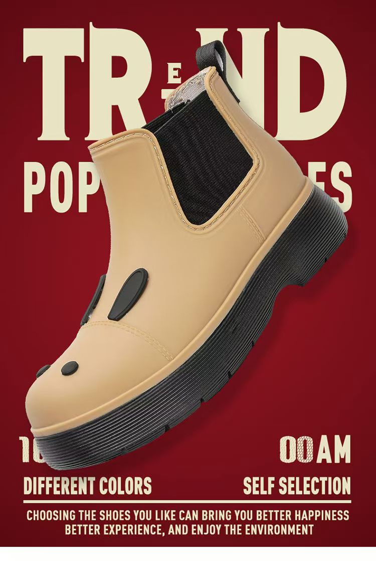 비오는 날 여성을위한 비-미끄럼 방지 두꺼운 밑창 낮은 배럴 워터 슈즈 여성을위한 국경 간 첼시 패션 장화스토어 가기