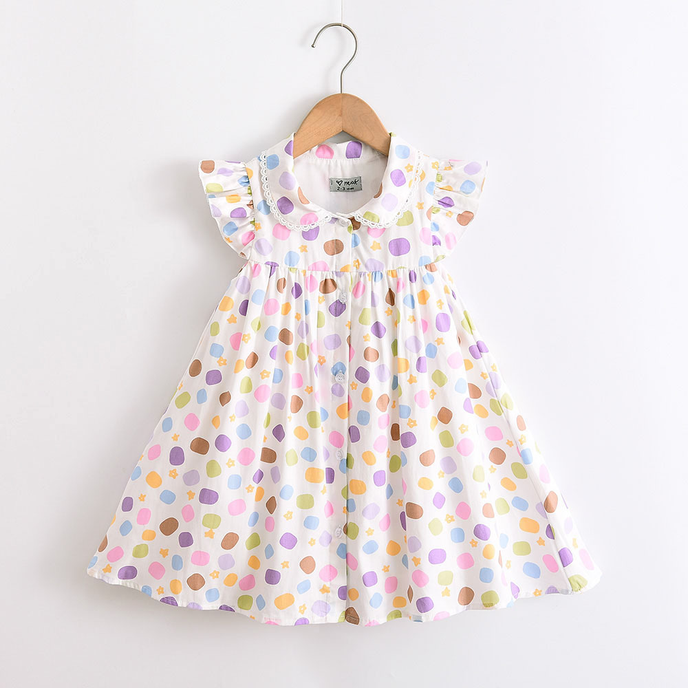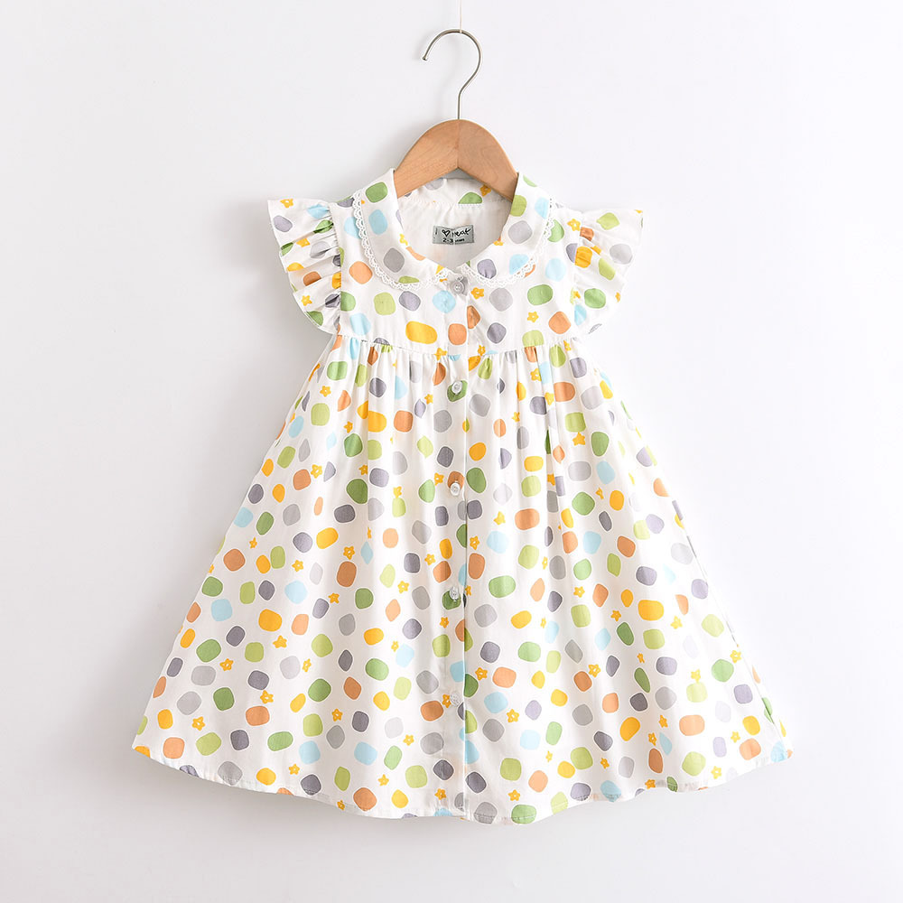 1216-01 2025 여름 새 광장 인쇄 소녀 레이스 옷깃 비행 슬리브 조끼 원피스