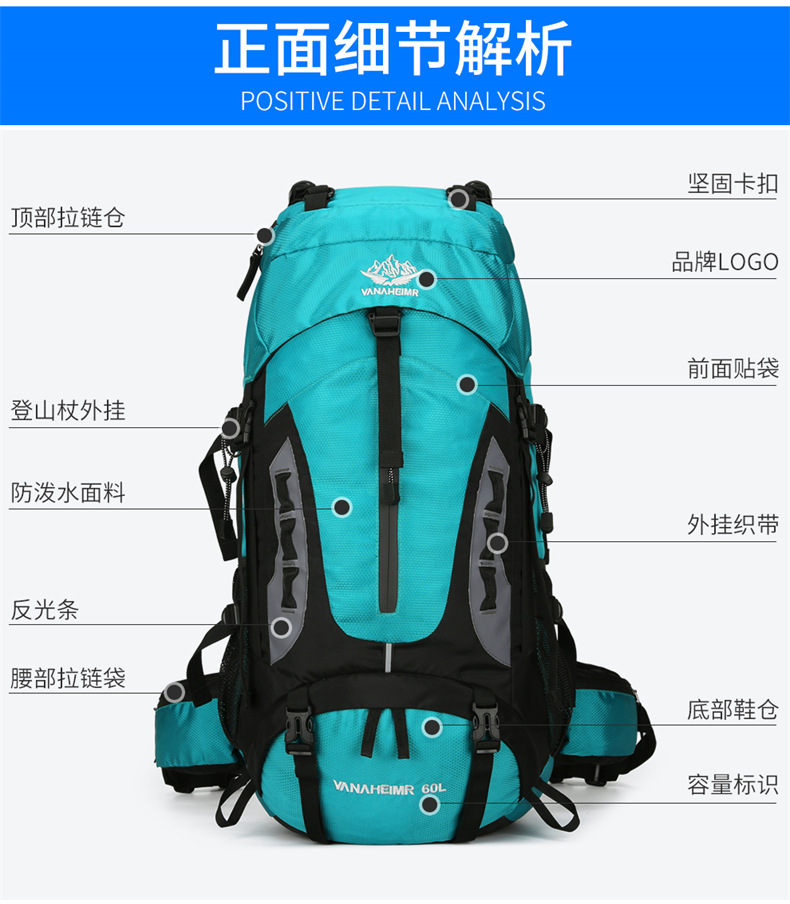 새로운 야외 여행 가방 대용량 경량 등산 가방 남성과 여성의 단거리 조명 배낭