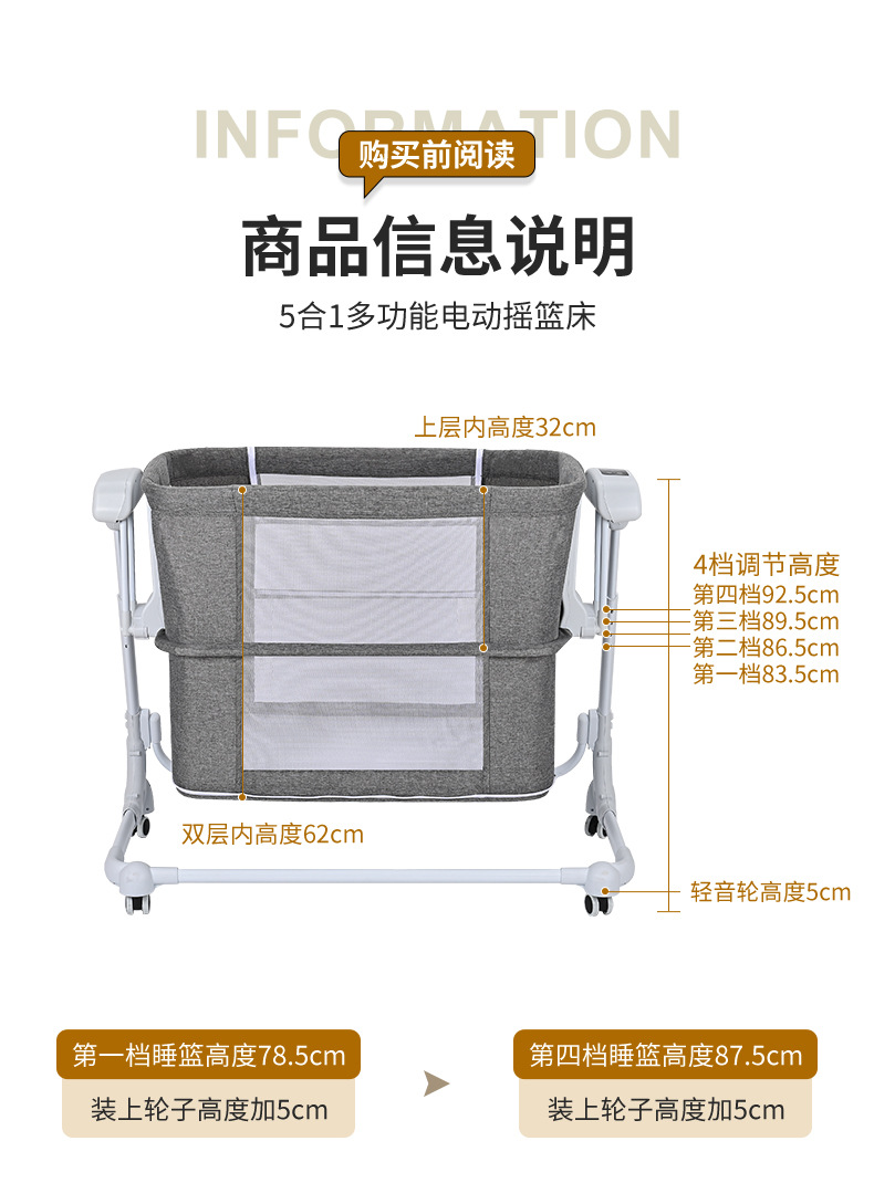 신생아 지능형 침대 옆 셰이커 다기능 전기 침대 전기 동축 전기 동축 절전 침대 coax 아기 유물 도매스토어 가기