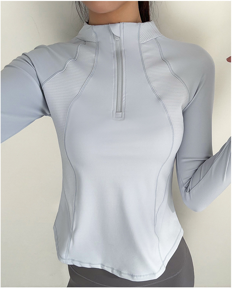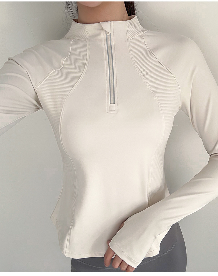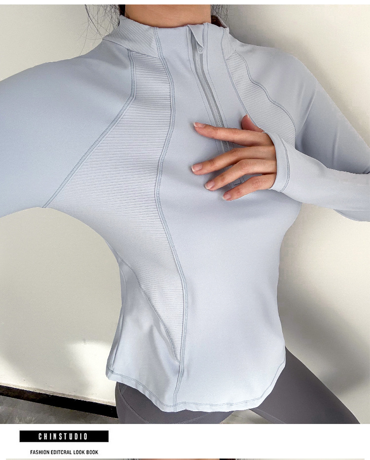 수직 칼라 지퍼 요가 옷 코트 여성용 카디건 승마 옷 빠른 건조 스포츠 탑 긴팔 가을 겨울 달리기 피트니스 옷