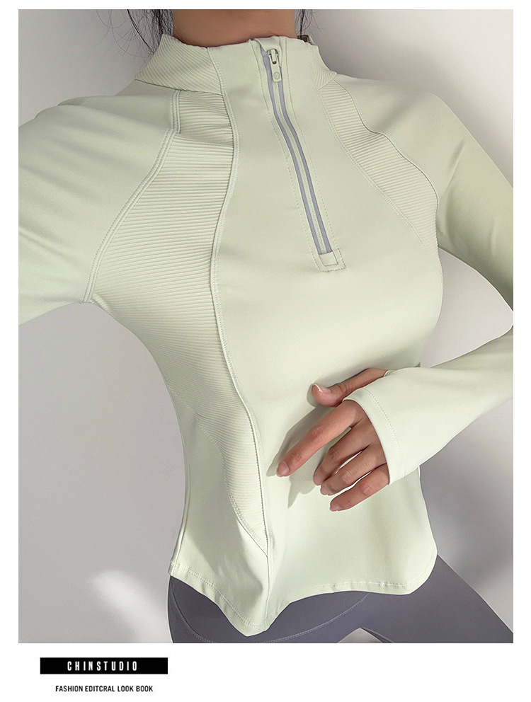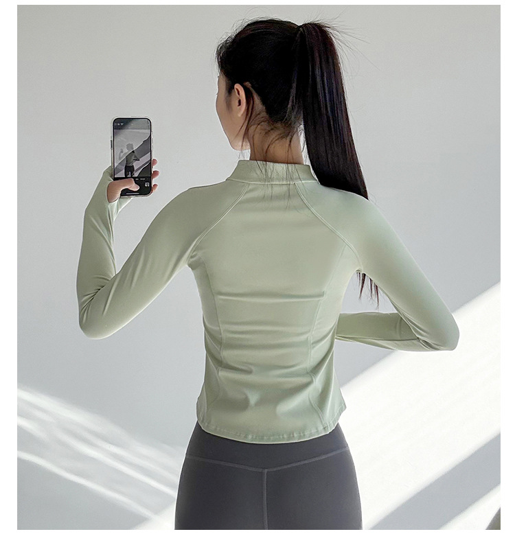 수직 칼라 지퍼 요가 옷 코트 여성용 카디건 승마 옷 빠른 건조 스포츠 탑 긴팔 가을 겨울 달리기 피트니스 옷스토어 가기