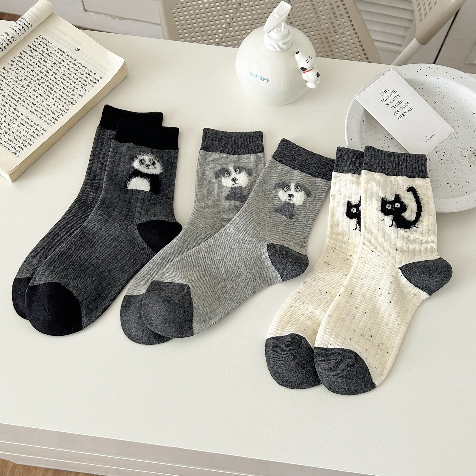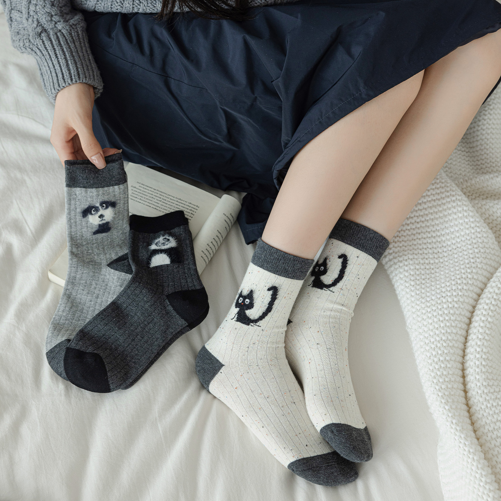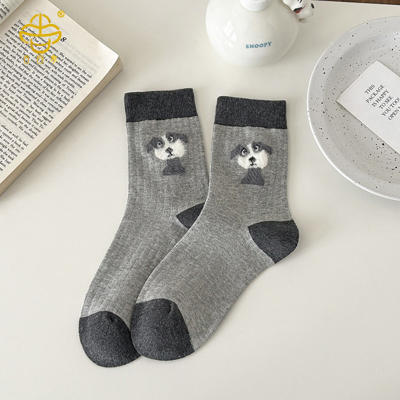 지 네 코끼리 양말 여성의 가을과 겨울 새로운 만화 강아지 동물 중간 튜브 양말 빗질면 봉제 포인트 원사 여성용 양말스토어 가기