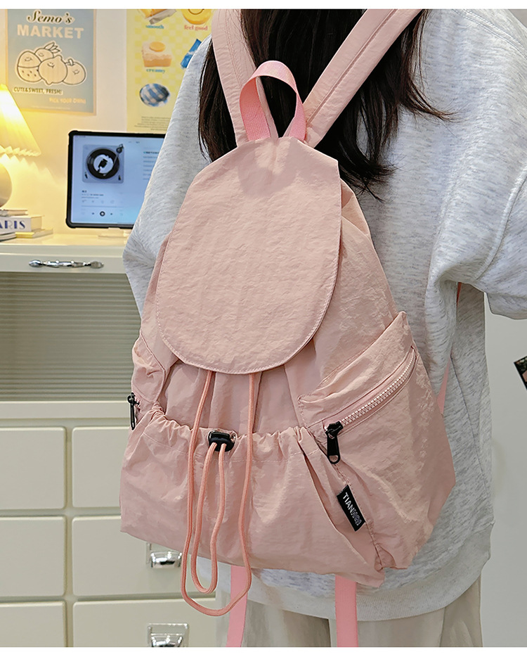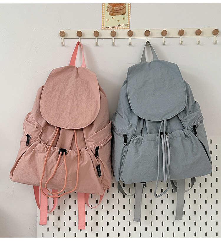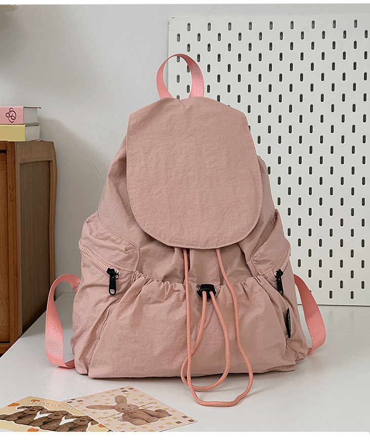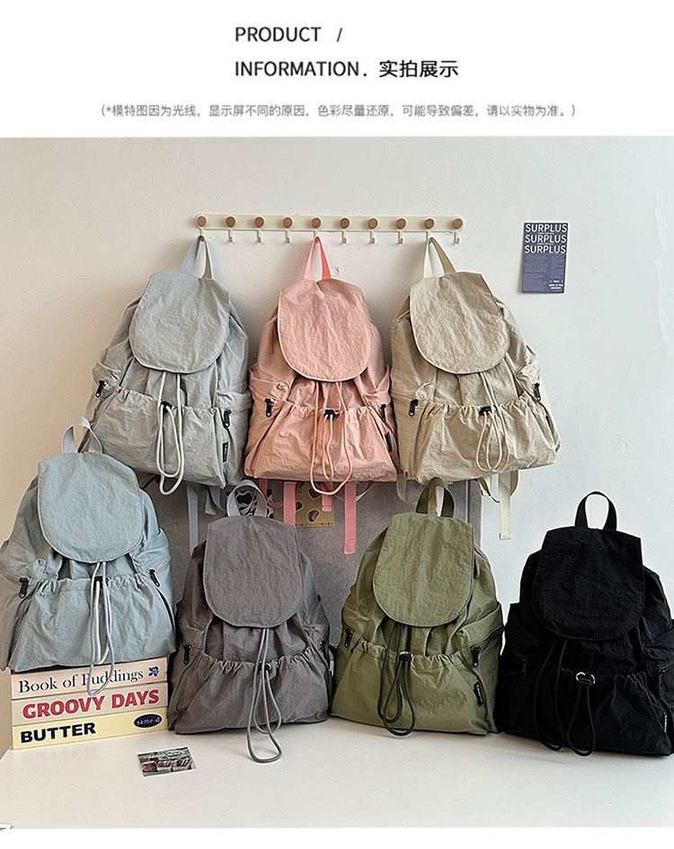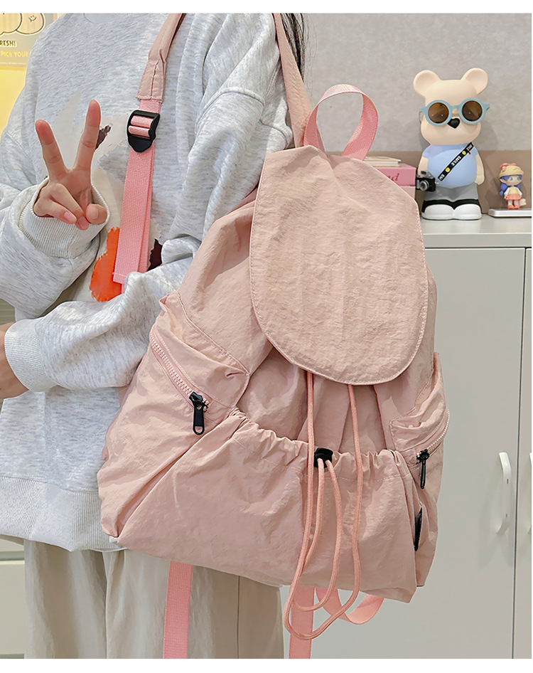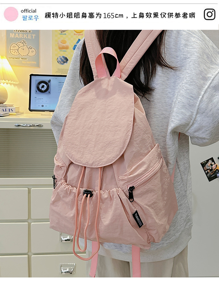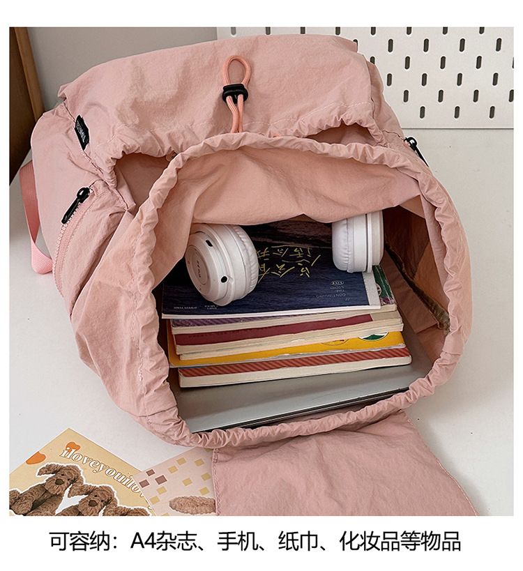 새로운 한국 틈새 경량 나일론 원단 배낭 소녀 캐주얼 패션 드로스트링 여행 대용량 배낭