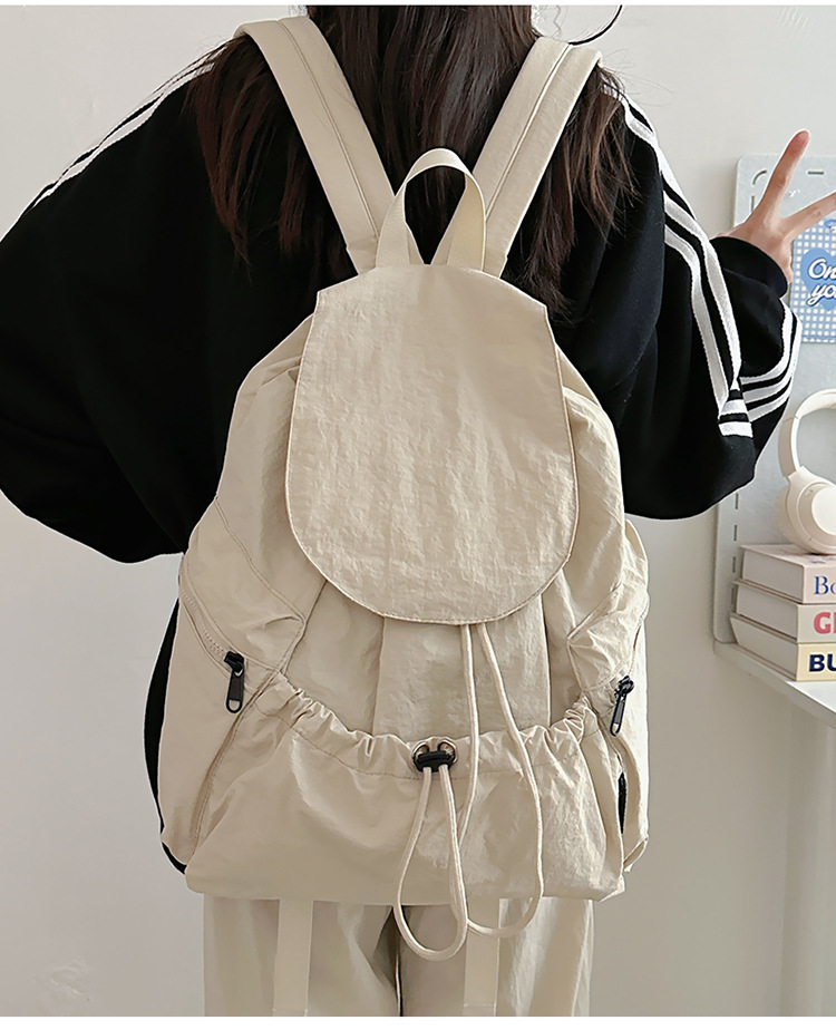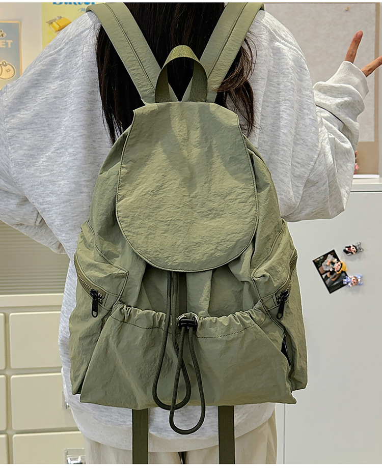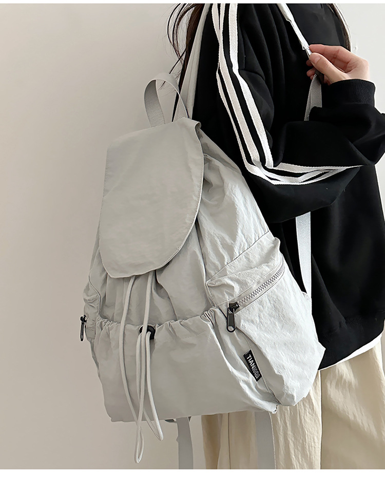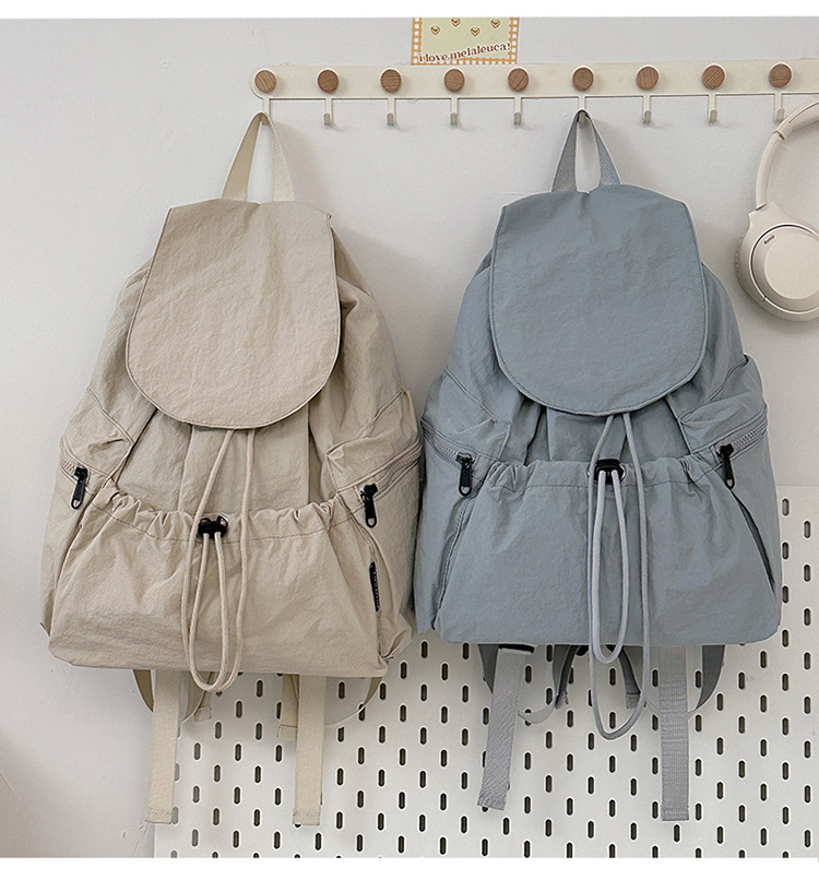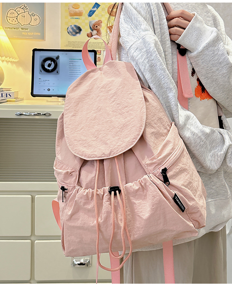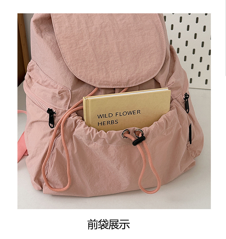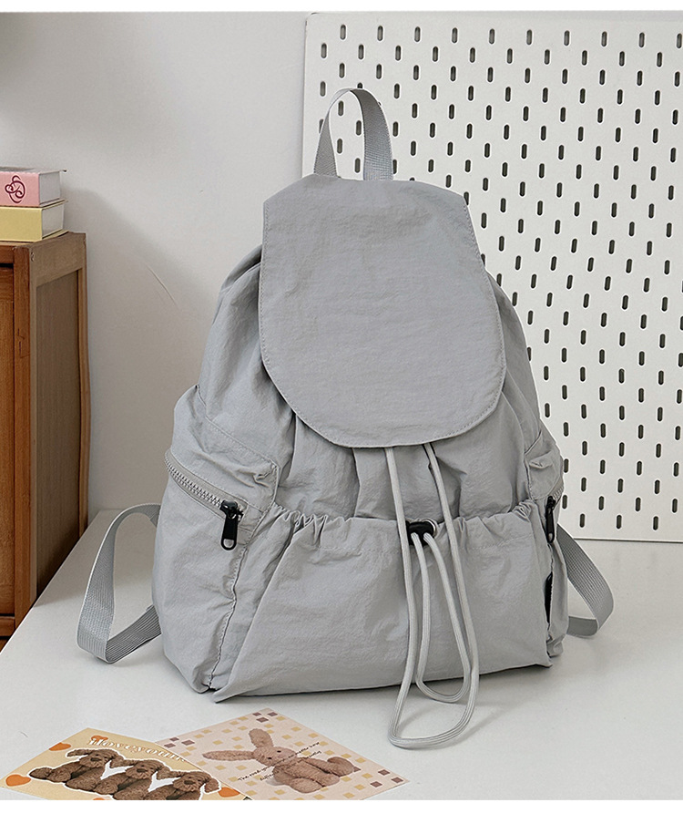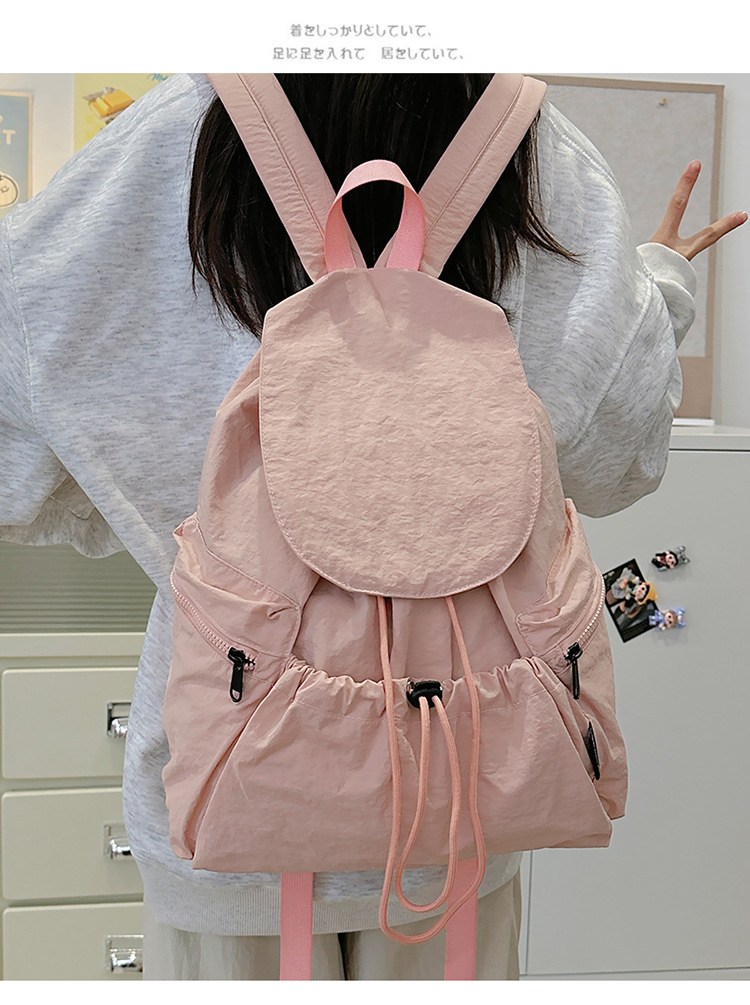 새로운 한국 틈새 경량 나일론 원단 배낭 소녀 캐주얼 패션 드로스트링 여행 대용량 배낭